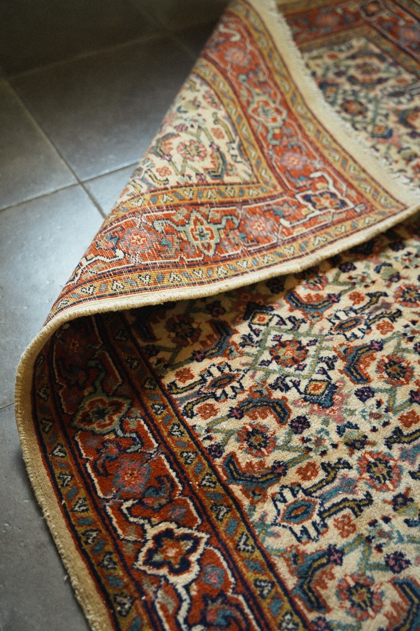 良質なペルシャ絨毯の産地として知られるハマダン州南東部のマラーイェル周辺で織られたラグ。