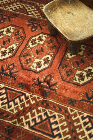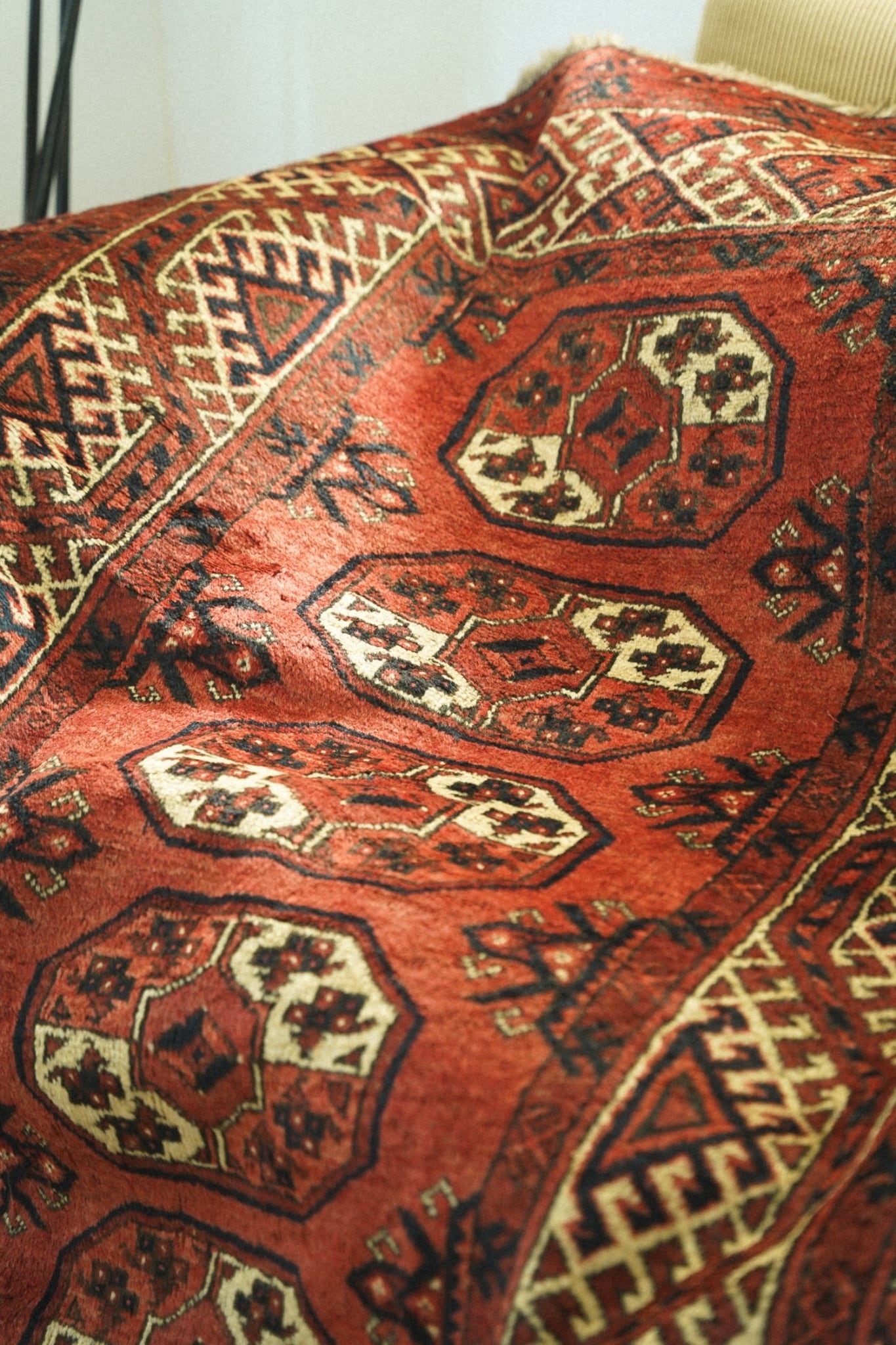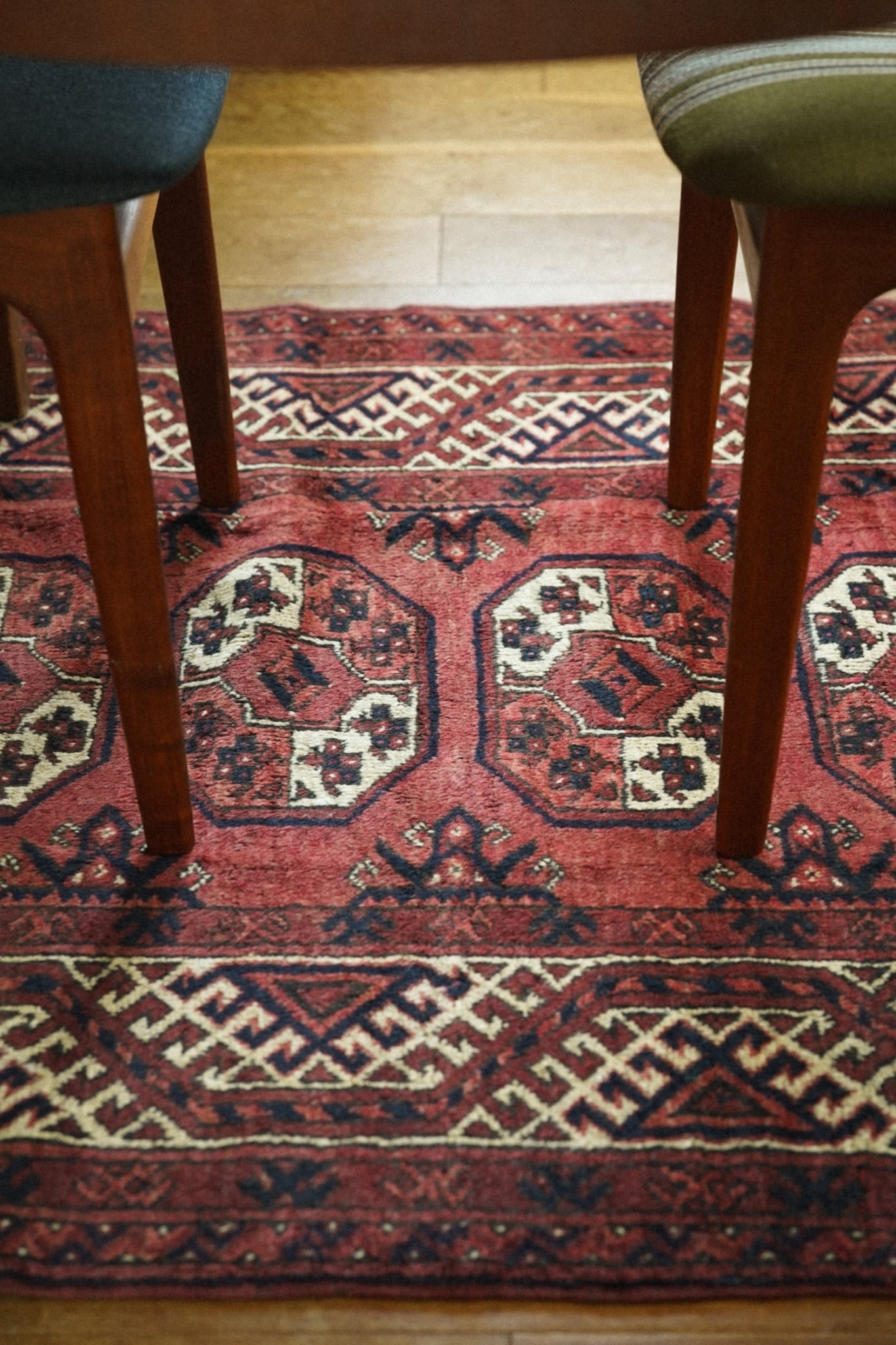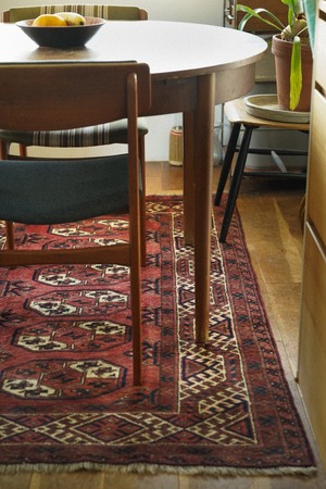 1940年代に織られたアフガニスタン産のトルクメンラグ。経年により熟成された美しい茜色のフィールドに大きなギュルが並ぶデザイン。