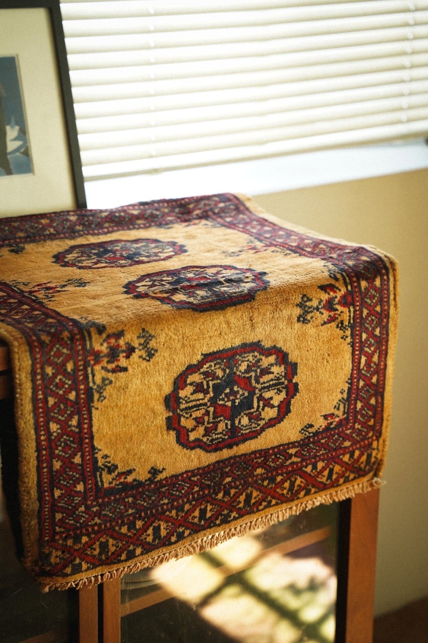 ミニサイズですが、テーブルやチェスト、棚の上に敷いたり小物を飾ったりなどちょっとした空間をおしゃれに演出してくれる一枚です。