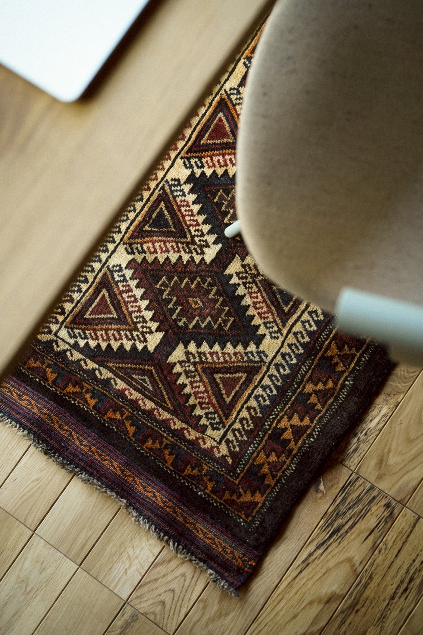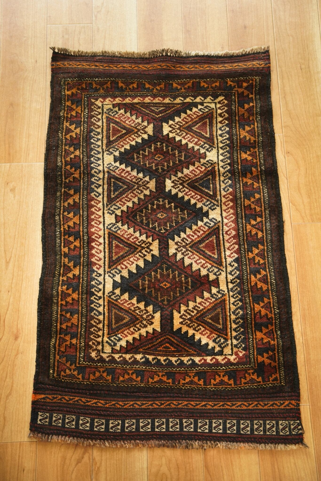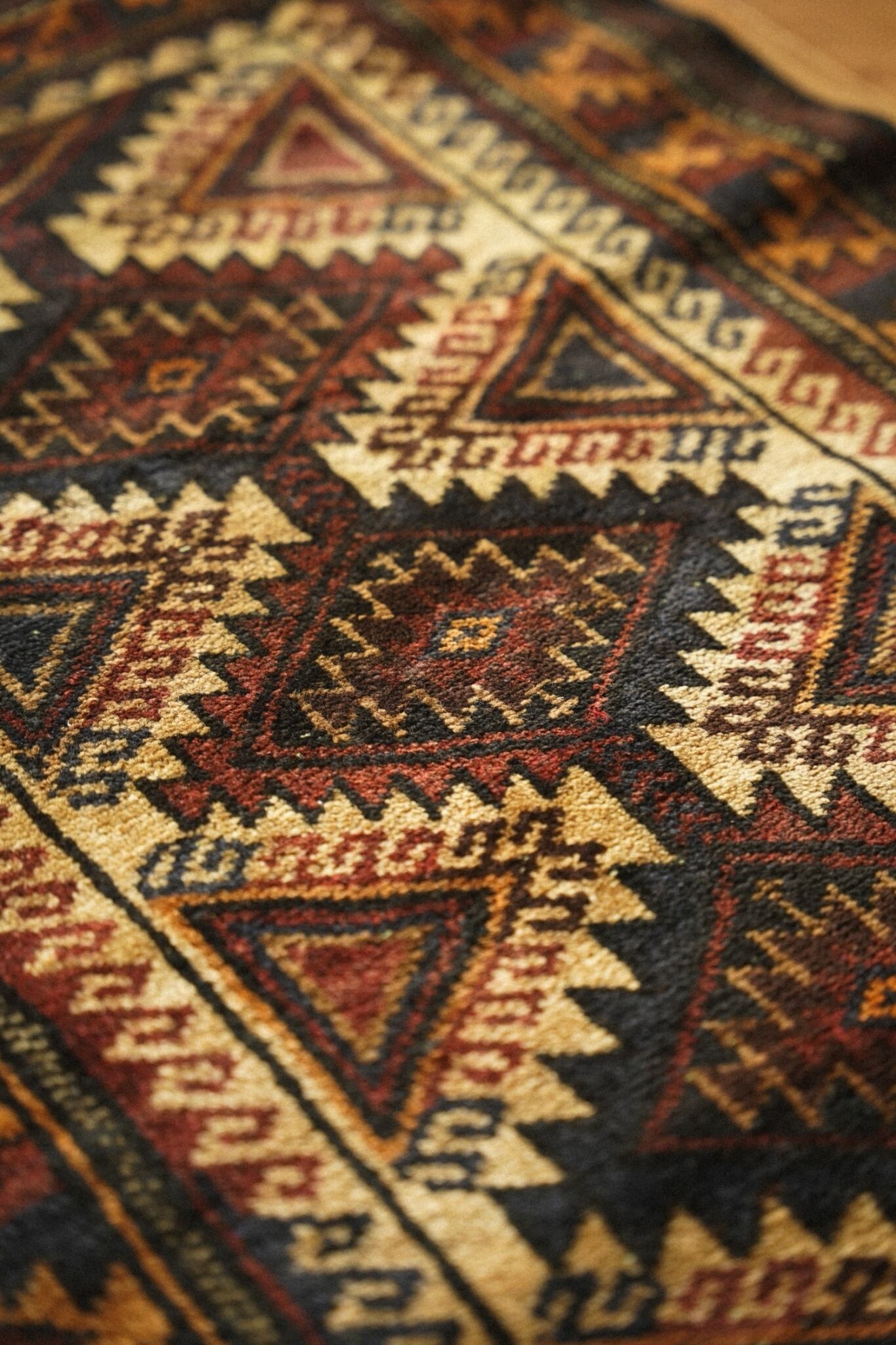 ギザギザとした力強さを感じるデザインと両端のキリムエンドもとても凝った作りになっておりとてもかっこいいです。