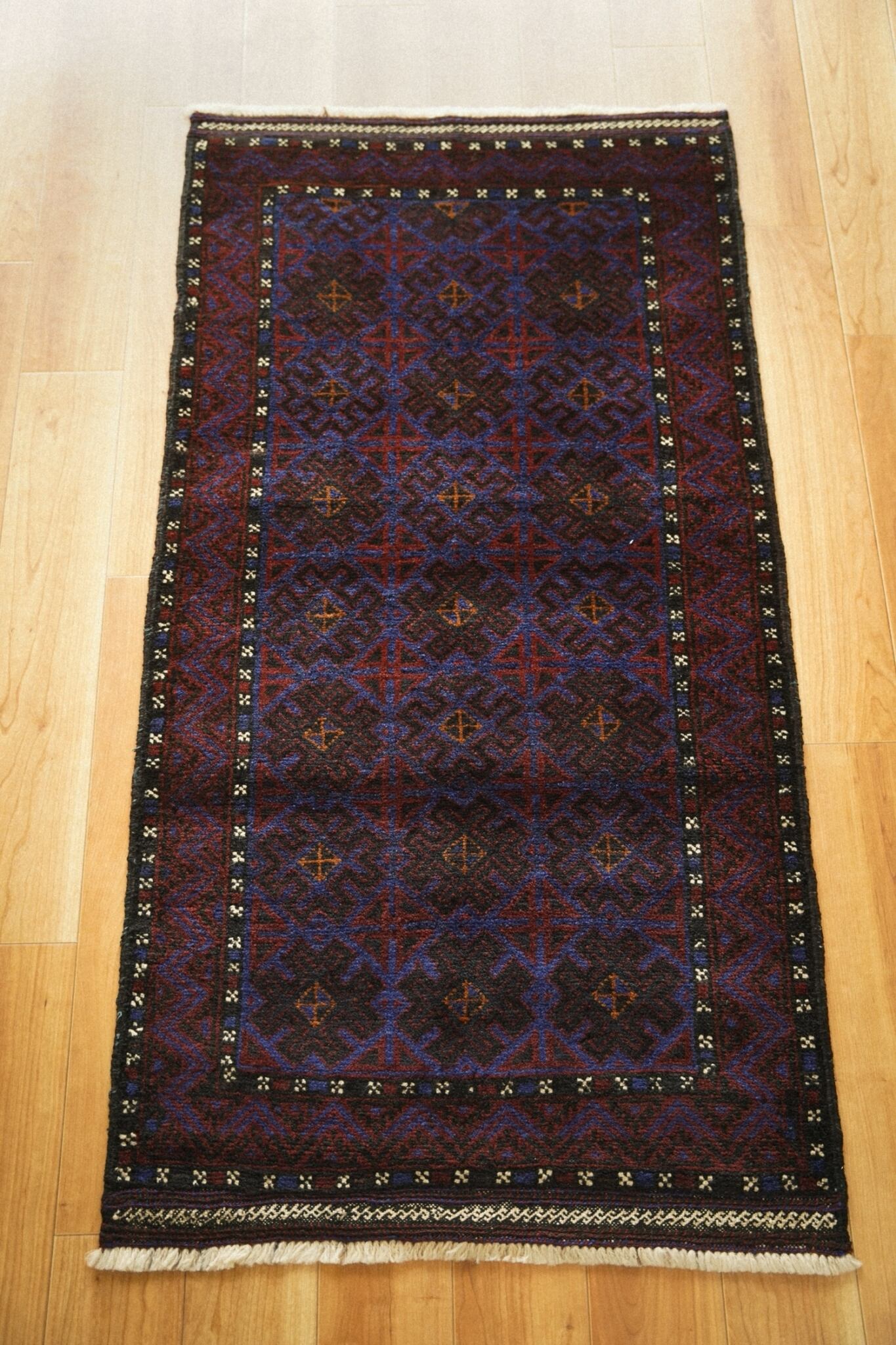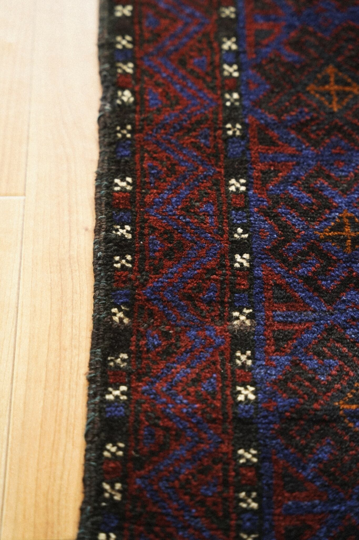 ボーダー部分を囲むように白い小さなモチーフが浮かび上がるのはバルーチ族のデザインの特徴です。