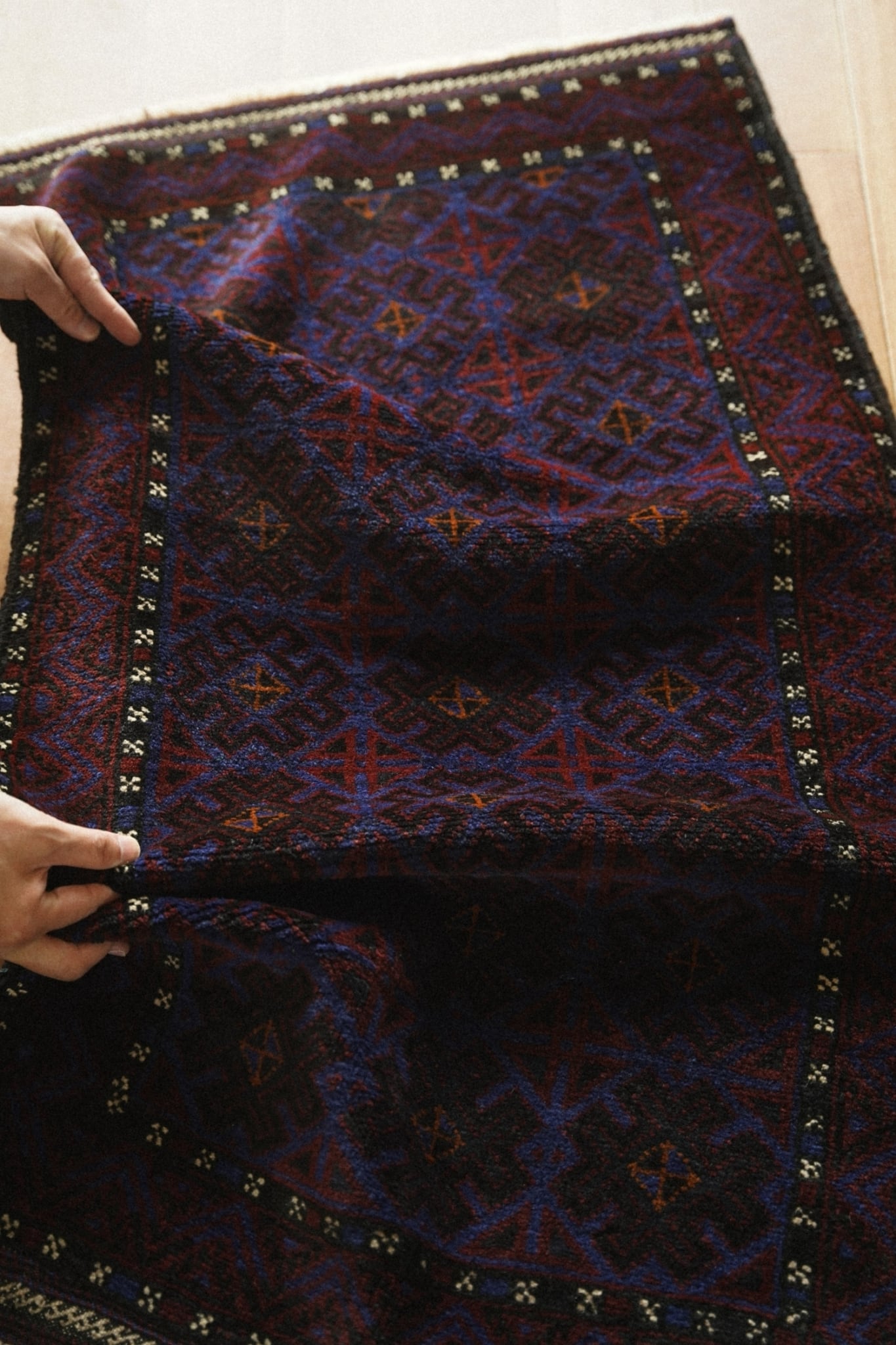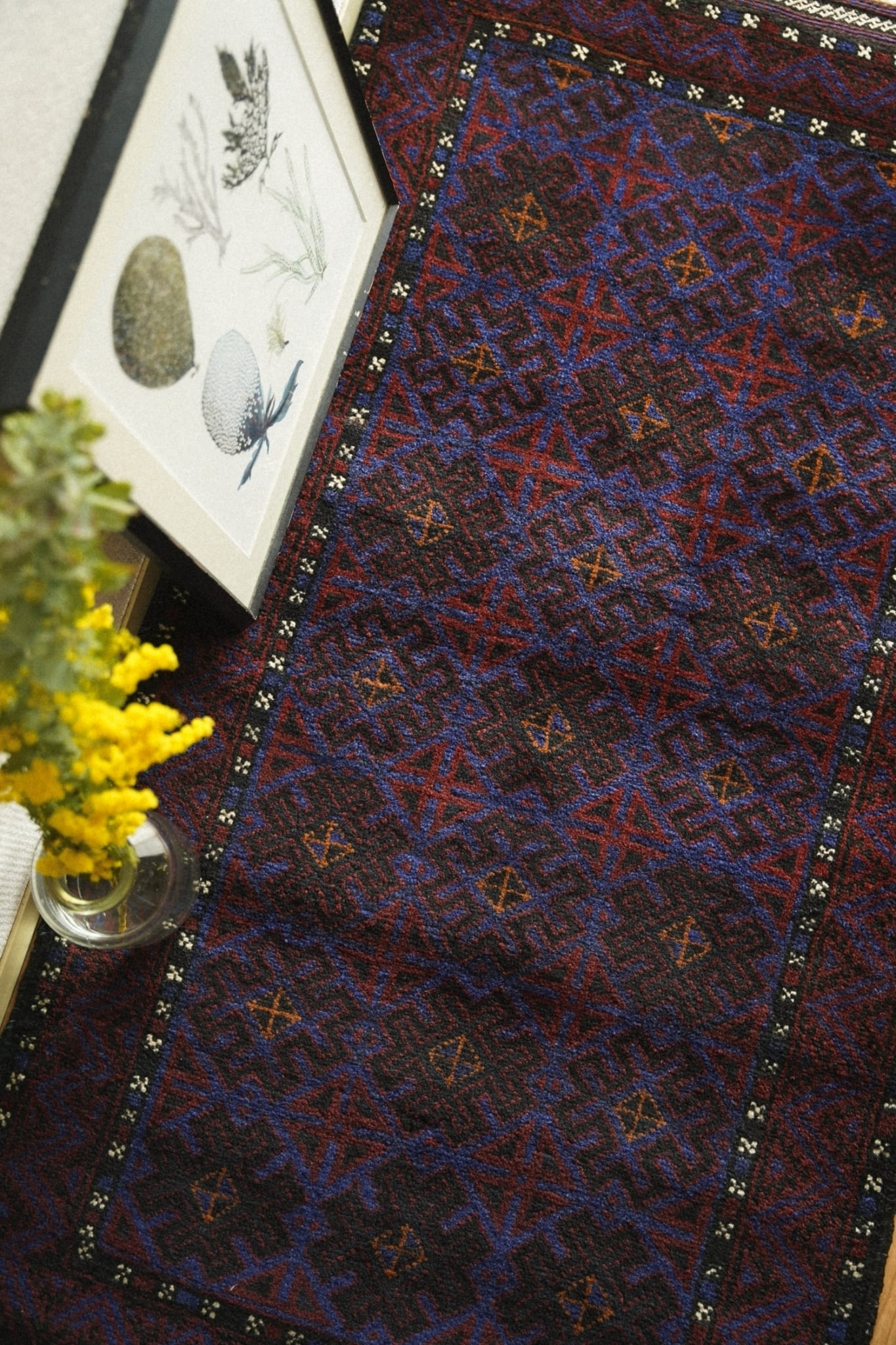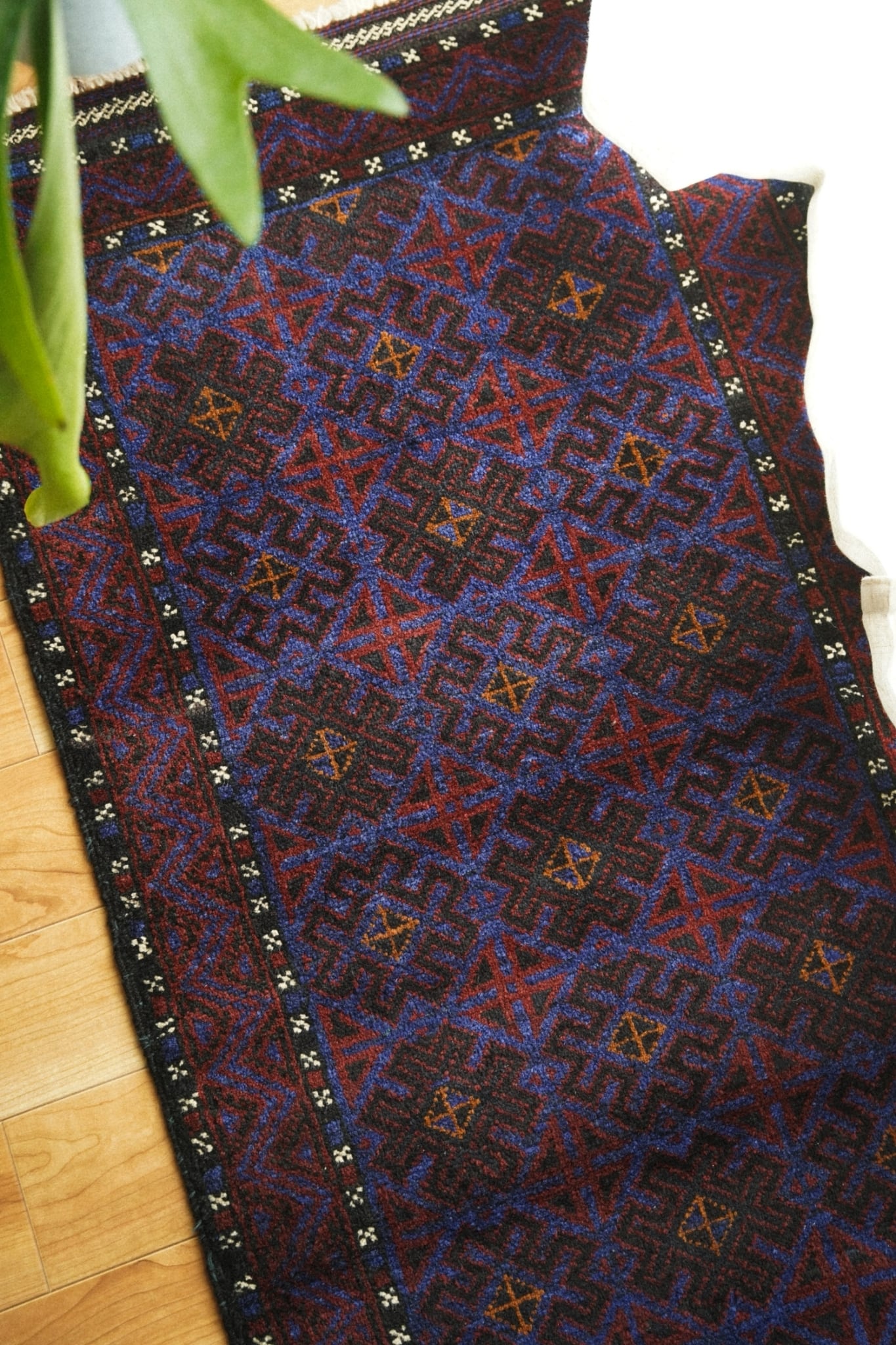 1960年代にバルーチ族によって織られたバーリシトと呼ばれる家財や食材を入れたり、屋内ではクッションとして使用される袋状のものをラグに仕立ててもらいました。
