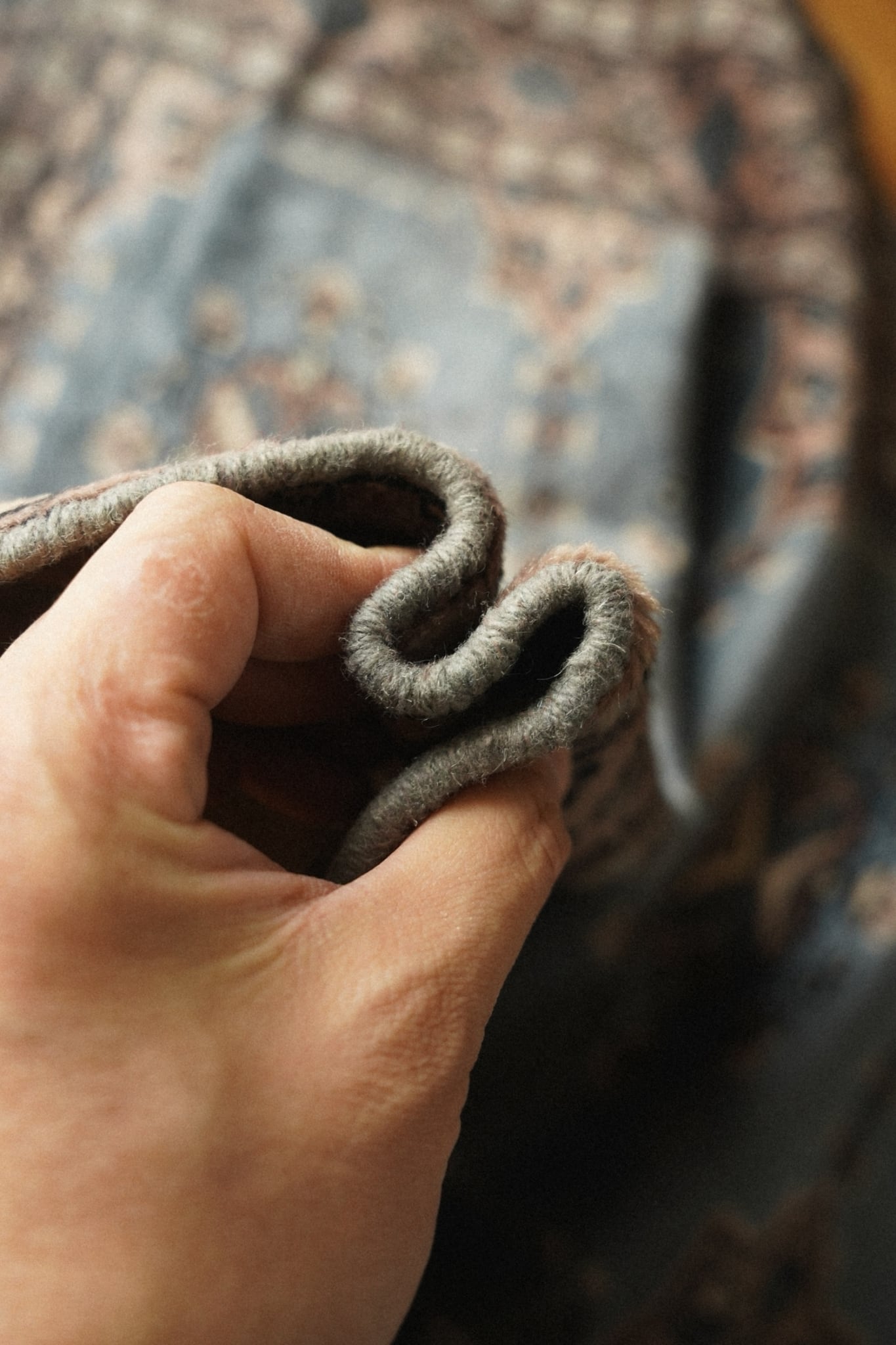 くすみ感のあるスモーキーブルーがおしゃれなパキスタン産のラグ。