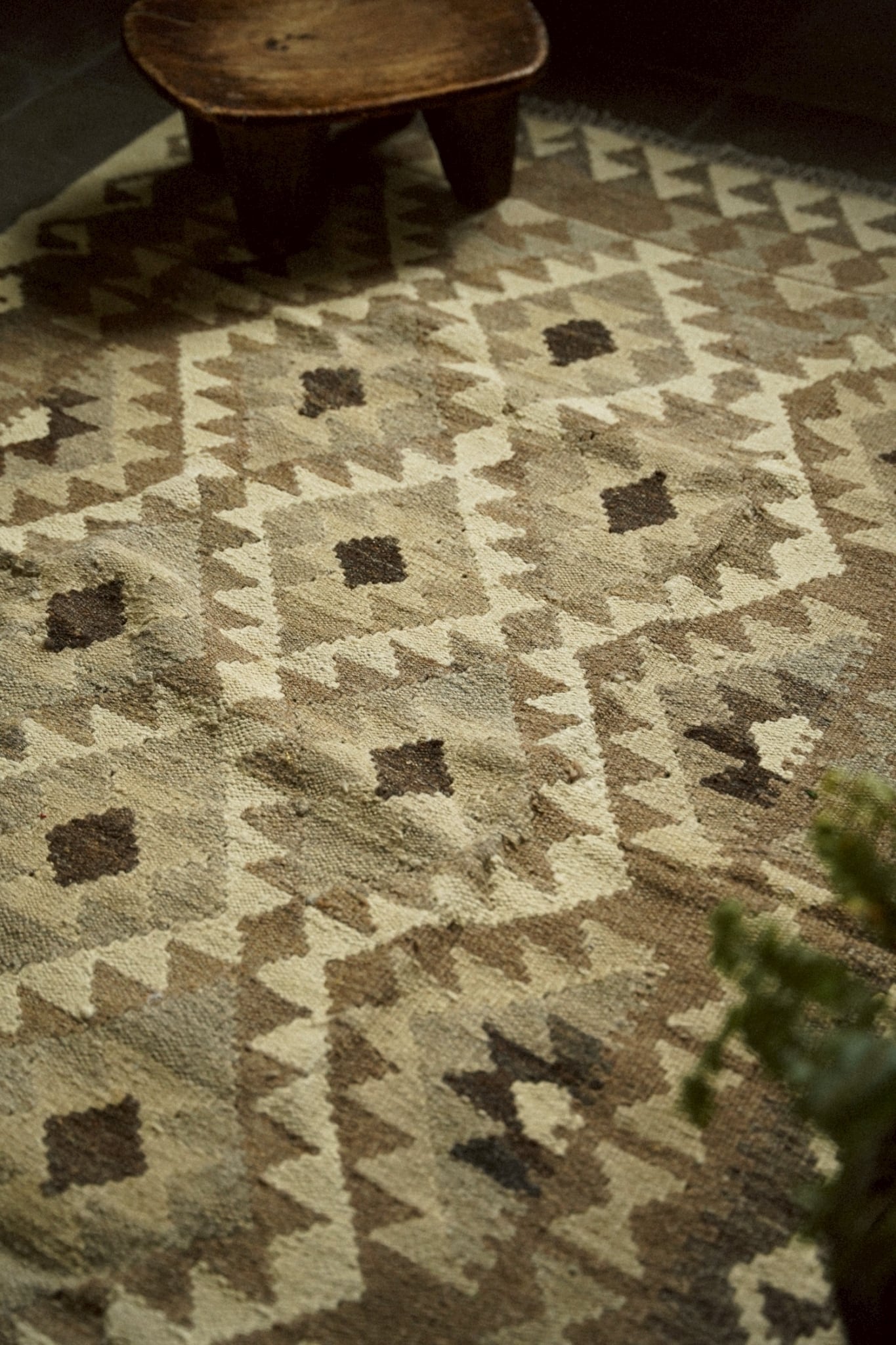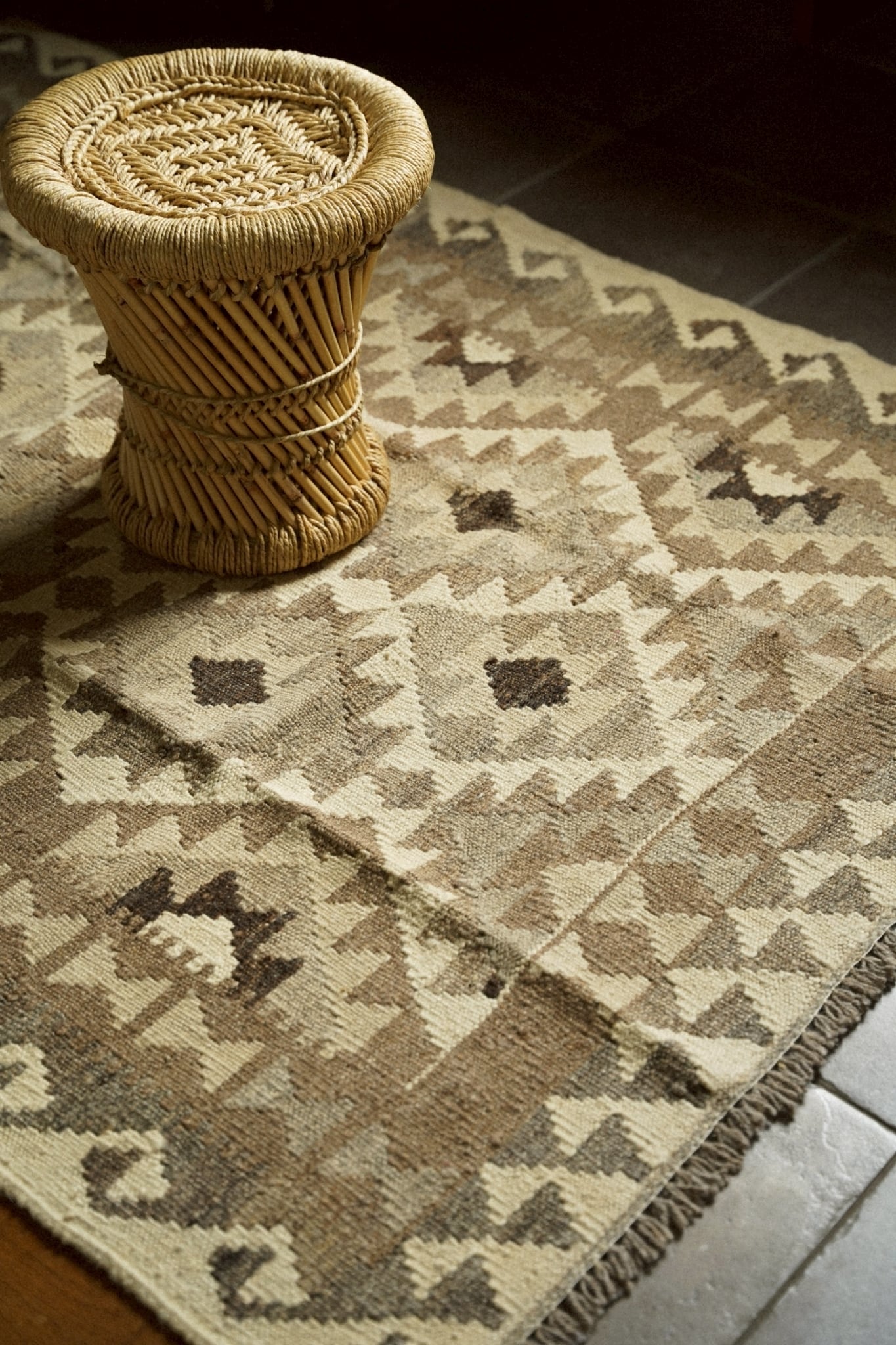 これからの季節にもピッタリな毛足がない平織りのキリムでお部屋の模様替えをしてみませんか?