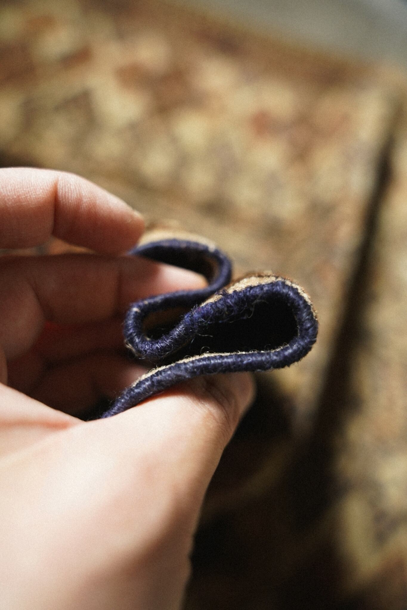 パイルは短めですが、織りは細かく詰まっているため手触りは滑らかで丈夫な作りになっています。