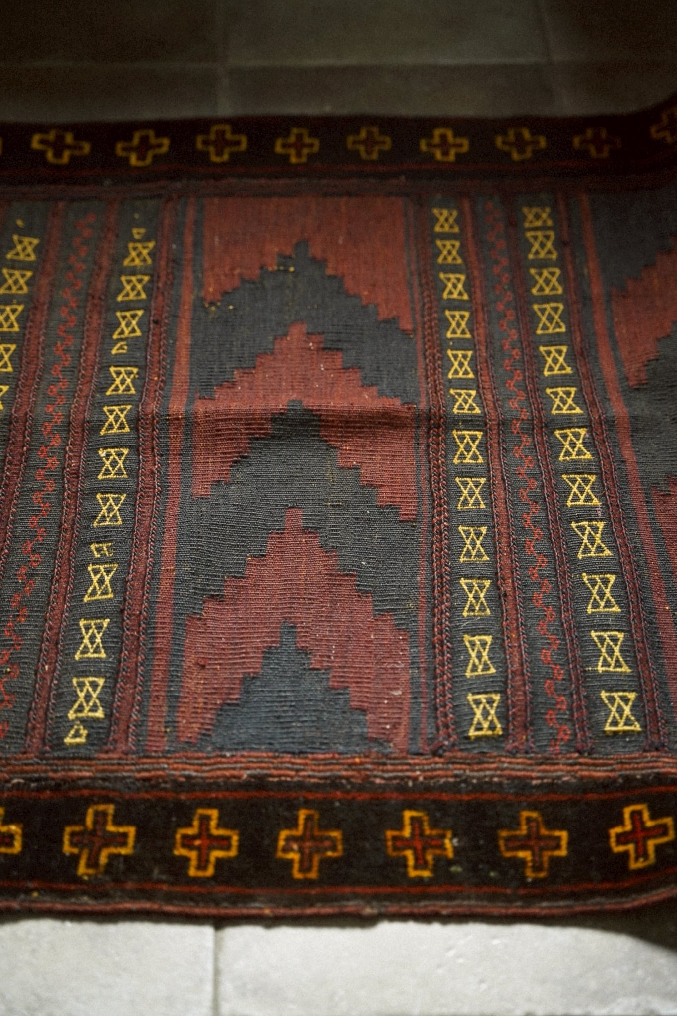 細長い形のソフレはこの上にお食事を載せて、みんなで食卓を囲む際に使われたキリムです。