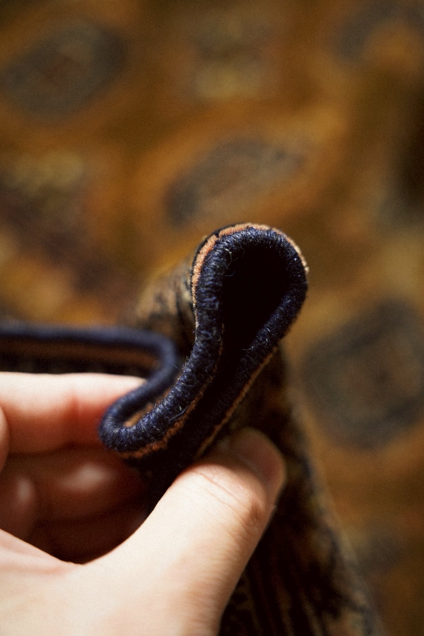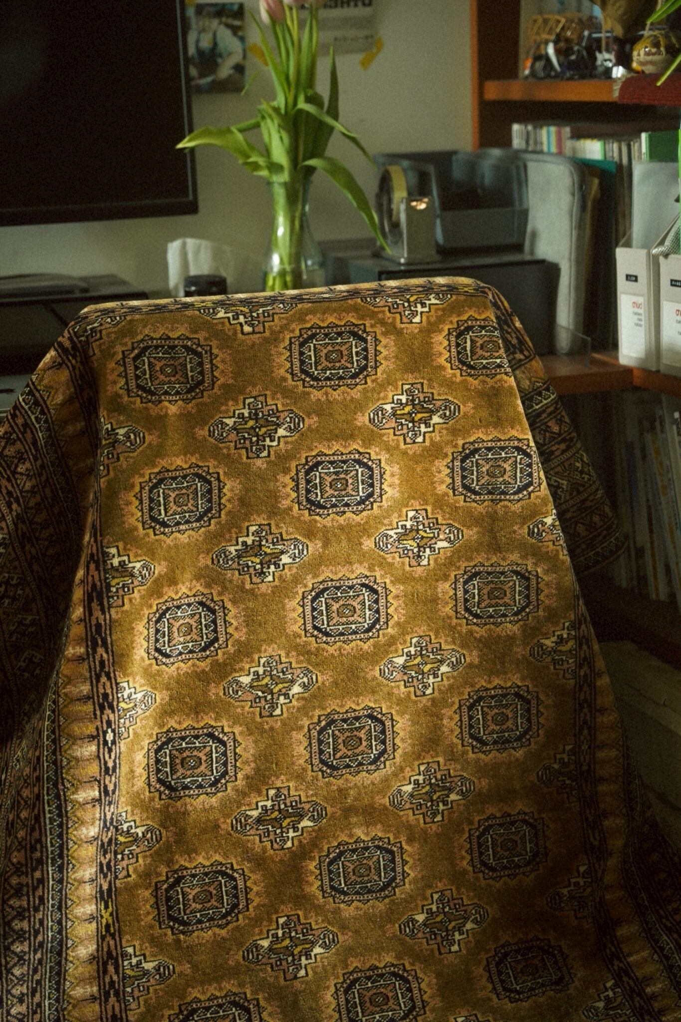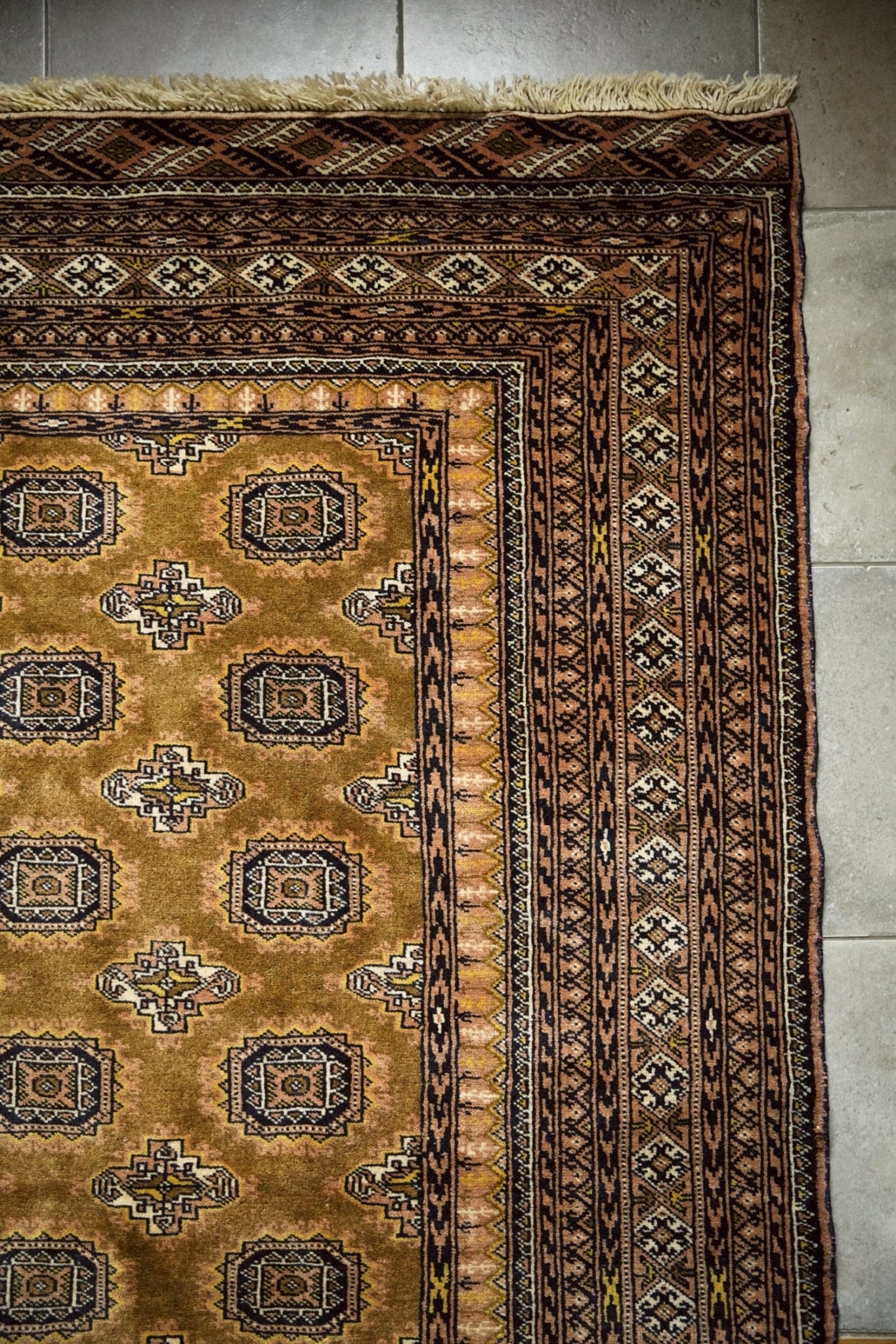 トルクメンラグらしい密度の詰まった織りで、肌触りは滑らか。