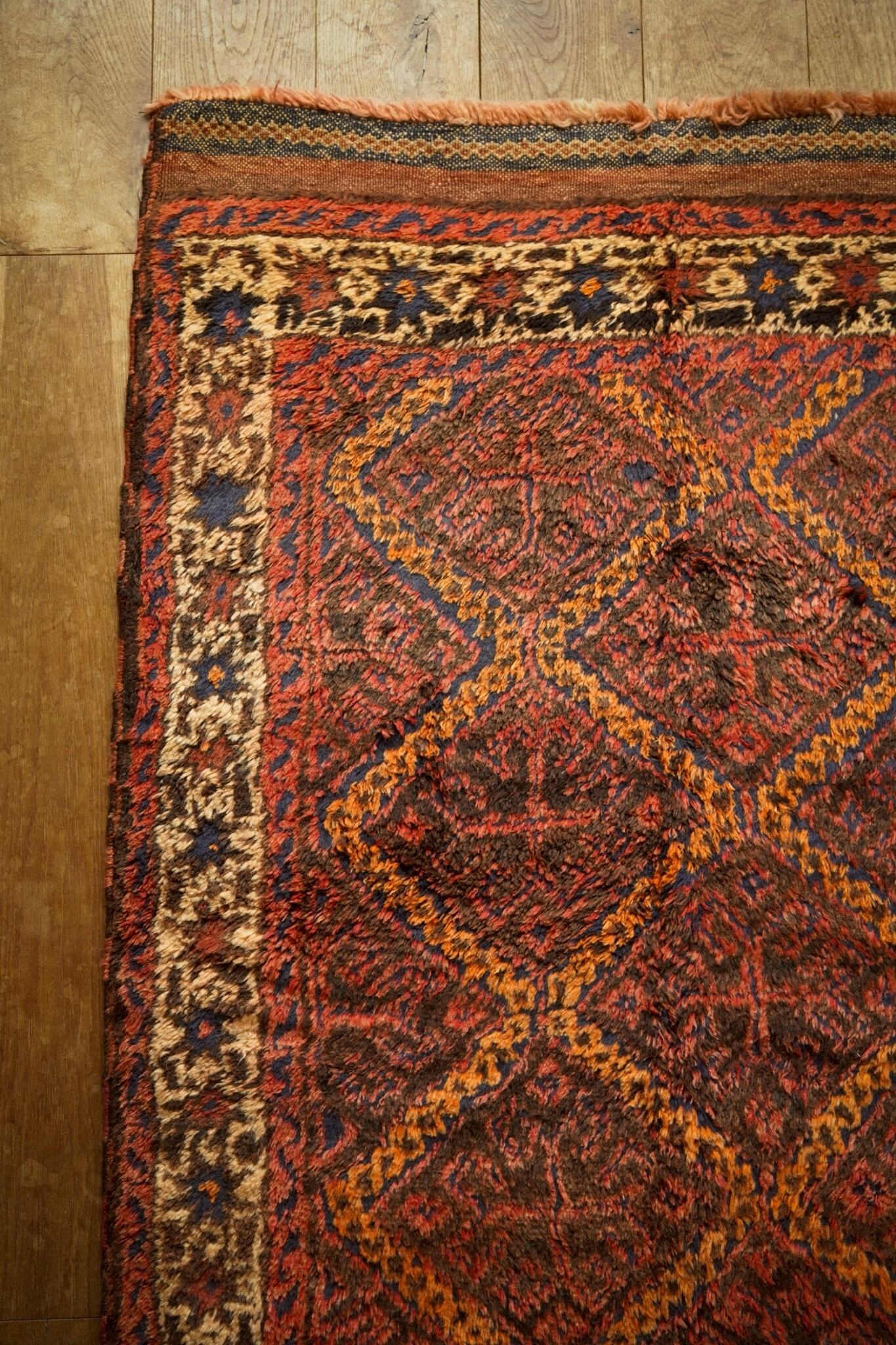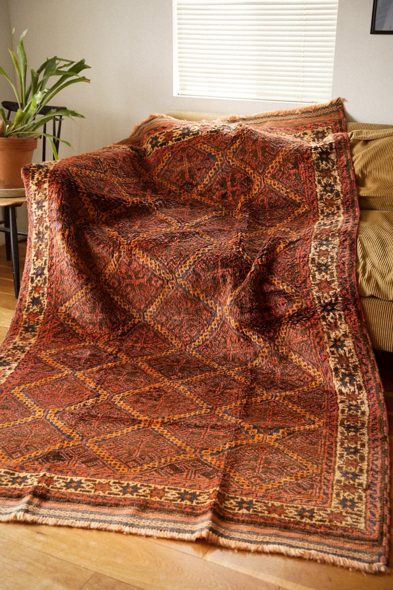 1960年代に織られたアフガニスタン産の大判サイズのタイマニラグ。フカフカなパイルは思わずラグの上に寝転びたくなります。