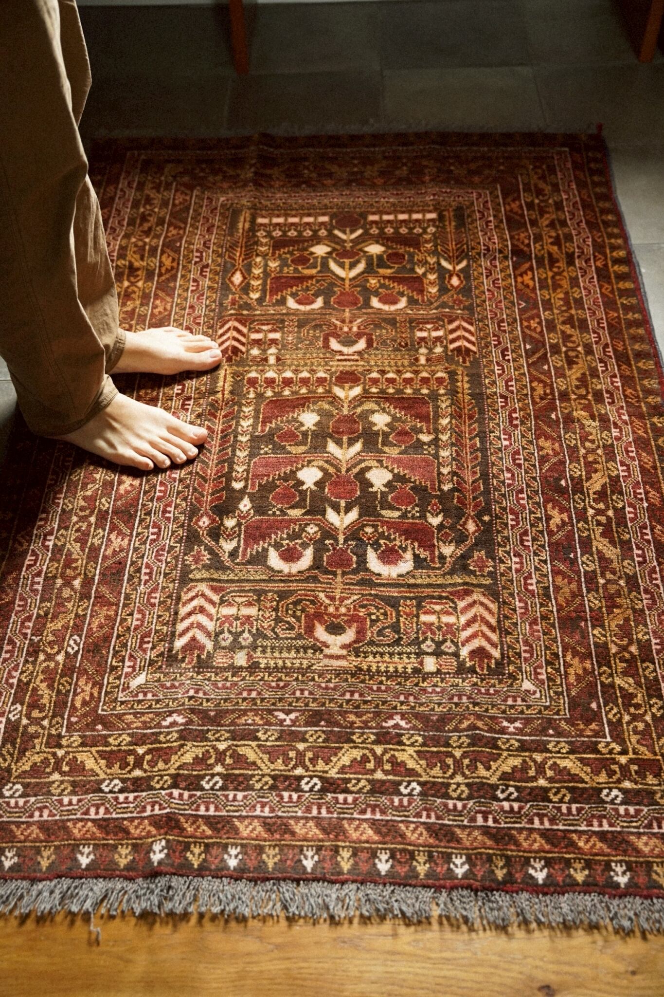 パイルは短めですが、トルクメン族ならではの細かい織りで滑らかな手触り。