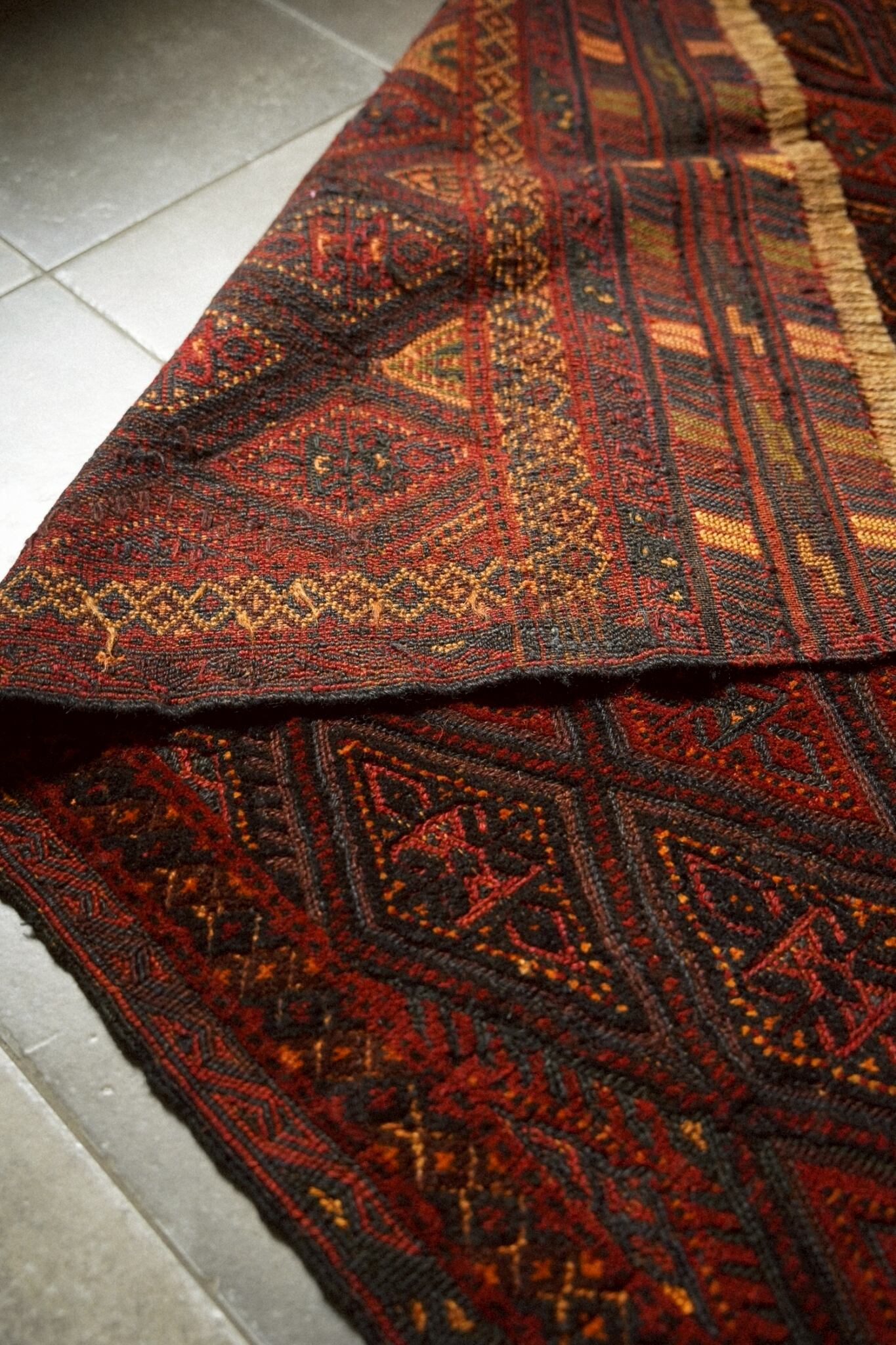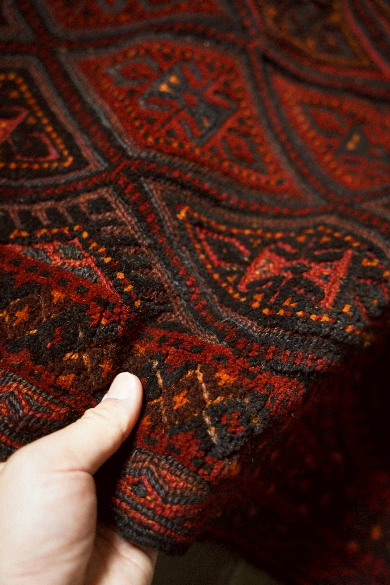 触り心地はしっとりとしており、キリム部分だけでなくパイル織との組み合わせのためチクチク感はありません。