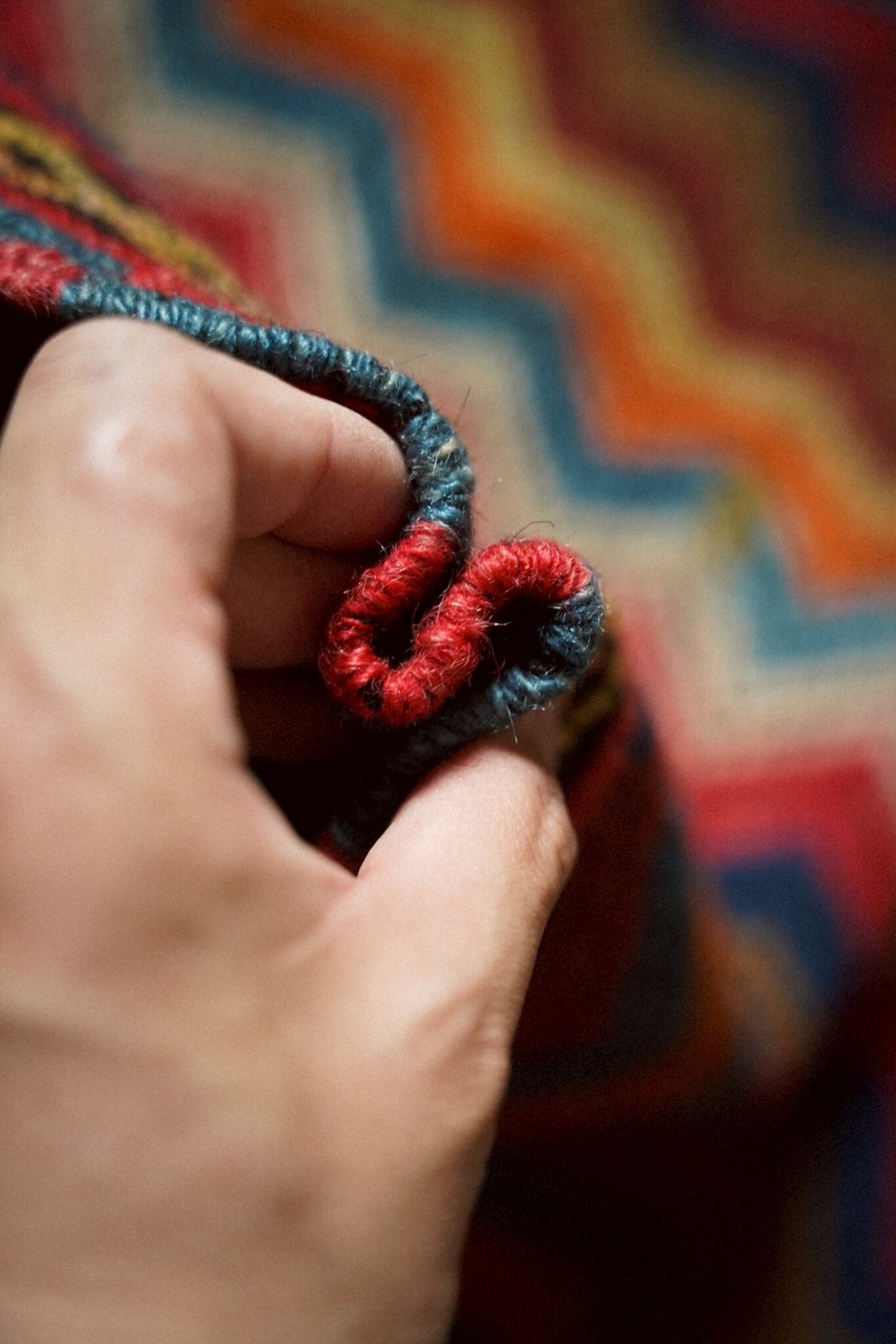 カラフルでリズミカルなジグザグ模様は、生命の躍動感を表現し空間に温もりをもたらします。床に敷くだけではなくソファに掛けたり、壁掛けにして楽しんだり多彩な使い方で、日々の暮らしに彩りを添える一枚です。