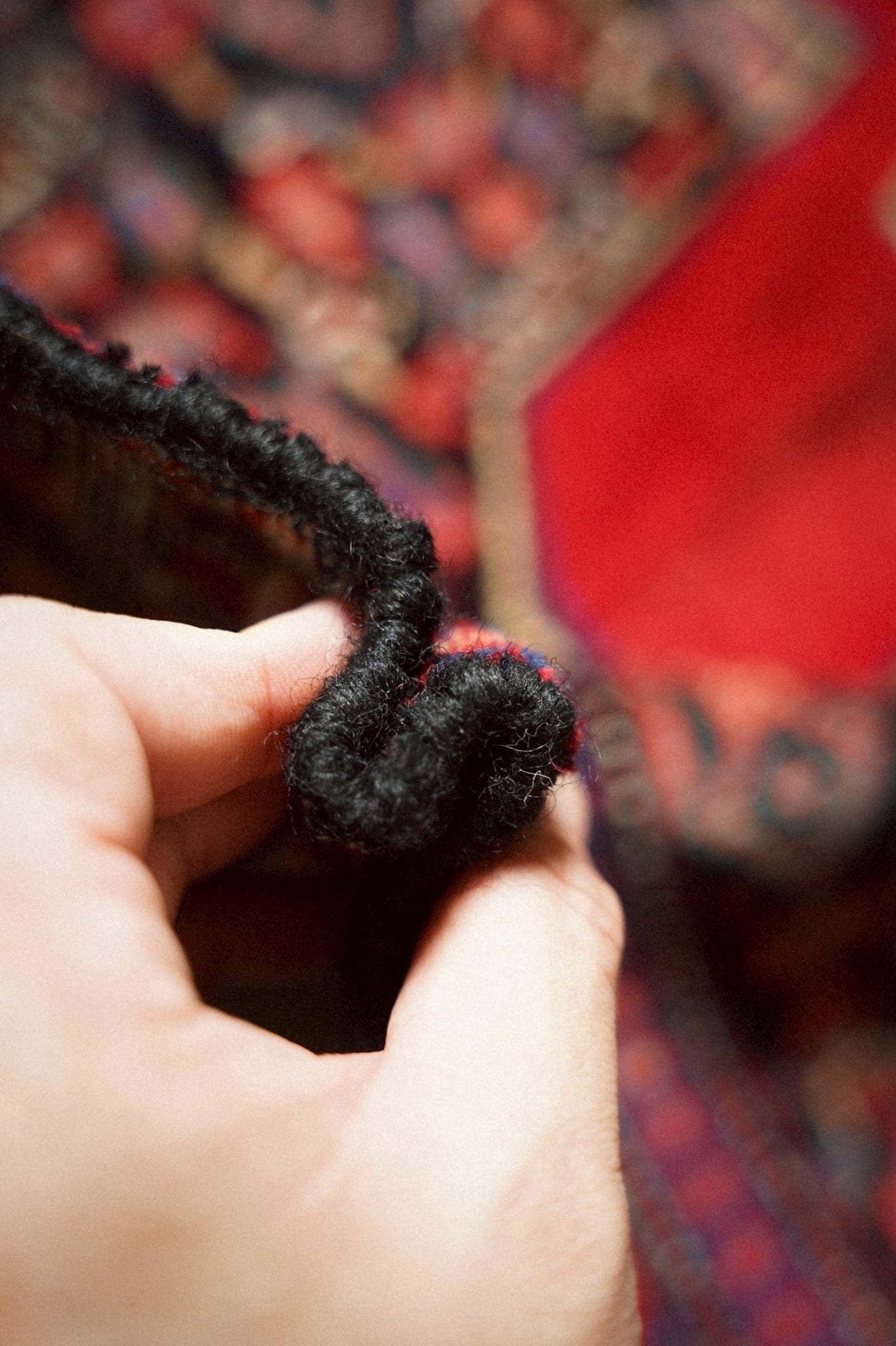パッと目を惹く優しい色味の赤と深いインディゴのコントラスト。