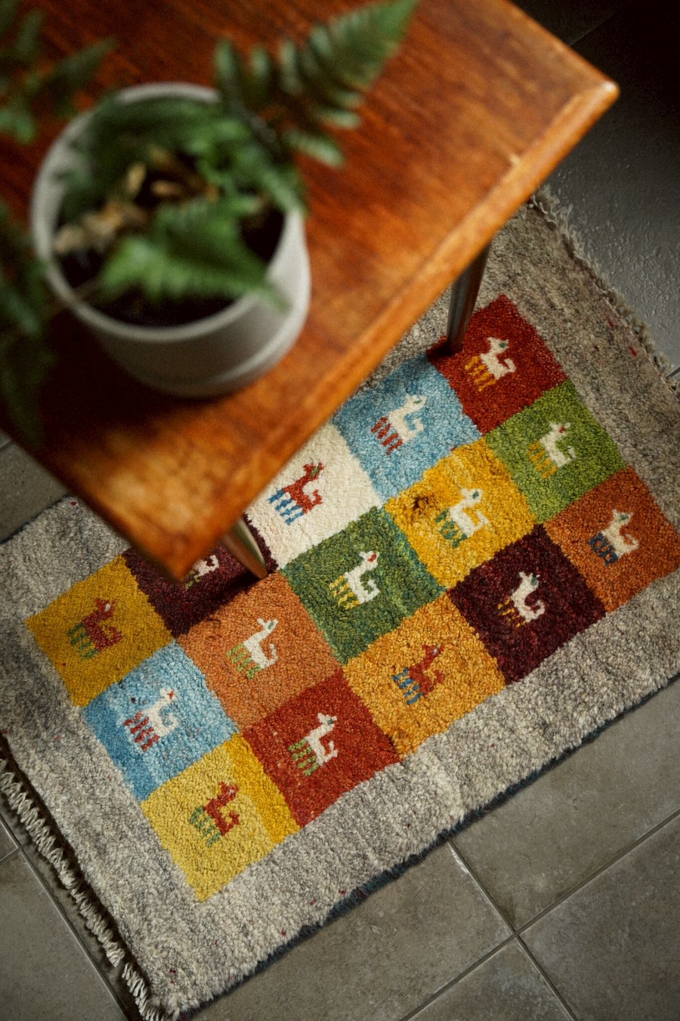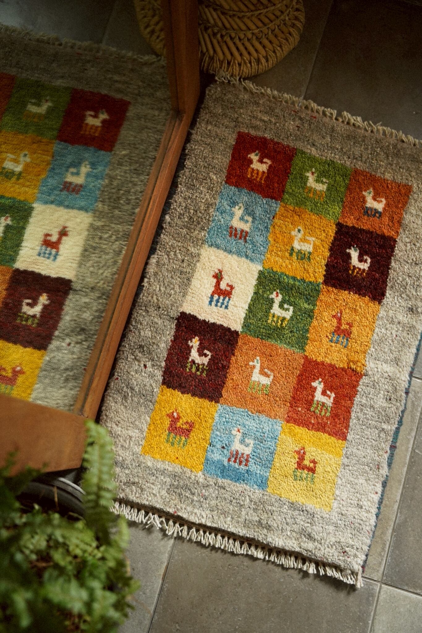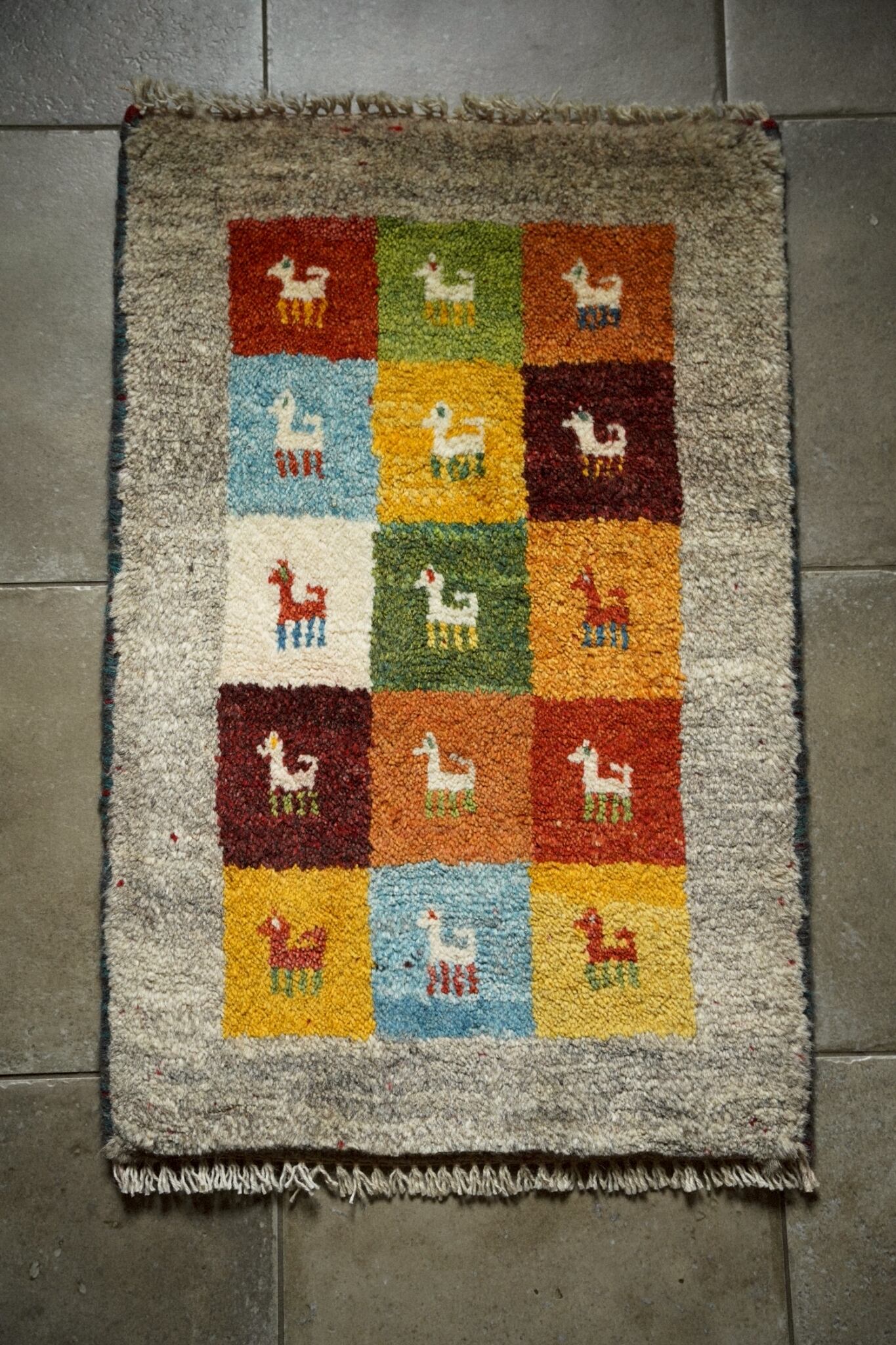 目立ったダメージもなくグッドコンディション。ギャッベの特徴でもあるしっかりとした毛足で踏み心地も柔らかく、リビングや玄関マットとしてもぴったり♪