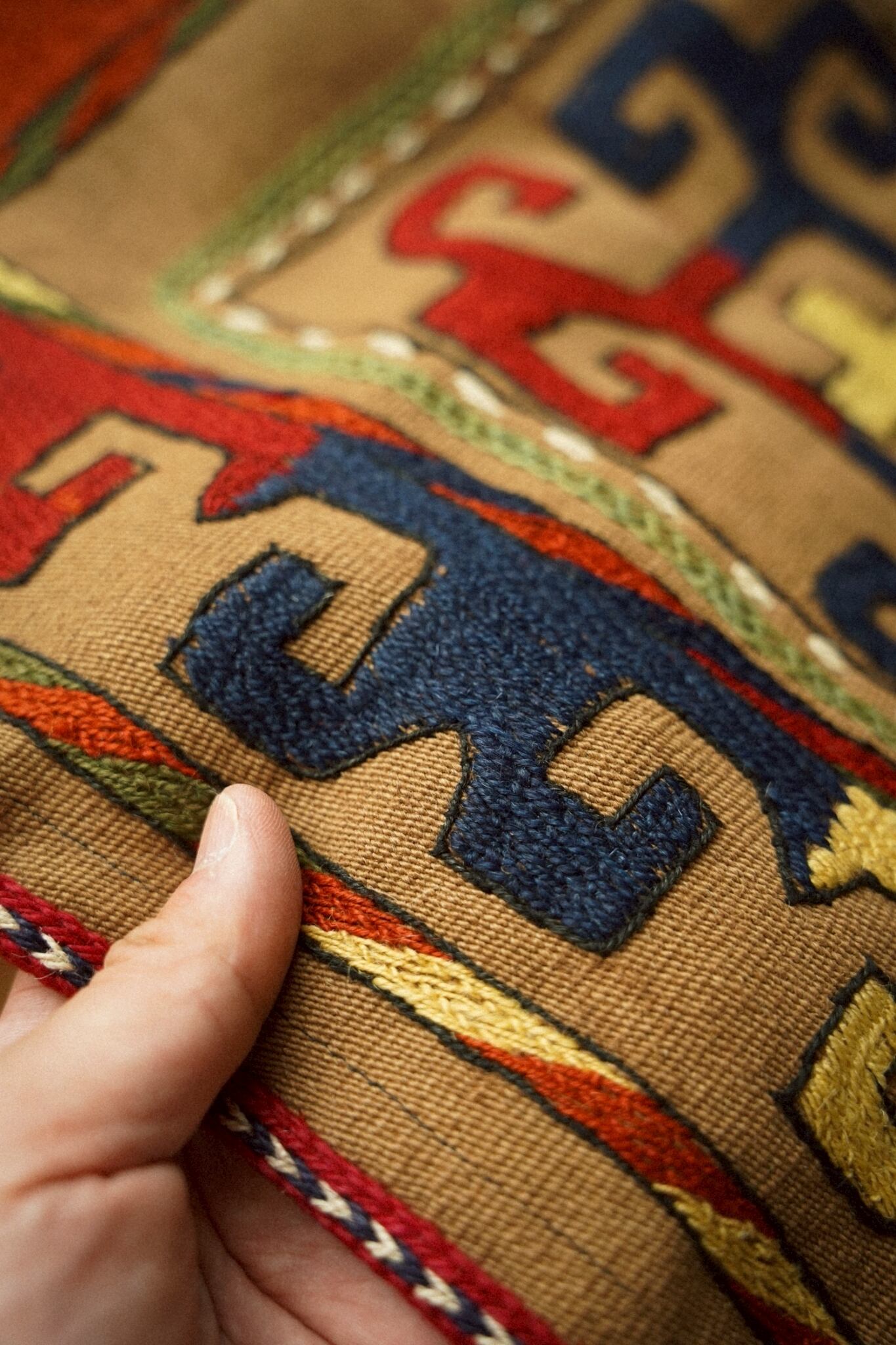 丈夫なコットン生地にとても美しい色彩の刺繍が施されています。