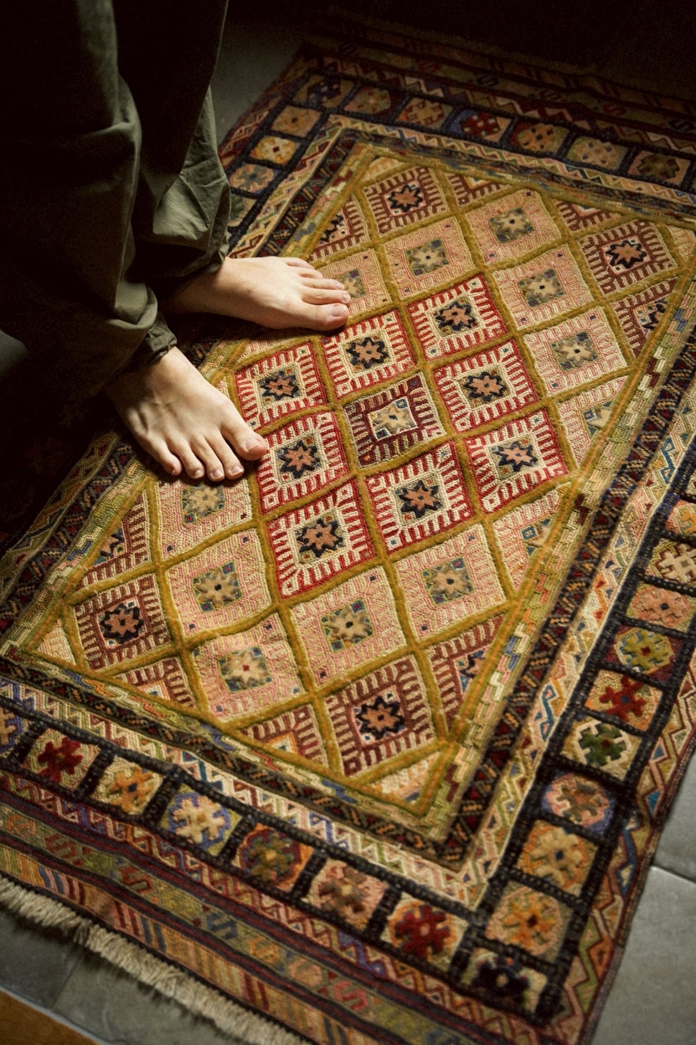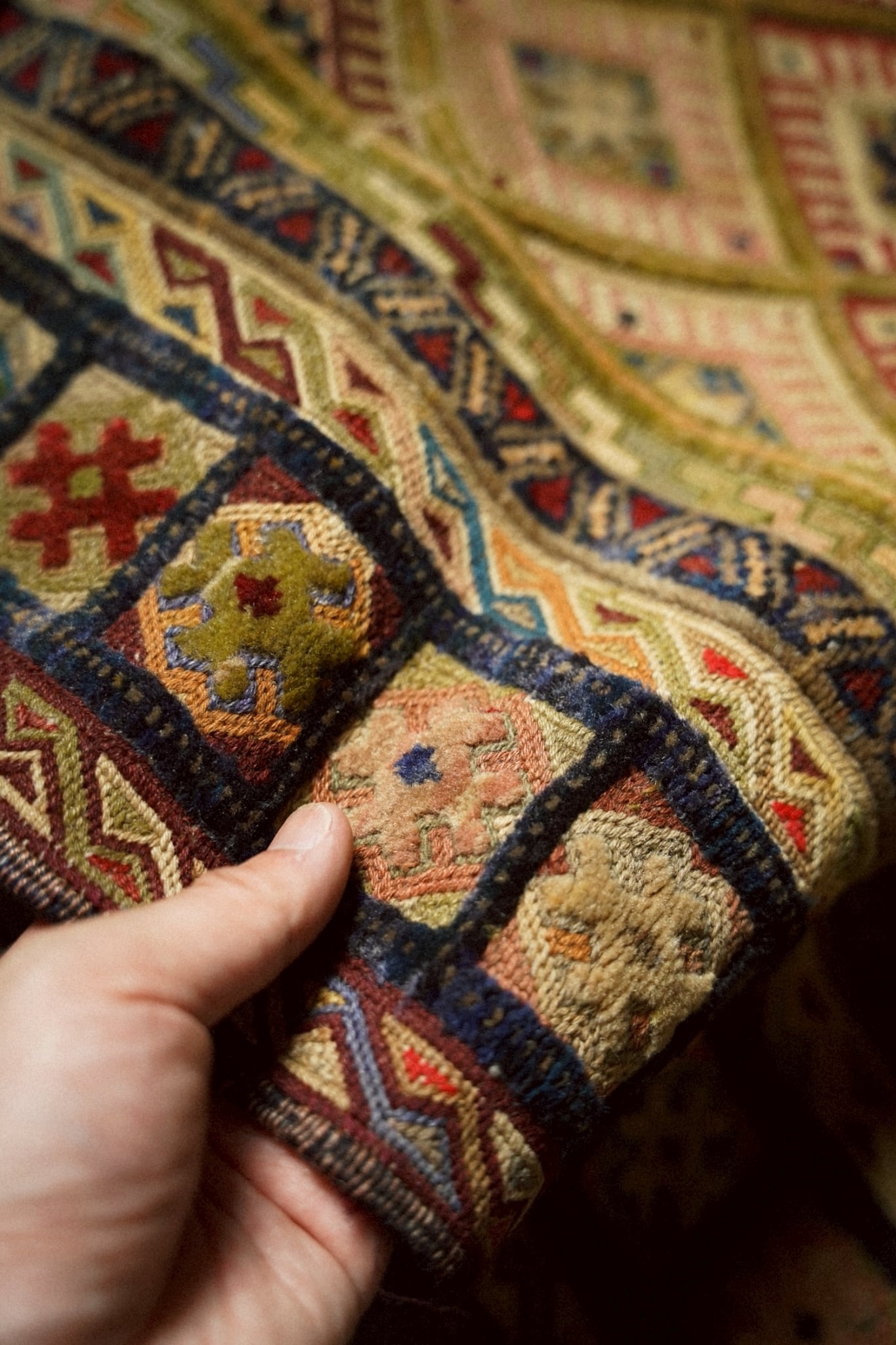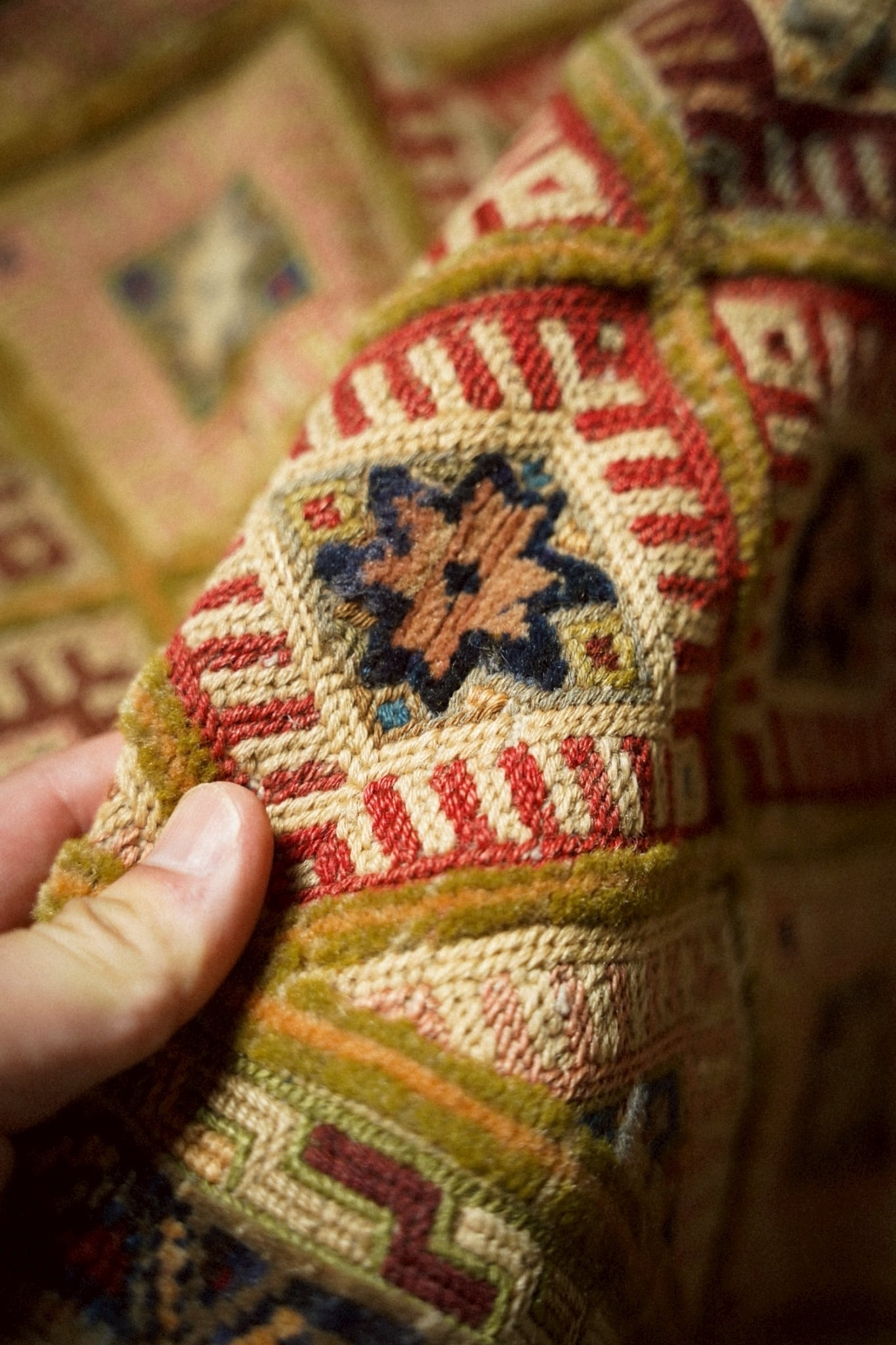 平織りとパイル織りがMIXされたポコポコとした立体感が特徴的なマシュワニラグ。