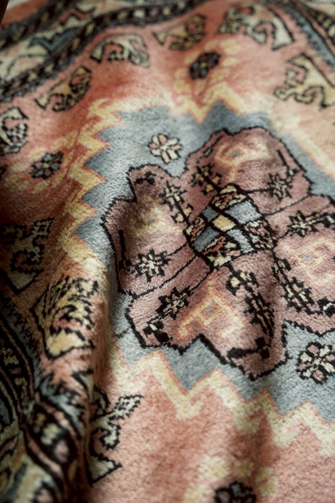 真ん中にはフローラルメダリオンが描かれ、周りには幾何学紋様が沢山織り込まれたデザイン。