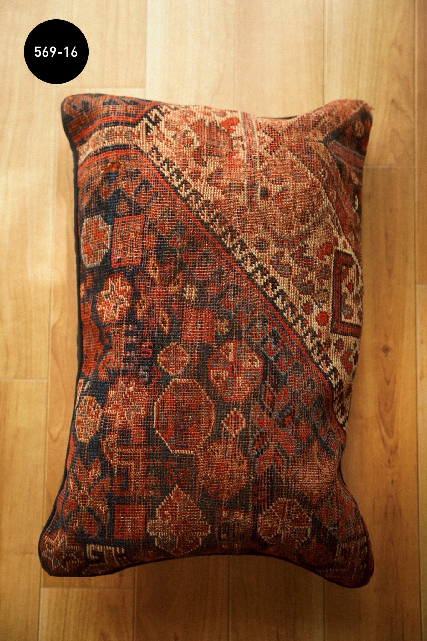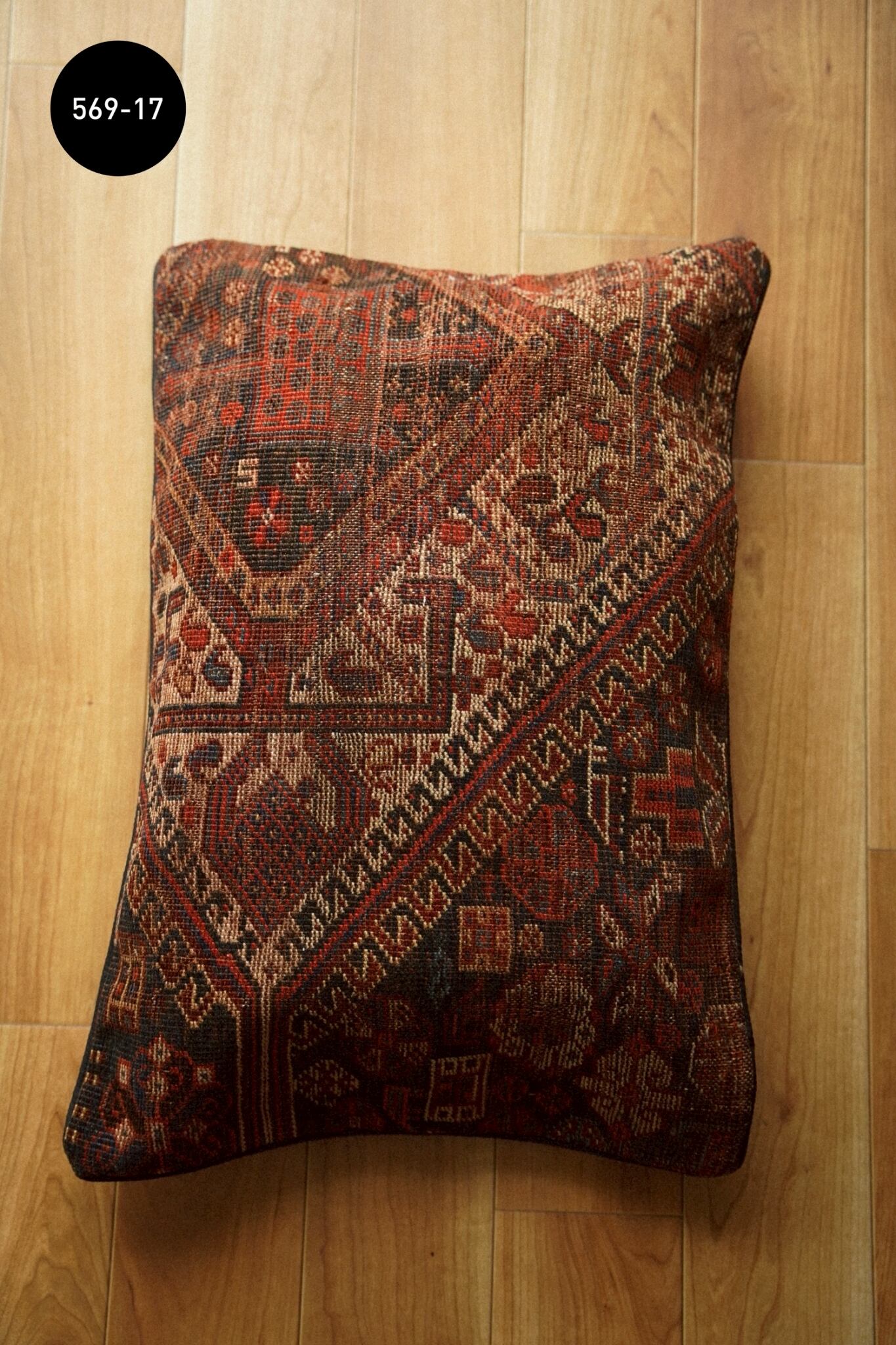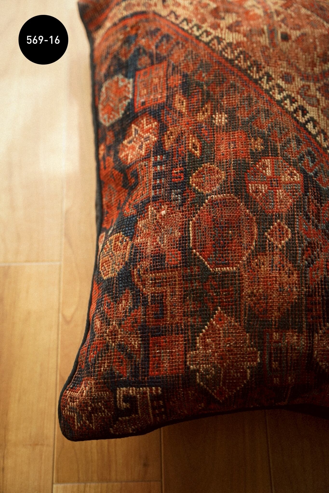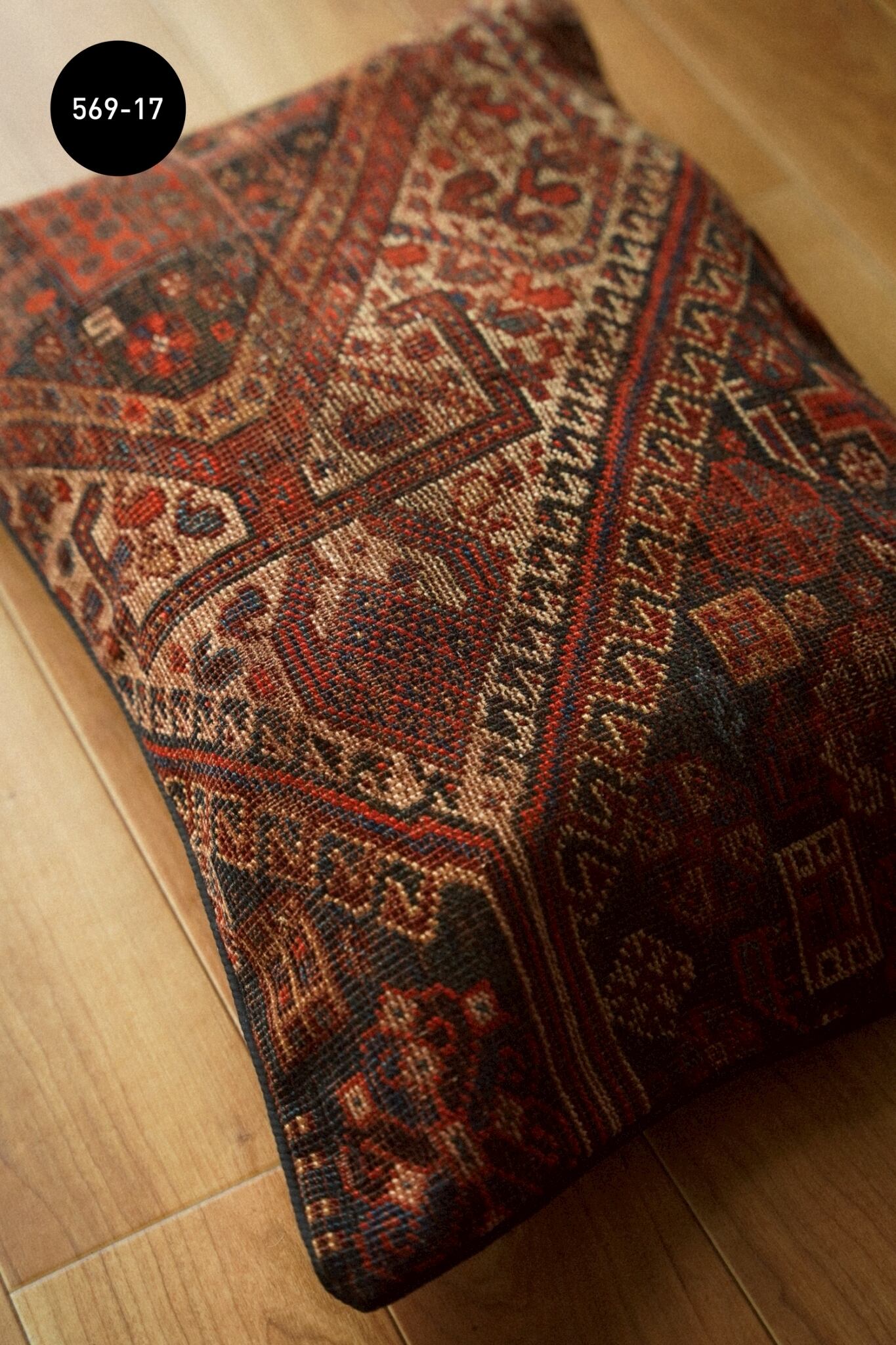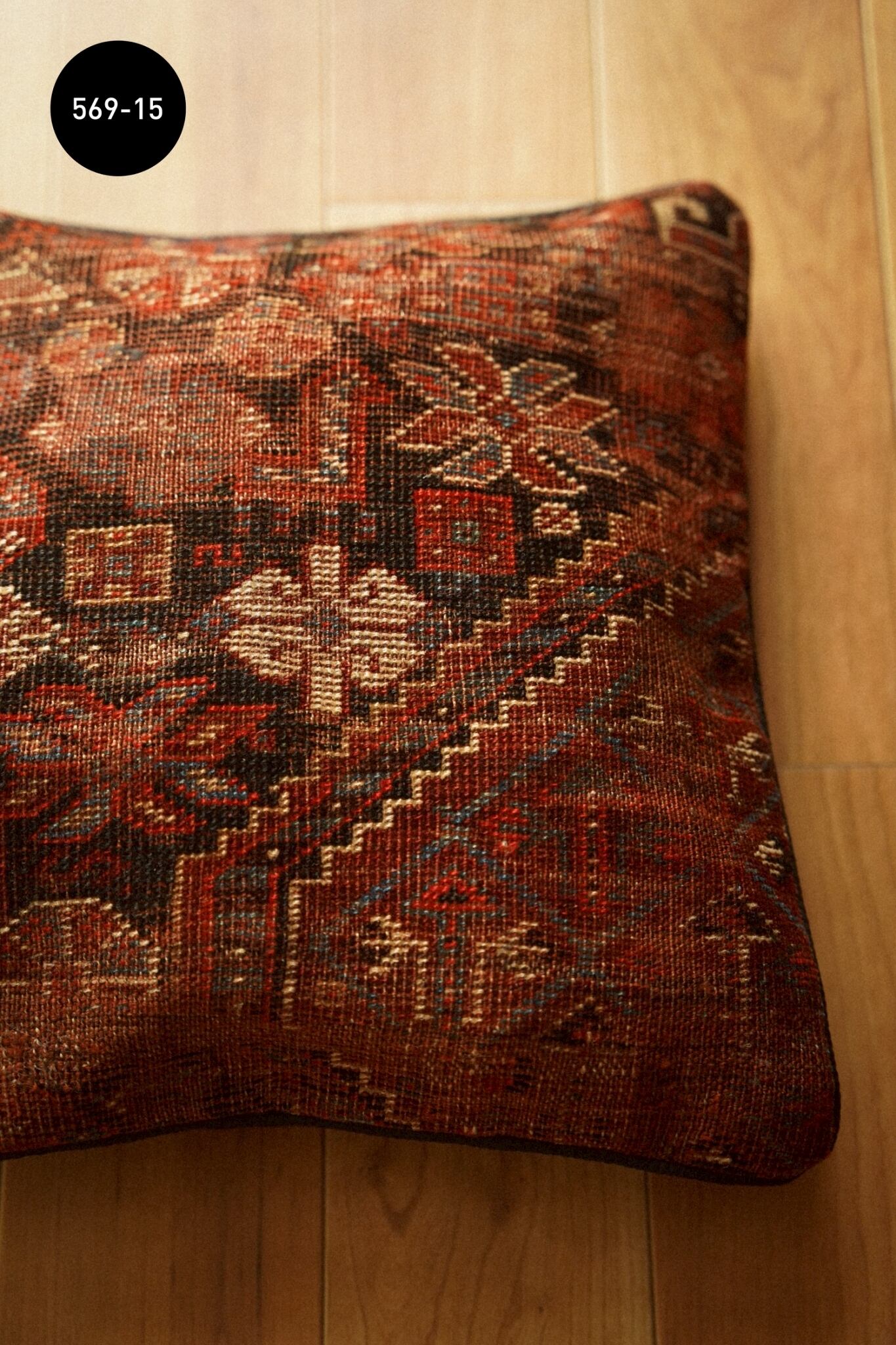 ハムセ連合の140年前のアンティークのラグを再利用して作られたクッションカバー。