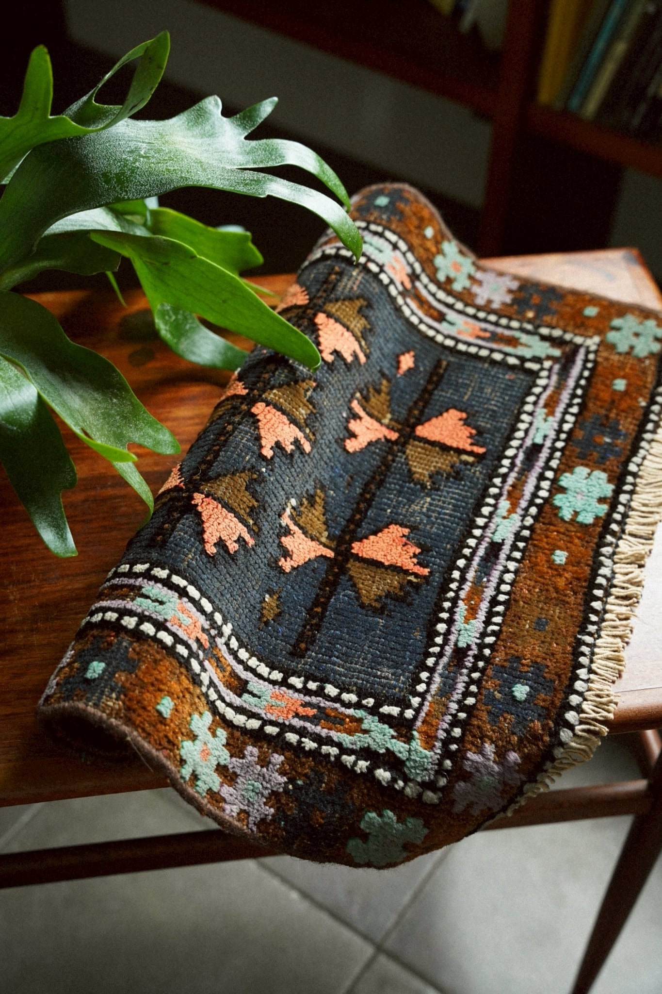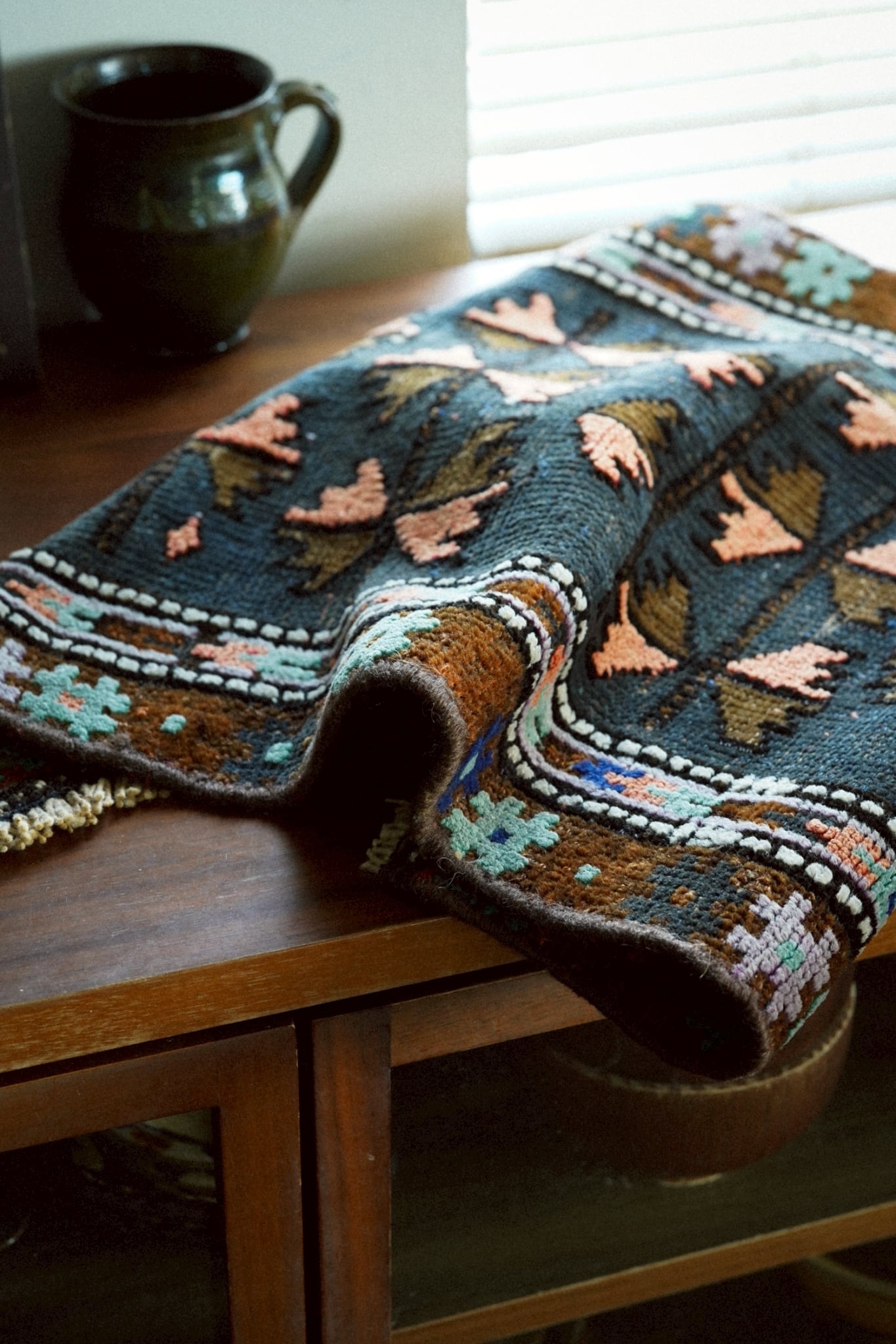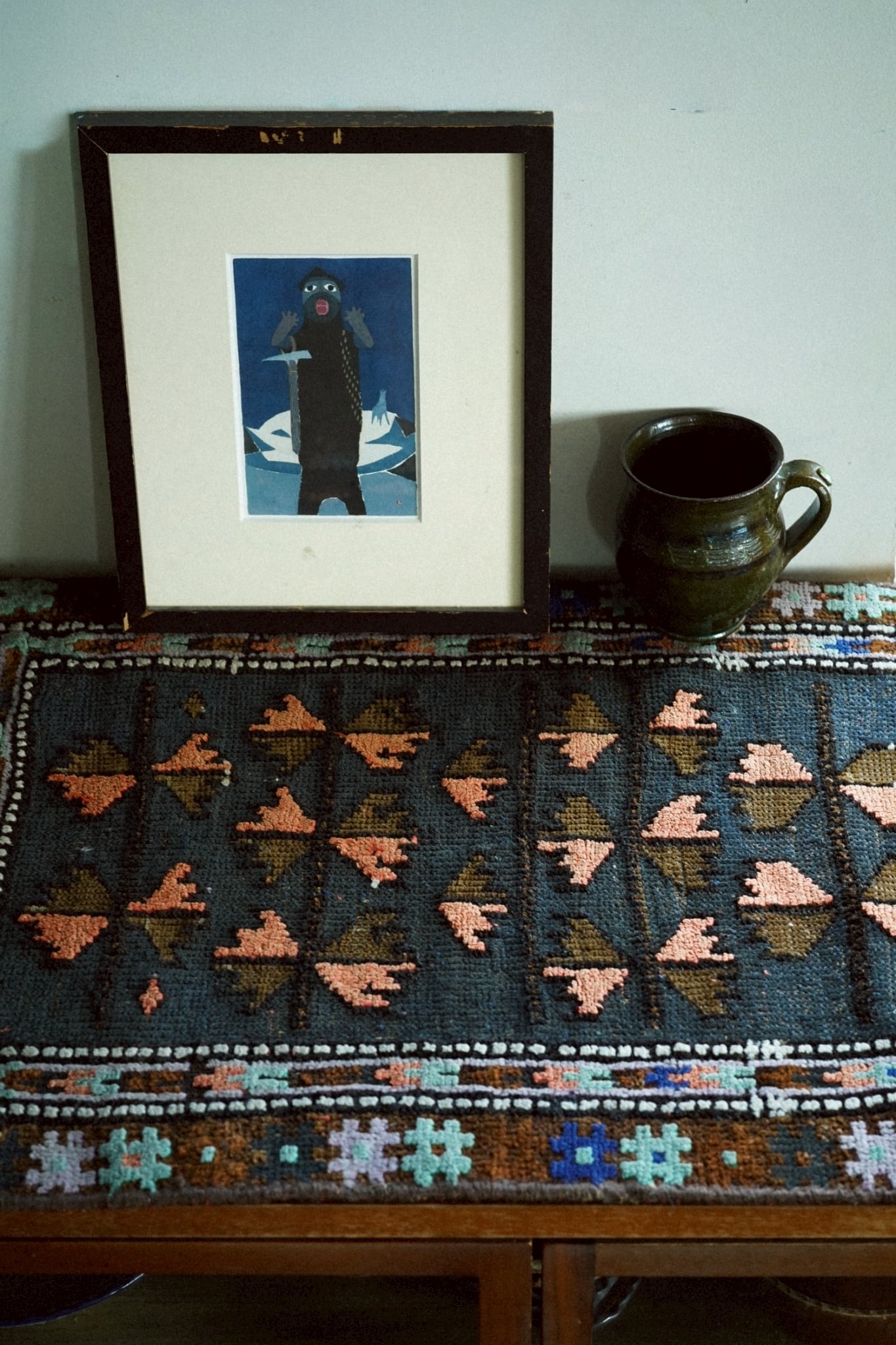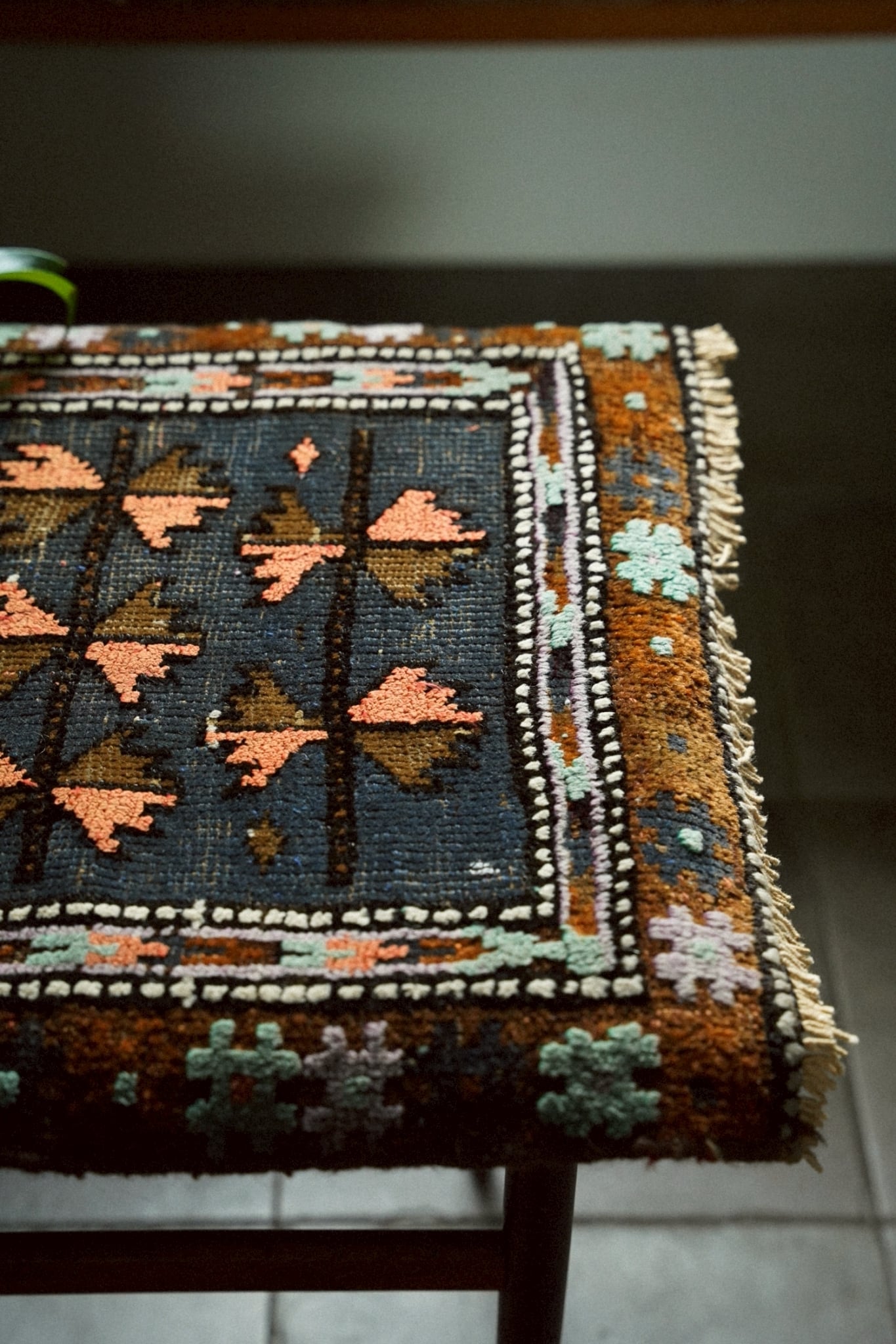 バーリシトと呼ばれる家財や食材を入れたり、屋内ではクッションとして使用される袋状のものをラグに仕立ててもらいました。