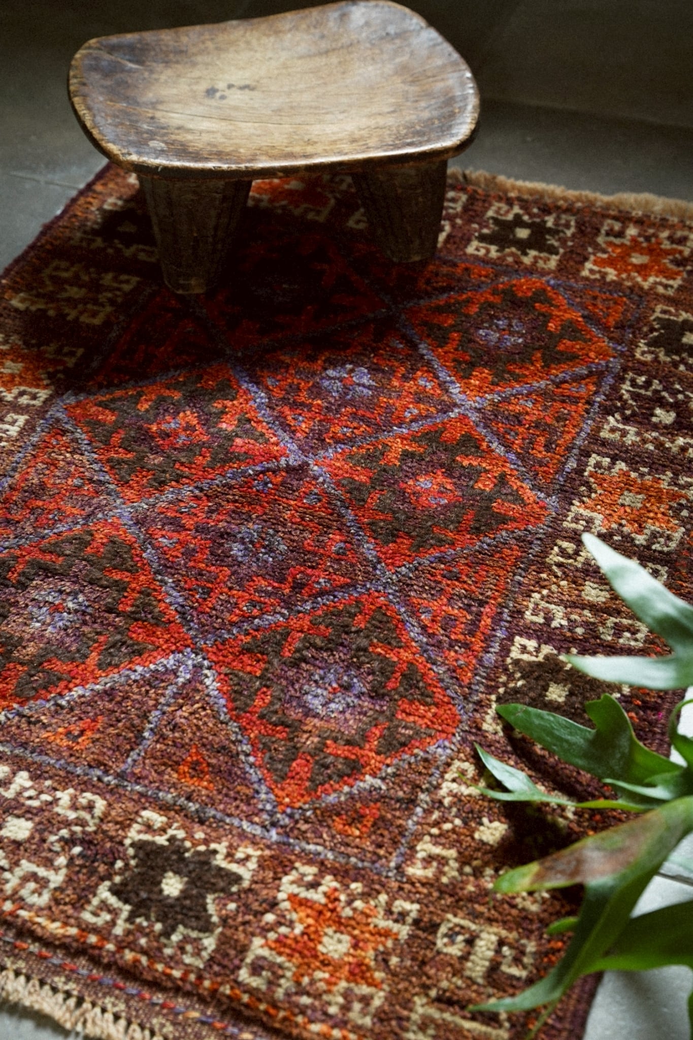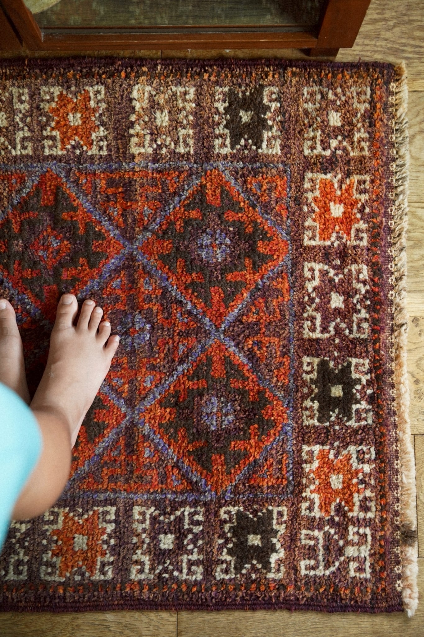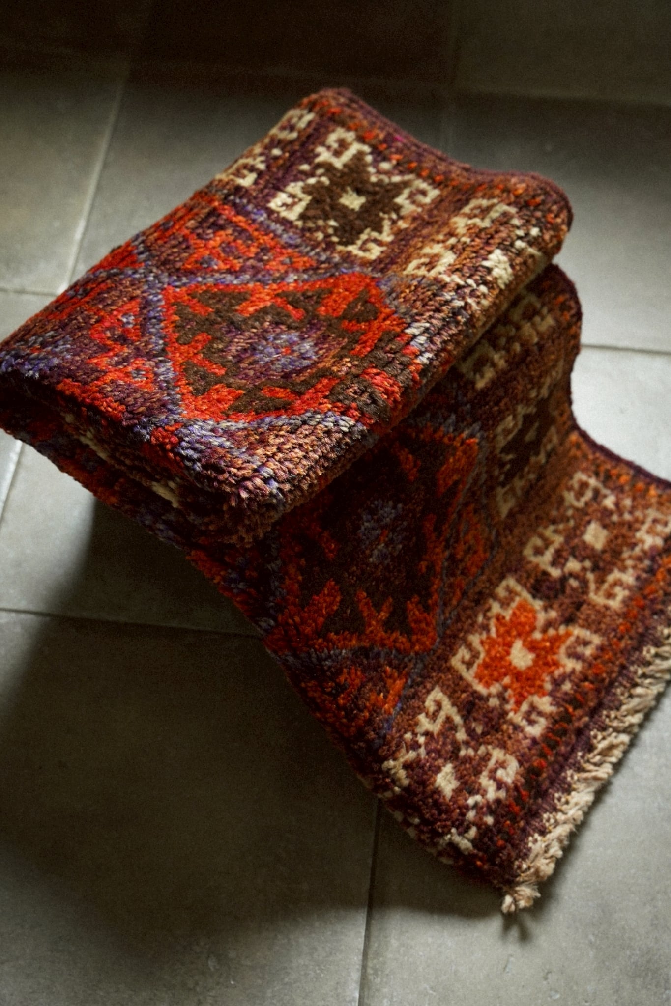 バーリシトと呼ばれる家財や食材を入れたり、屋内ではクッションとして使用される袋状のものをラグに仕立ててもらいました。