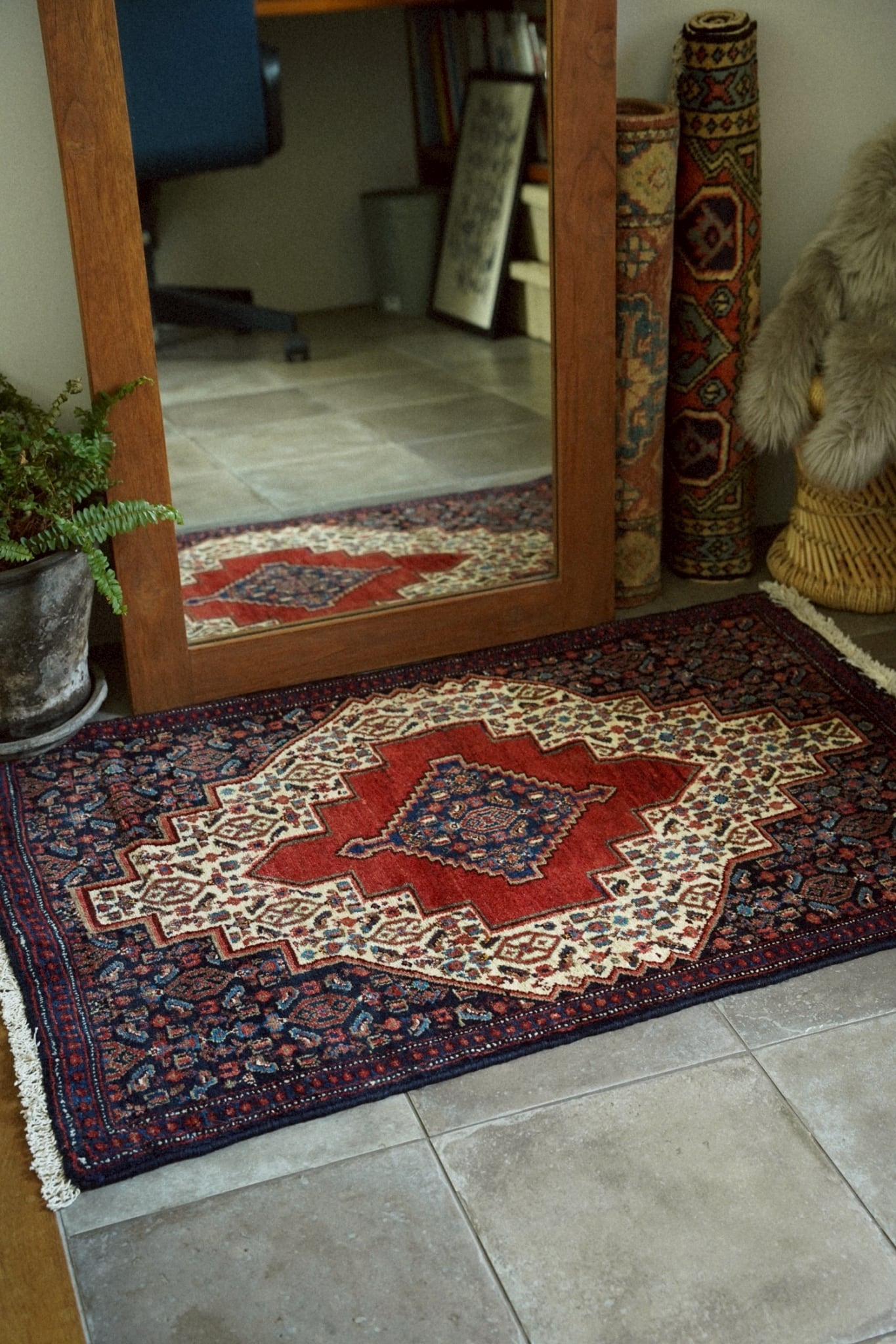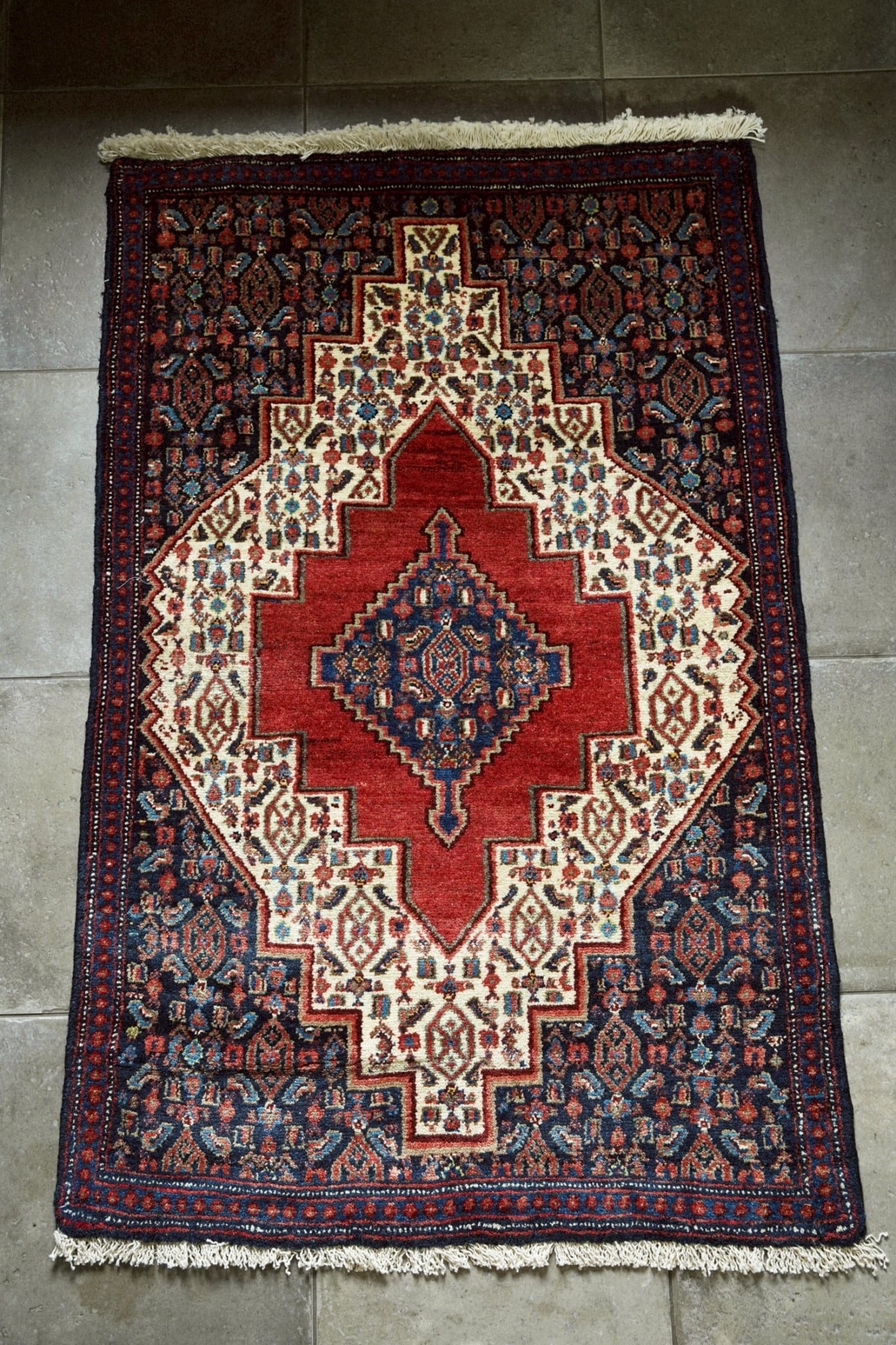 1980年代にペルシャ北西部にあるセネ(現サナンダジ)で織られたラグ。