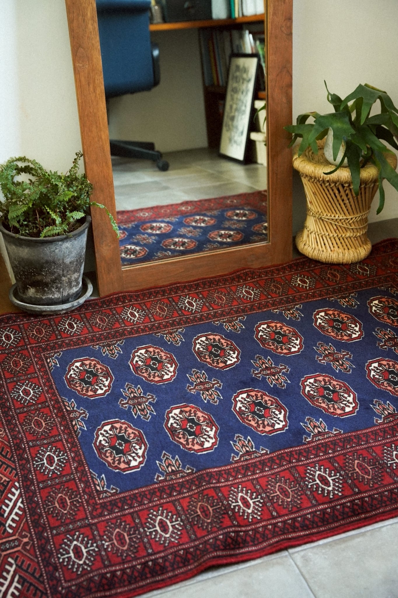トルクメン族らしい密度の詰まった織りはきめ細やかな肌触りでずっしりとした重量感があり足元のひんやり感を防いでくれます。