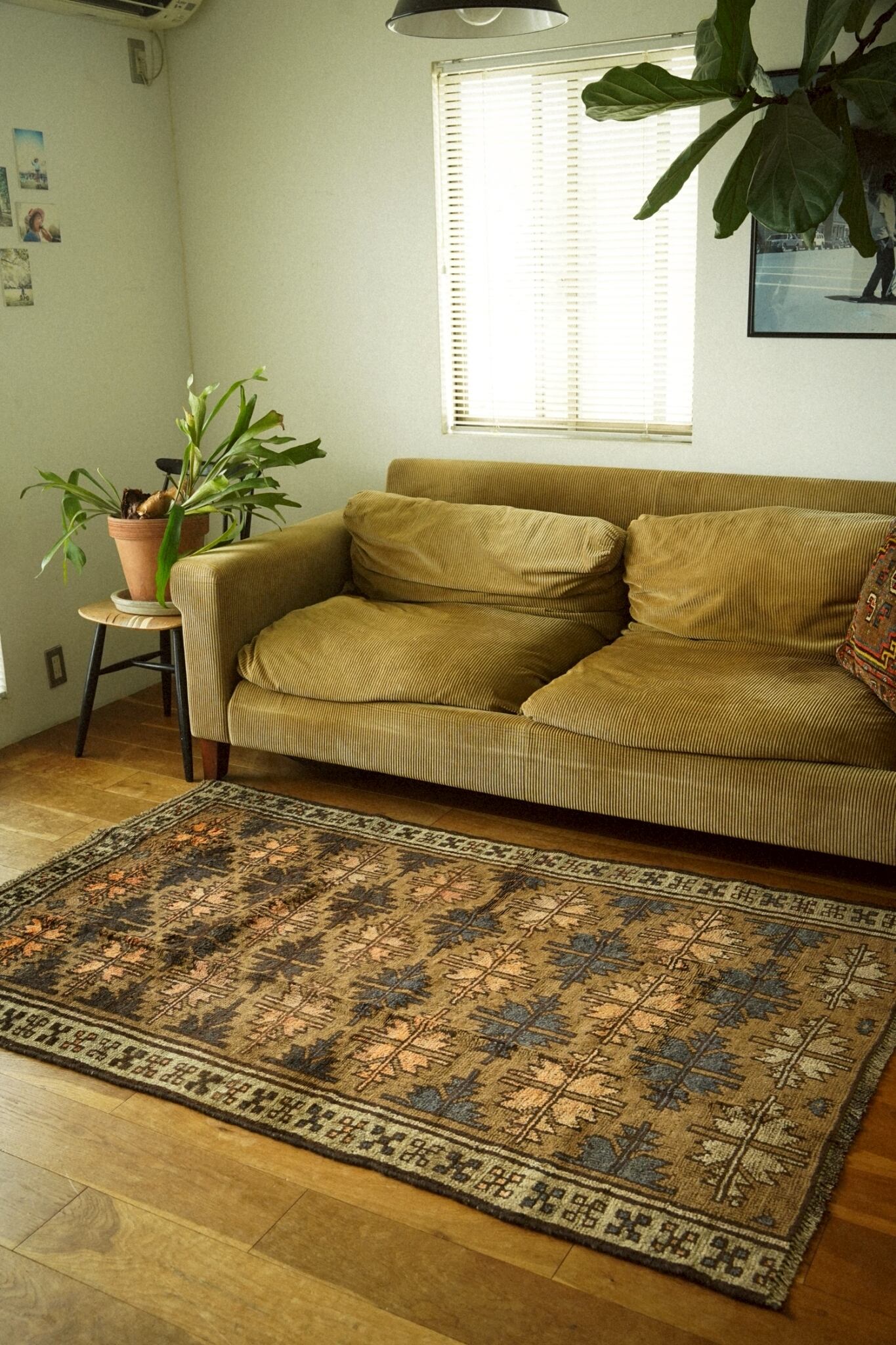 リビングやソファ前、デスク下やベッドサイド、和室など使いやすいサイズ感とデザイン。ナチュラルカラーベースのカラーリングのラグはインテリアにも取り入れやすく、トライバルラグ初心者の方にもおすすめの一枚です。