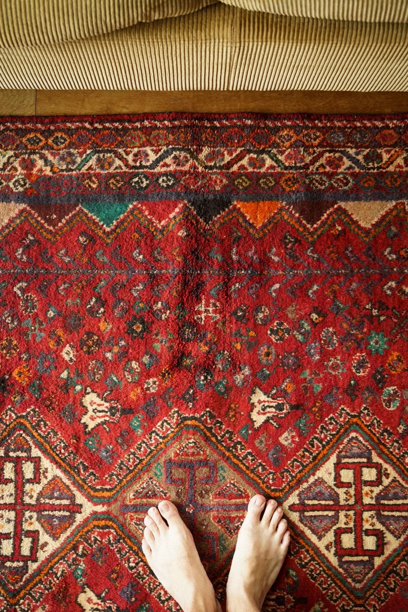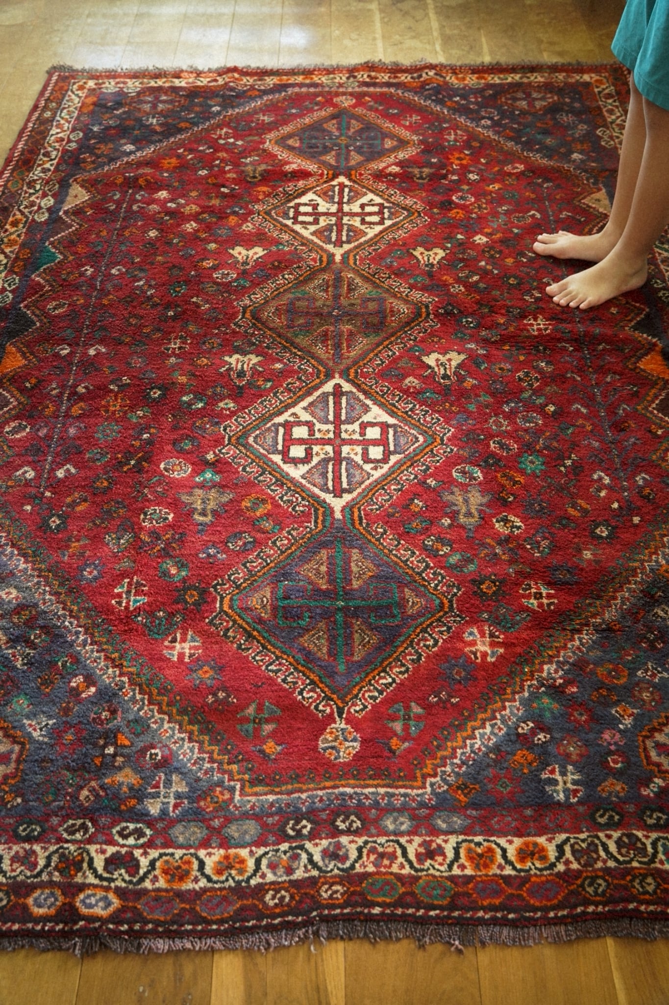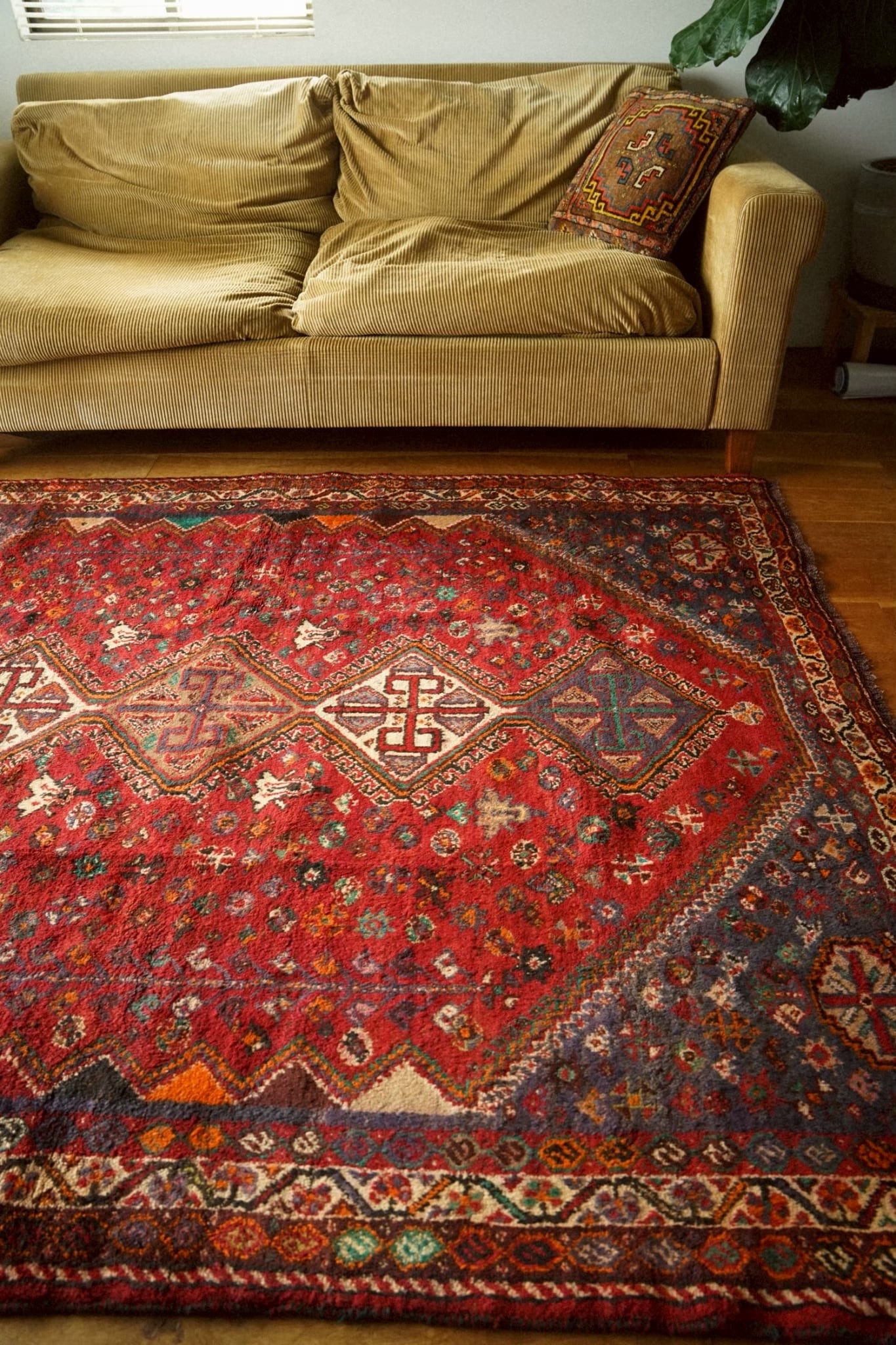 沢山の色味が使われていますが経年によって深みのある色合いになっており、フローリングに敷いても馴染みやすくインテリアにも取り入れやすいかと思います。