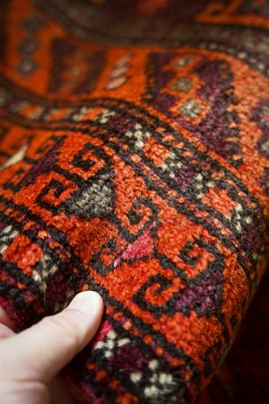 バーリシトと呼ばれる家財や食材を入れたり、屋内ではクッションとして使用される袋状のものをラグに仕立ててもらいました。