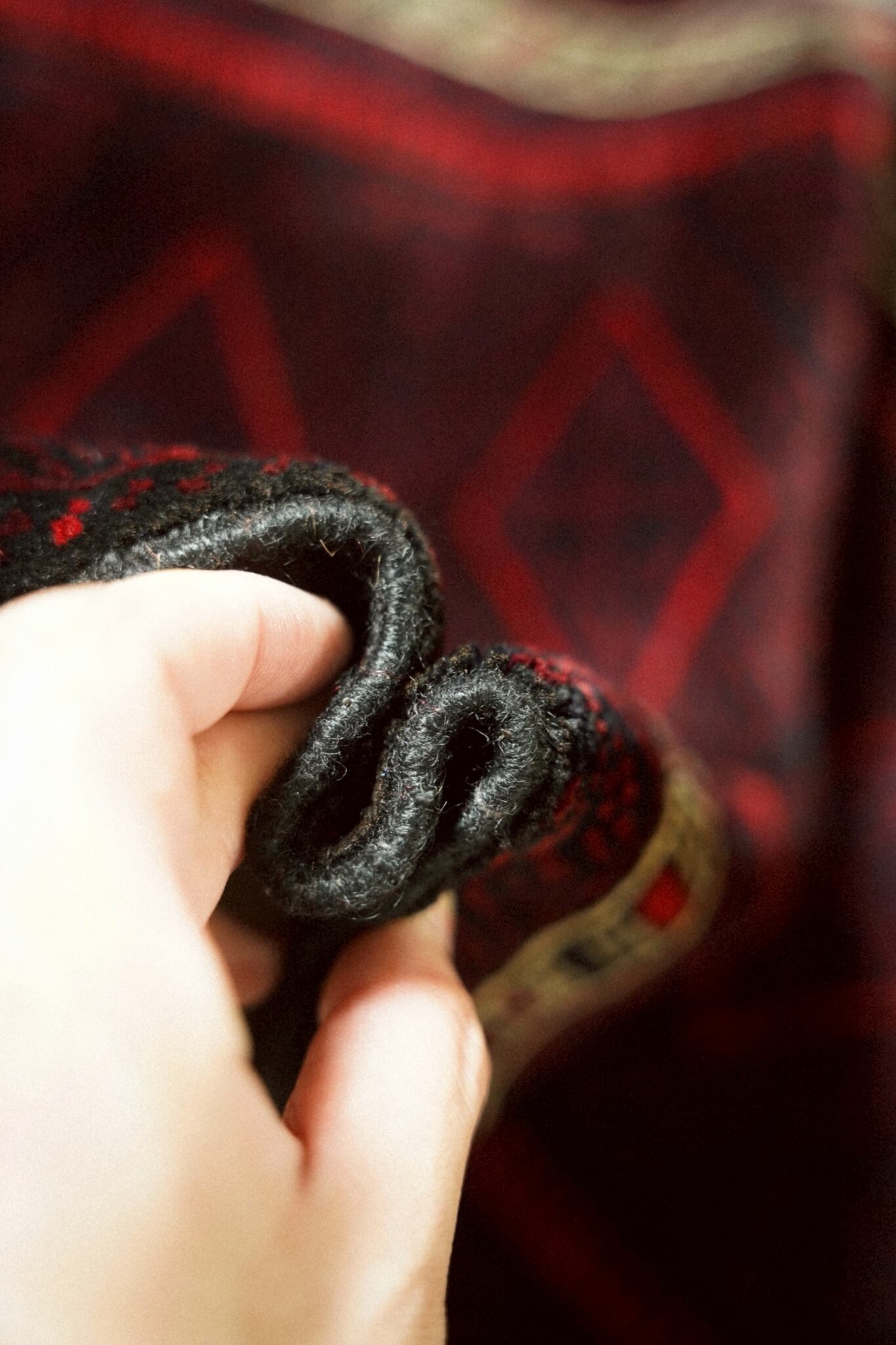 バーリシトと呼ばれる家財や食材を入れたり、屋内ではクッションとして使用される袋状のものをラグに仕立ててもらいました。