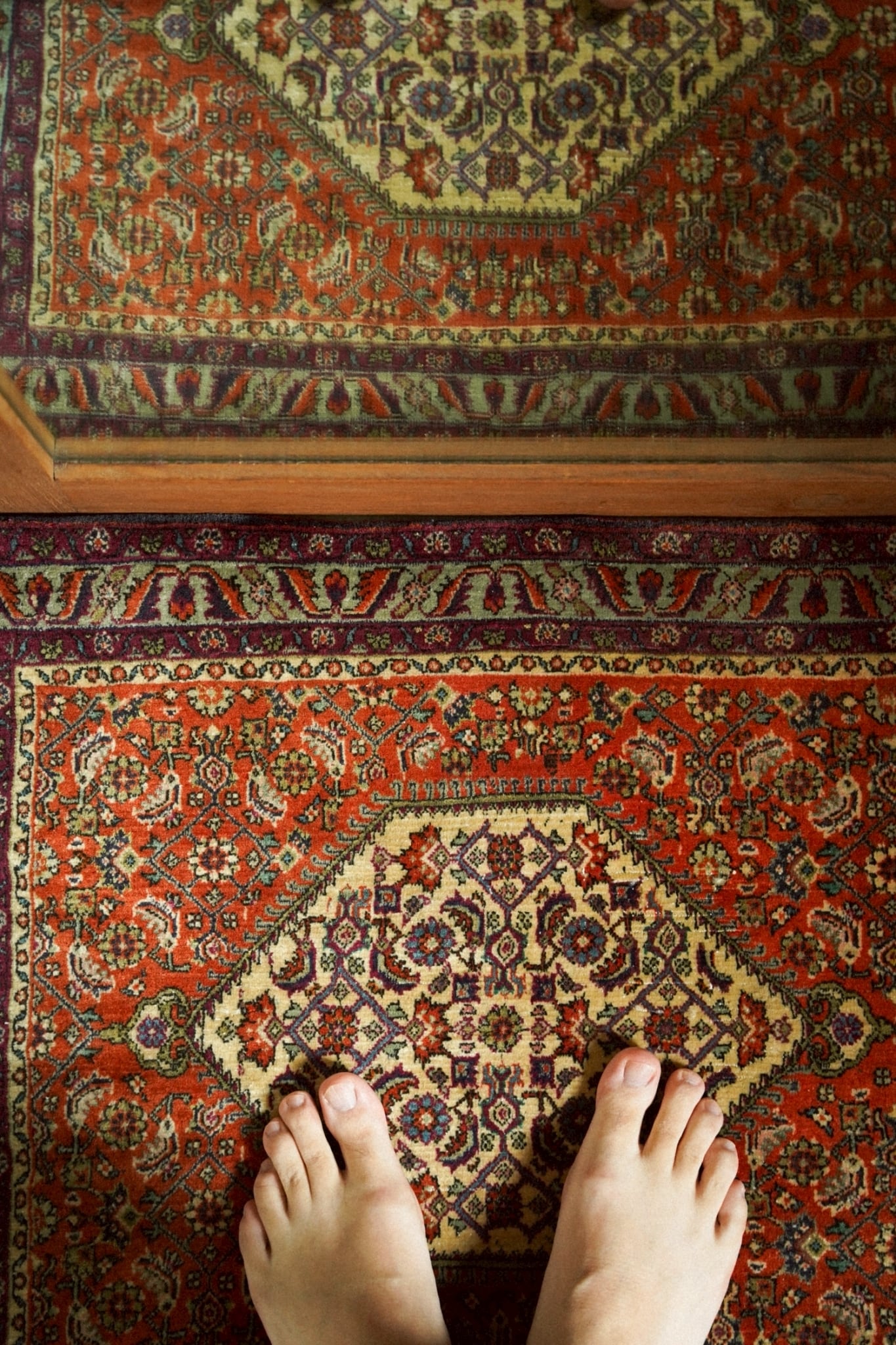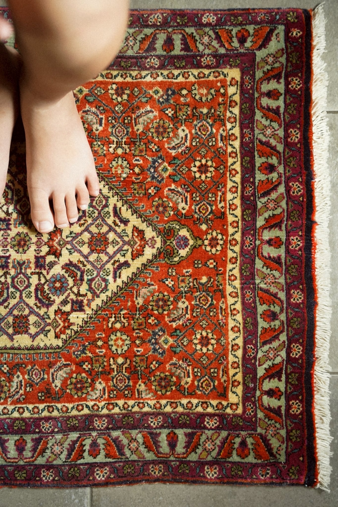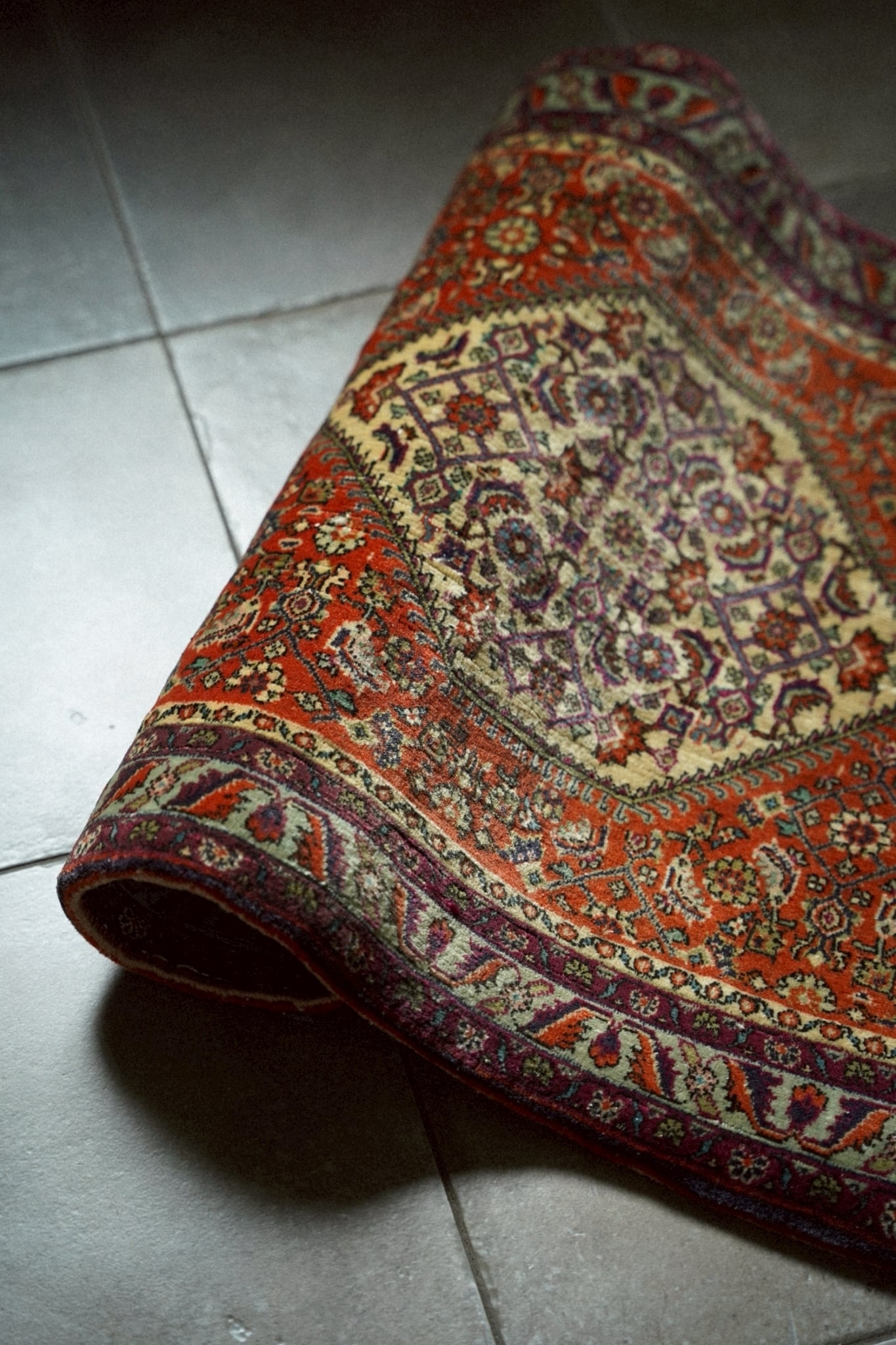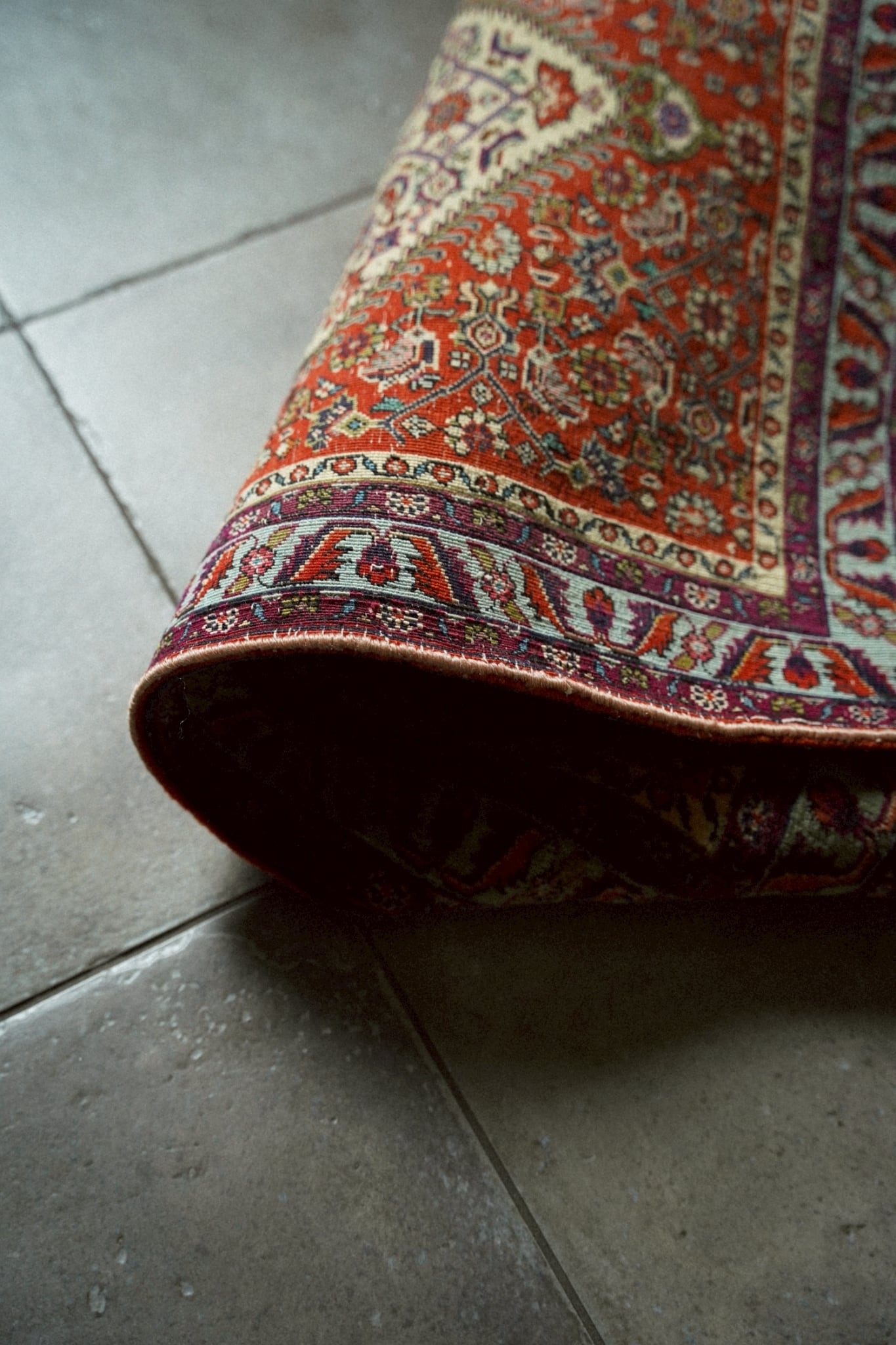 真ん中には華やかな雰囲気のメダリオン、朱赤のフィールドには美しい色彩で表現されたヘラティ文様が描かれています。