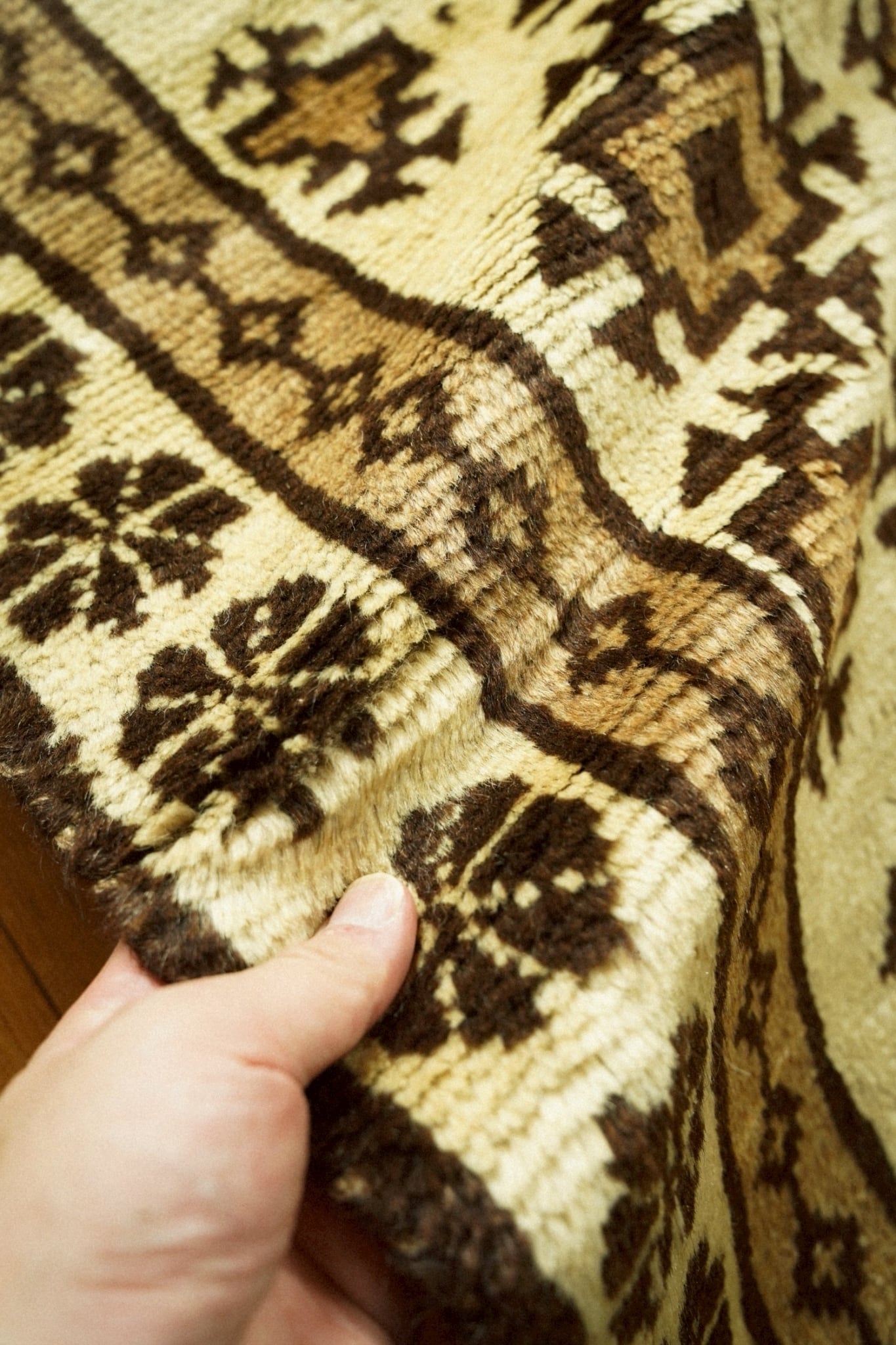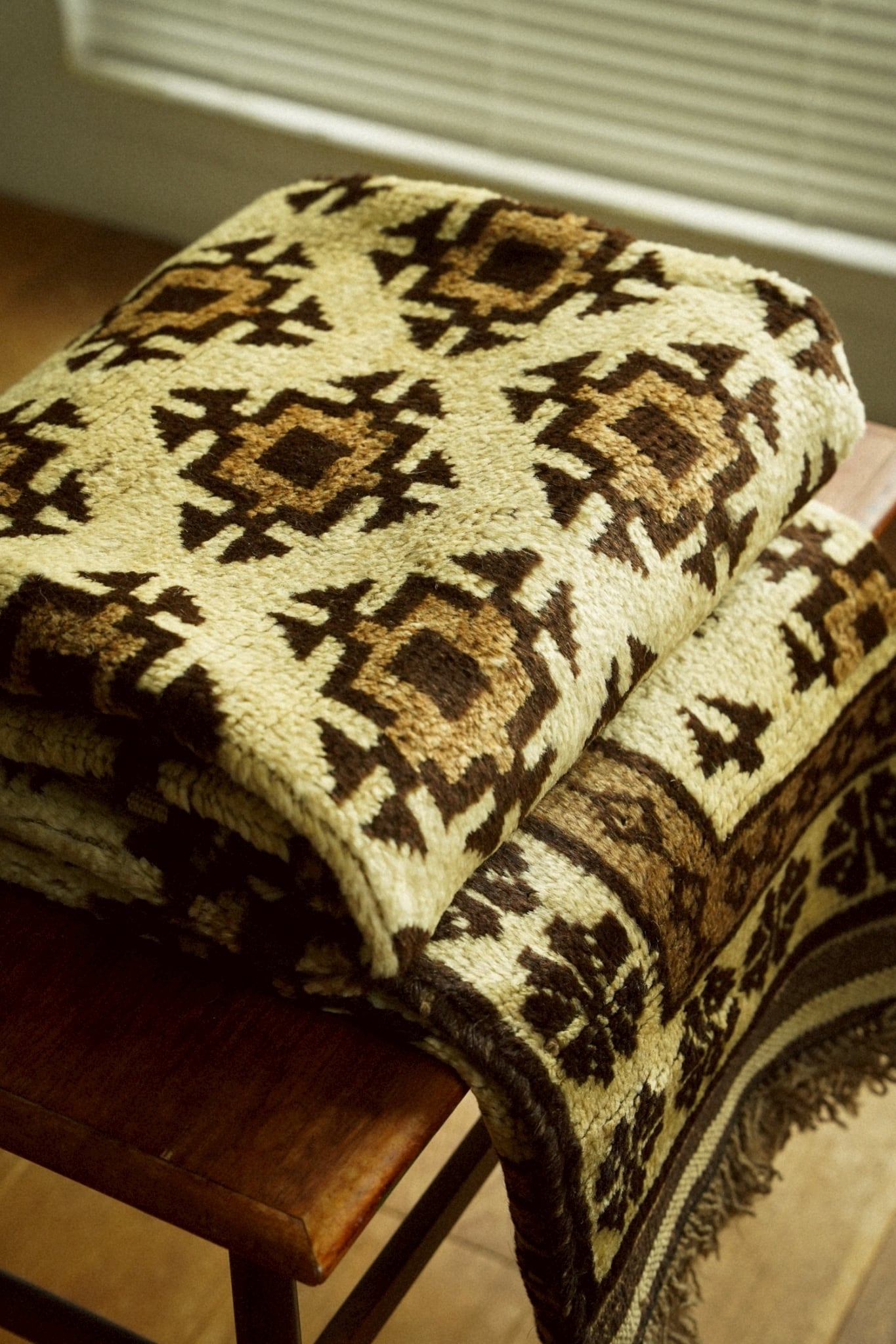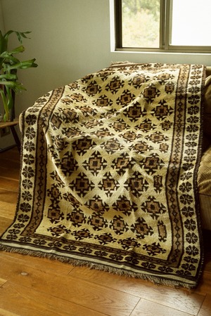 山岳地帯を遊牧しながら厳しい環境で生活するタイマニ族が織ったラグは秋冬にぴったりなフカフカで温かいラグ。