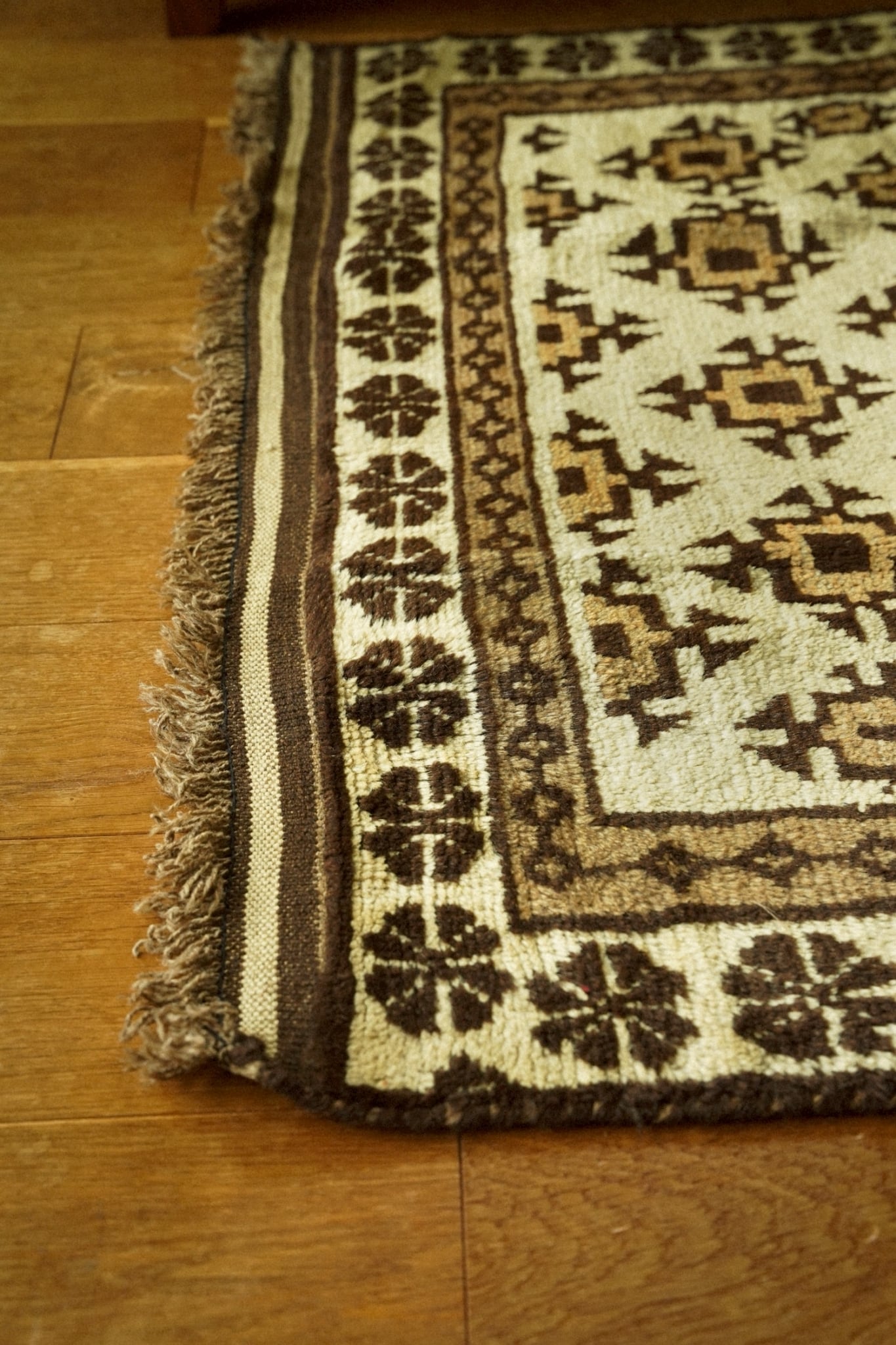 染色していない原毛色のウールで織られたタイマニラグ。