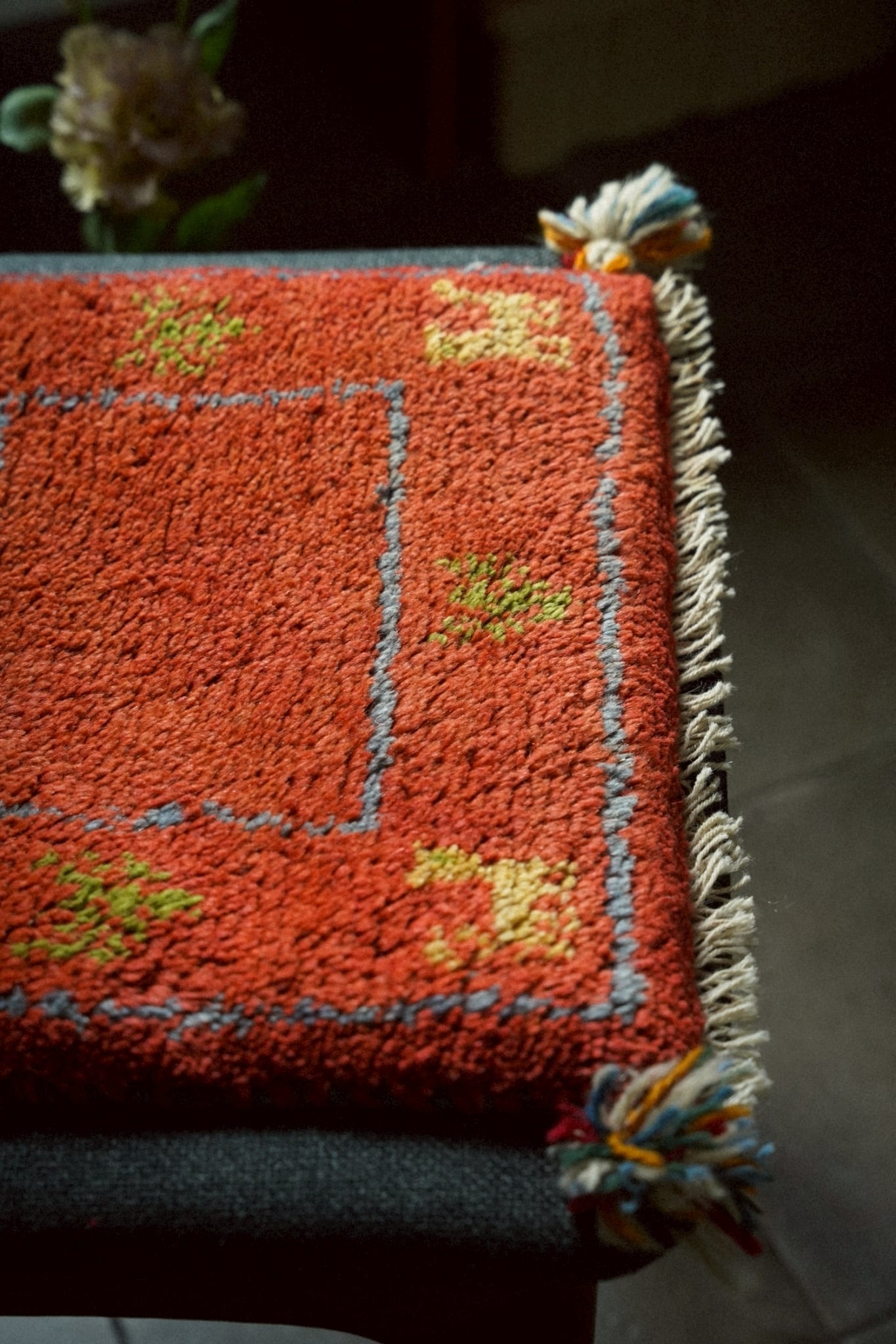 ギャッベの特徴でもあるしっかりとした毛足は厚みがあり、直接座ってもフカフカで気持ち良いです。