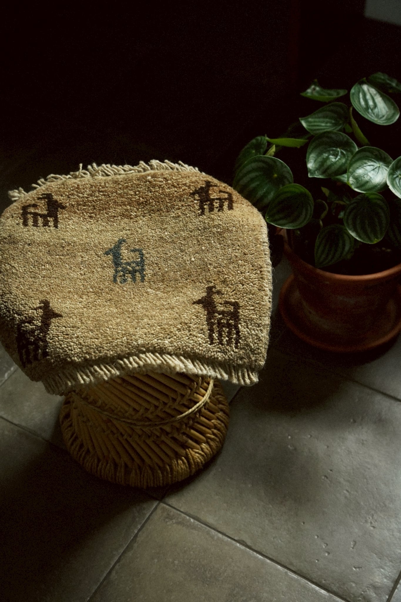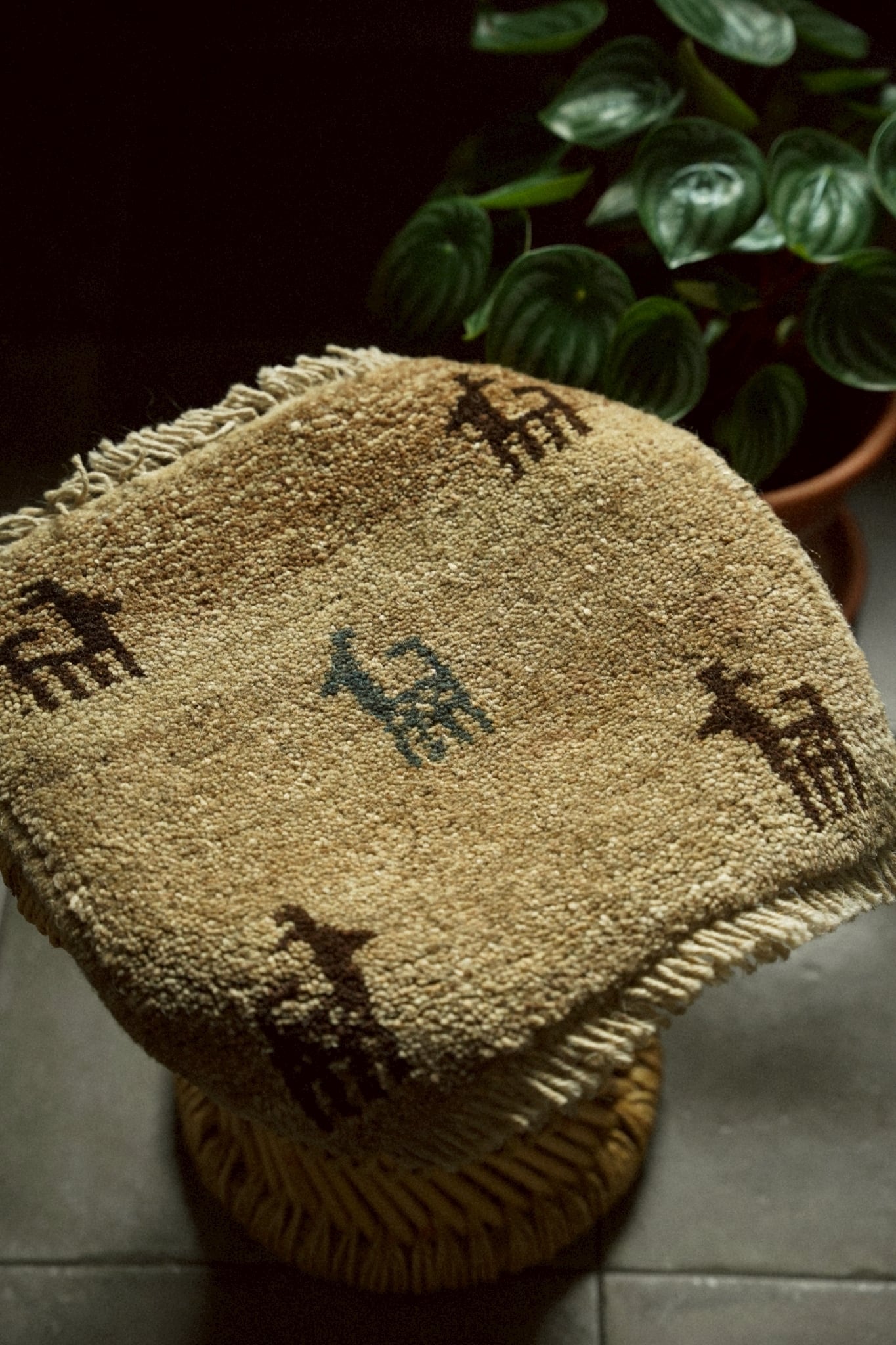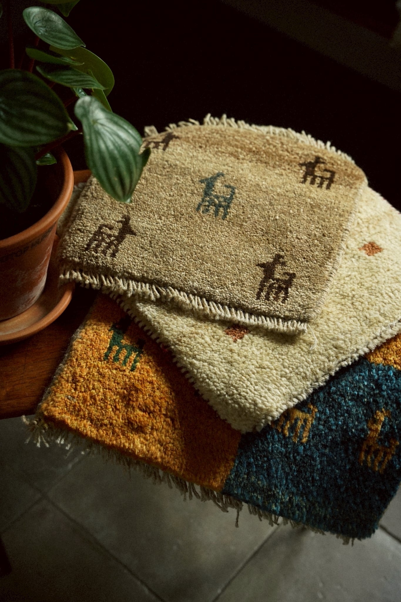 ギャッベの特徴でもあるしっかりとした毛足は厚みがあり、直接座ってもフカフカで気持ち良いです。