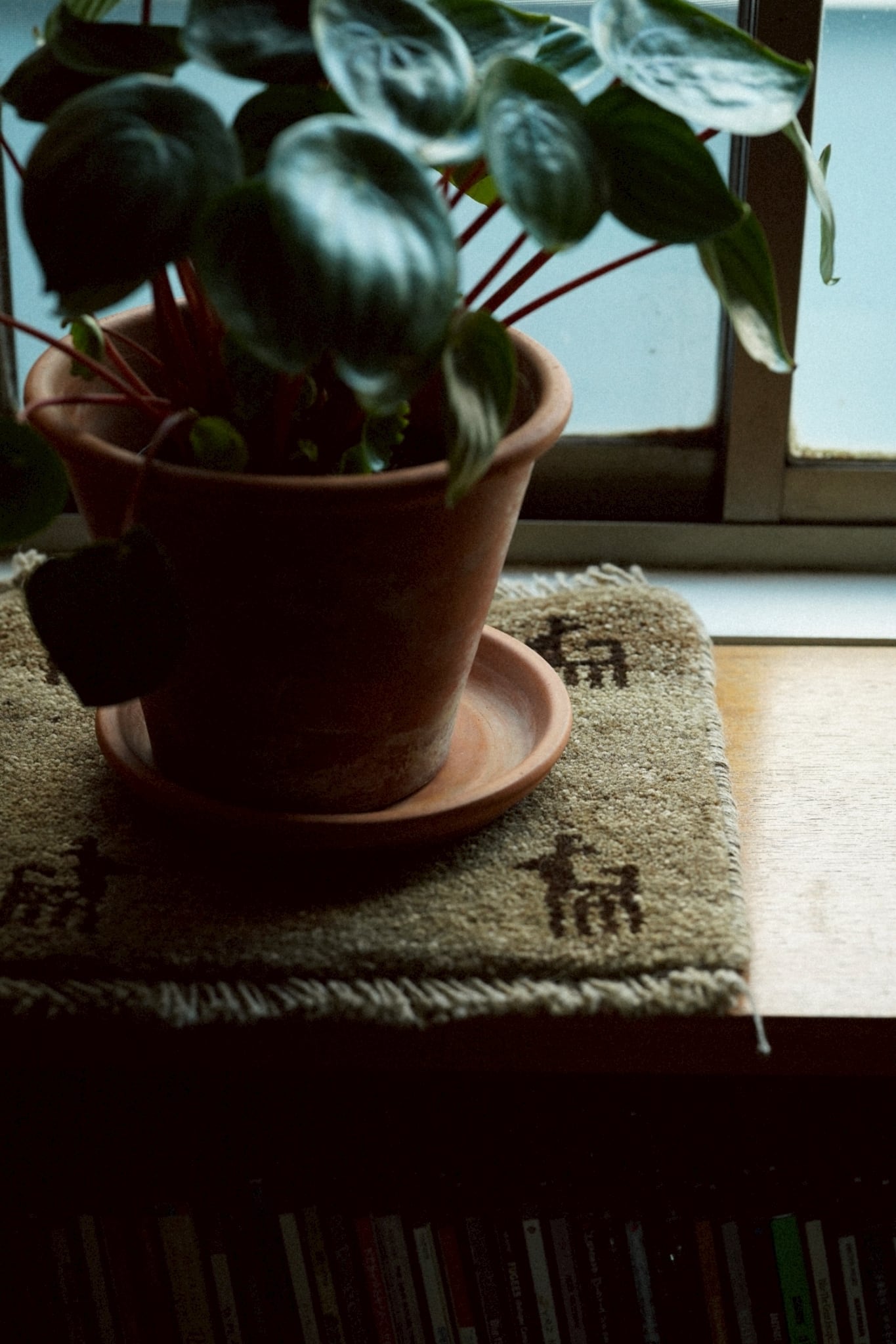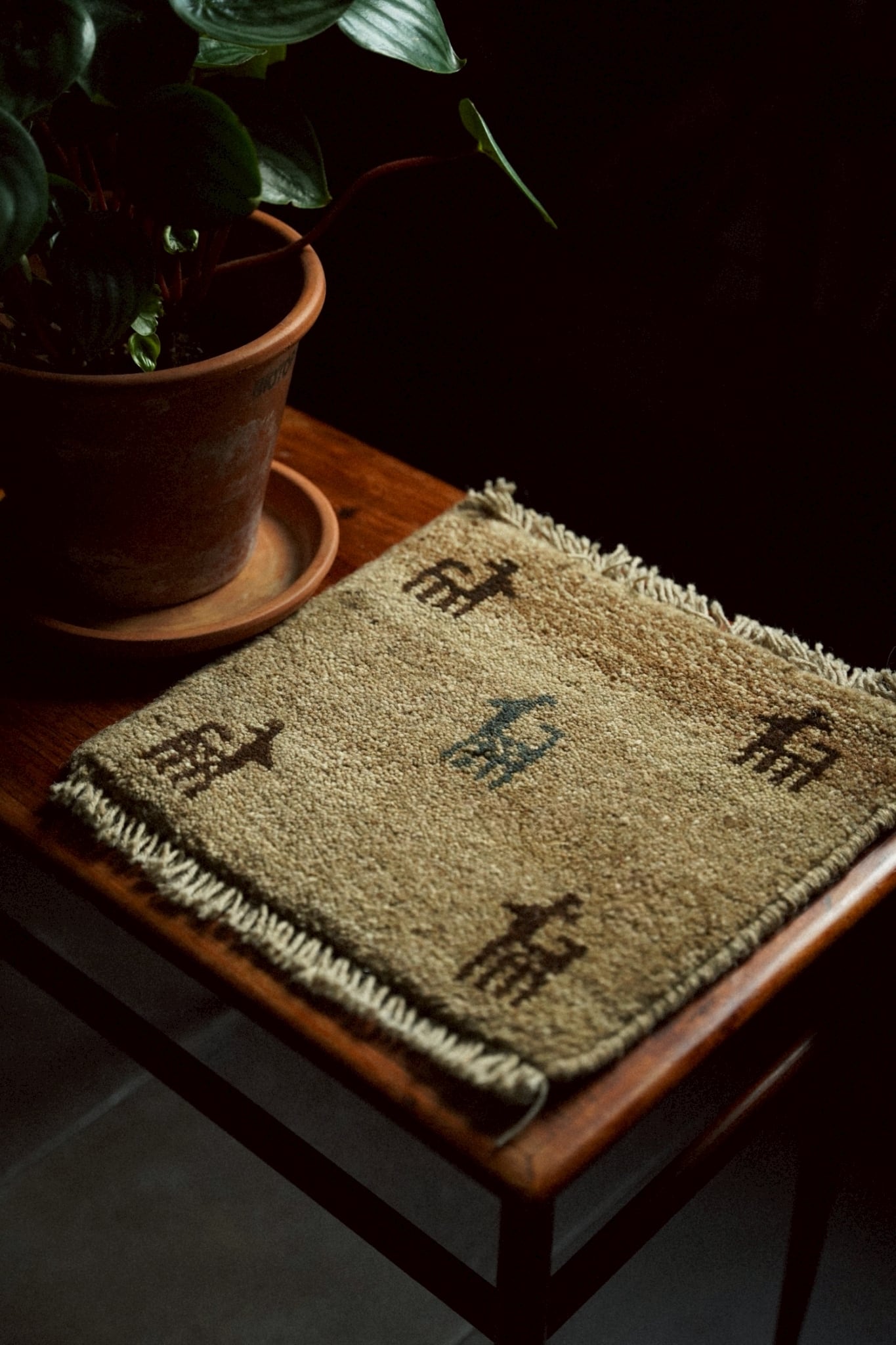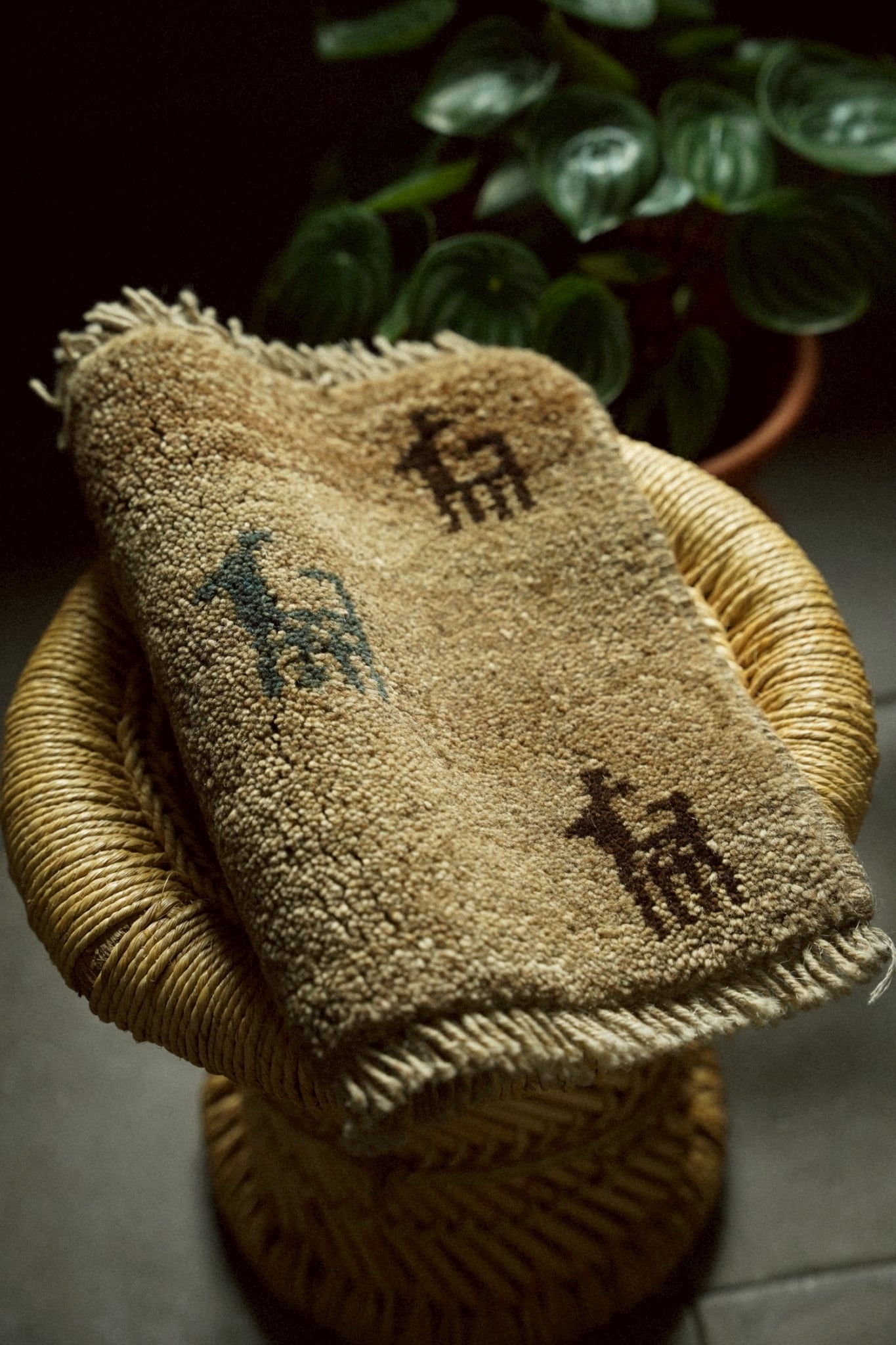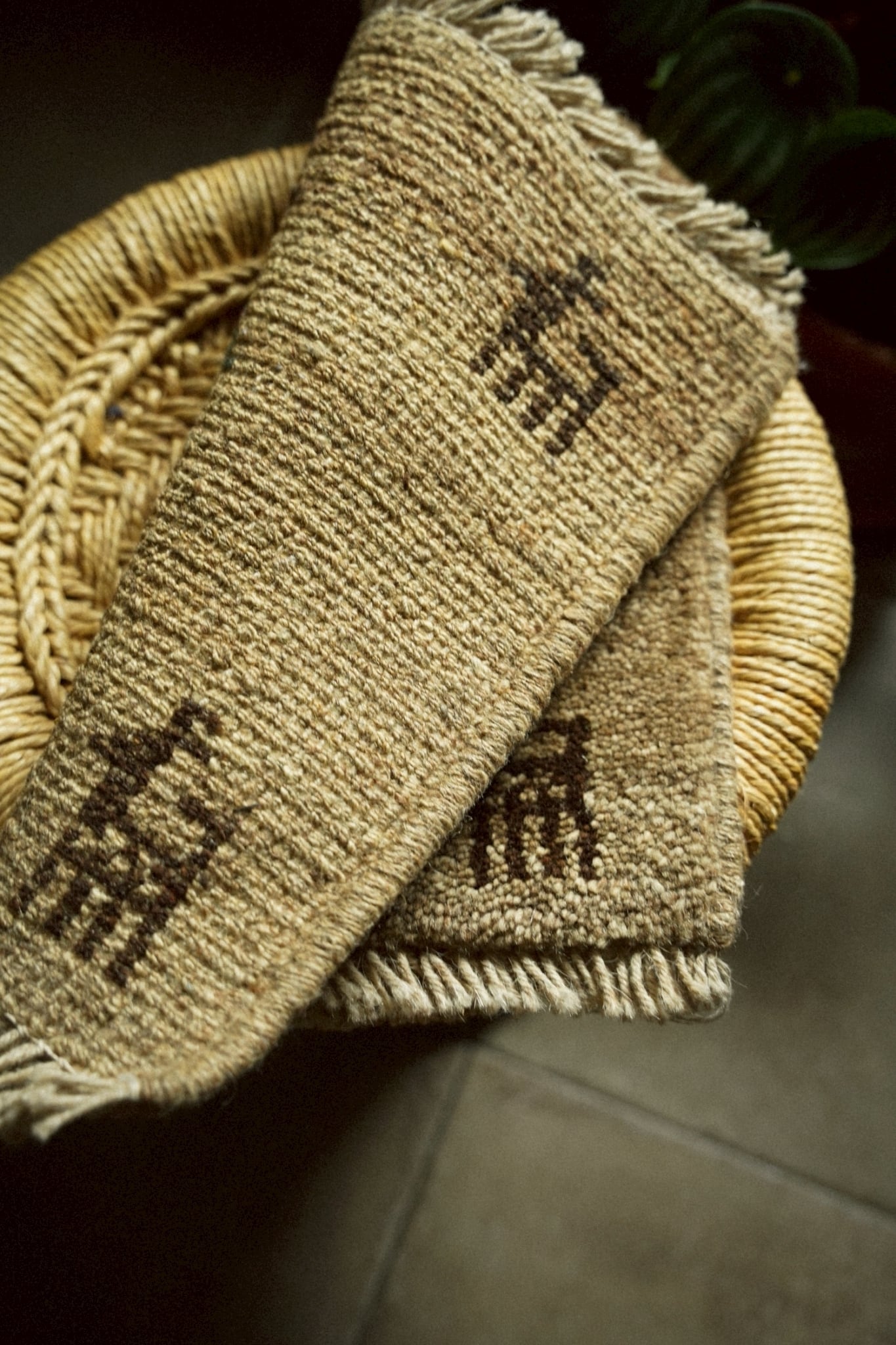 ナチュラルな色合いと素朴なデザインの組み合わせはシンプルながらも手仕事の温かみを感じることができる魅力的な一枚。