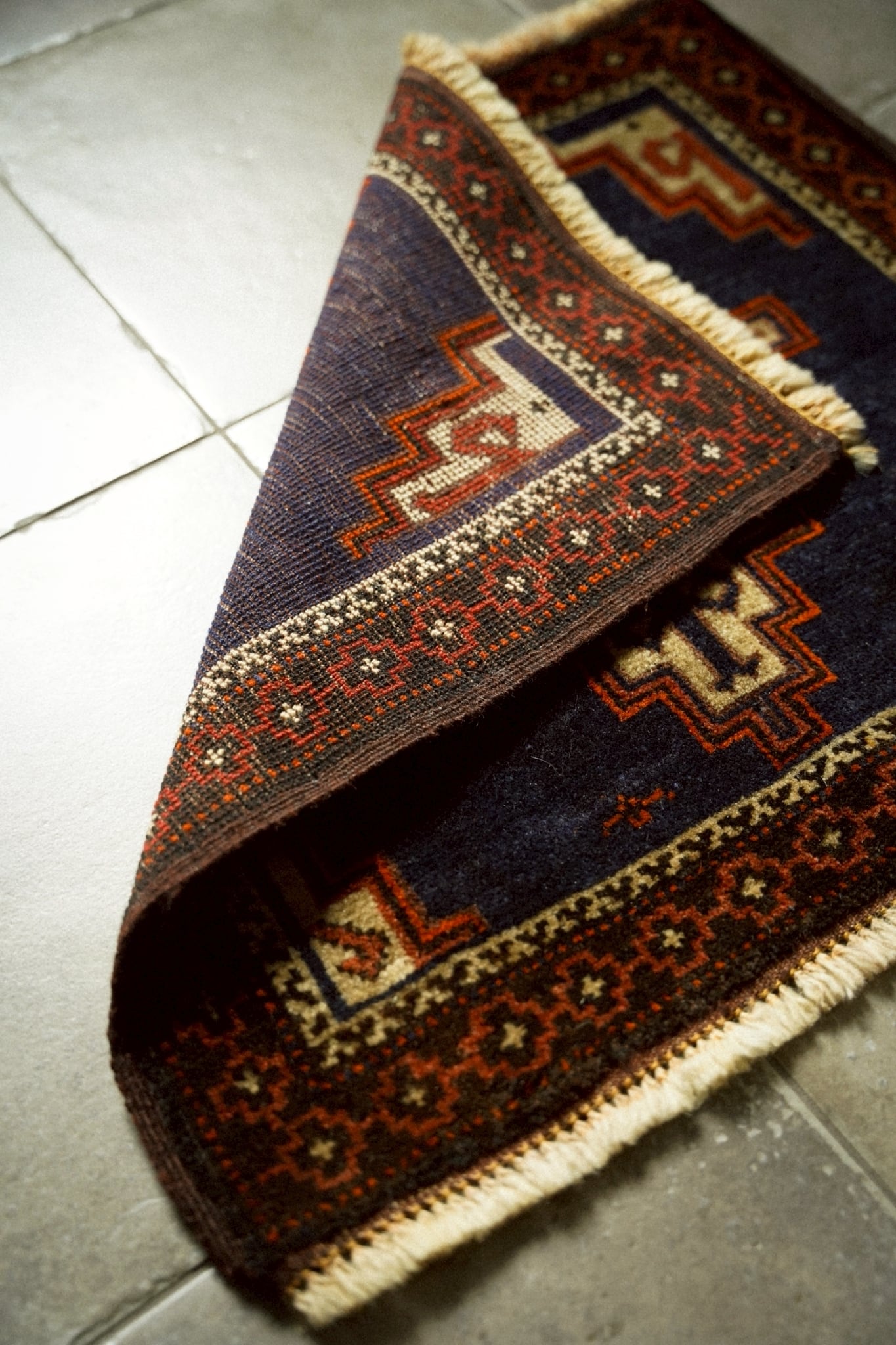 1980年代に織られたバルーチのサドルバッグのバッグフェイスをミニラグに仕立ててもらいました。