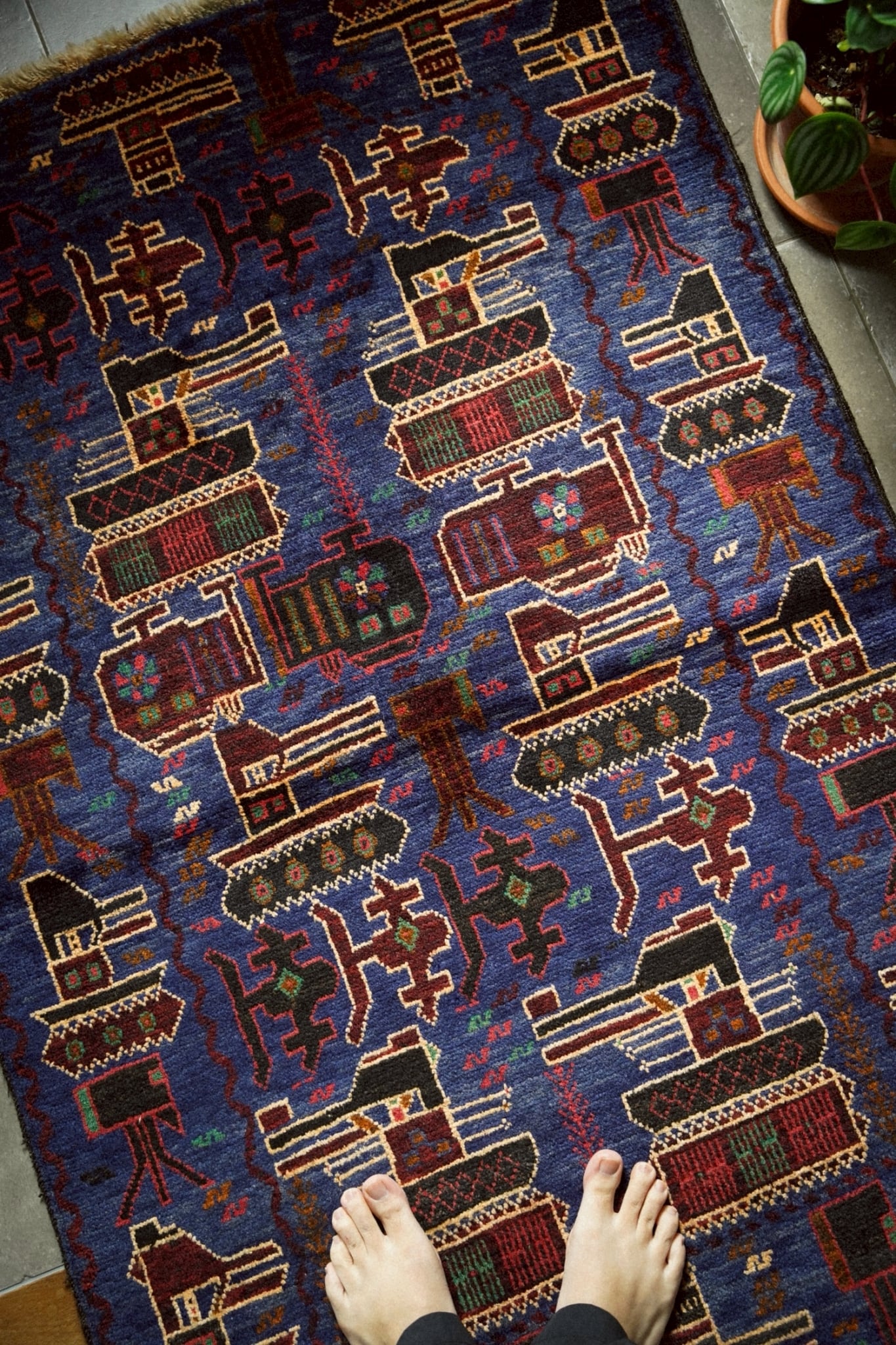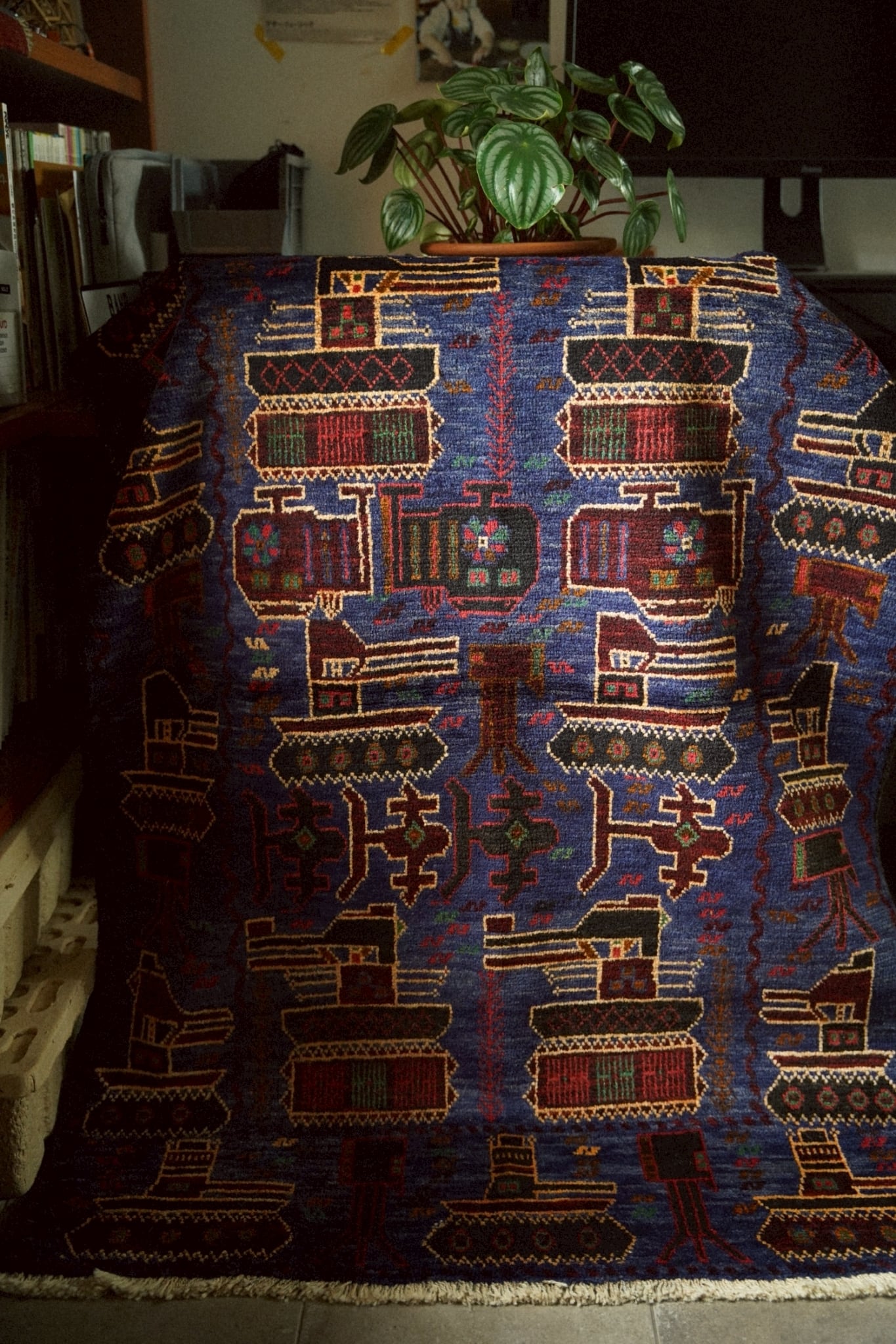 「War Rug」と呼ばれる戦争をモチーフにして織られたラグです。