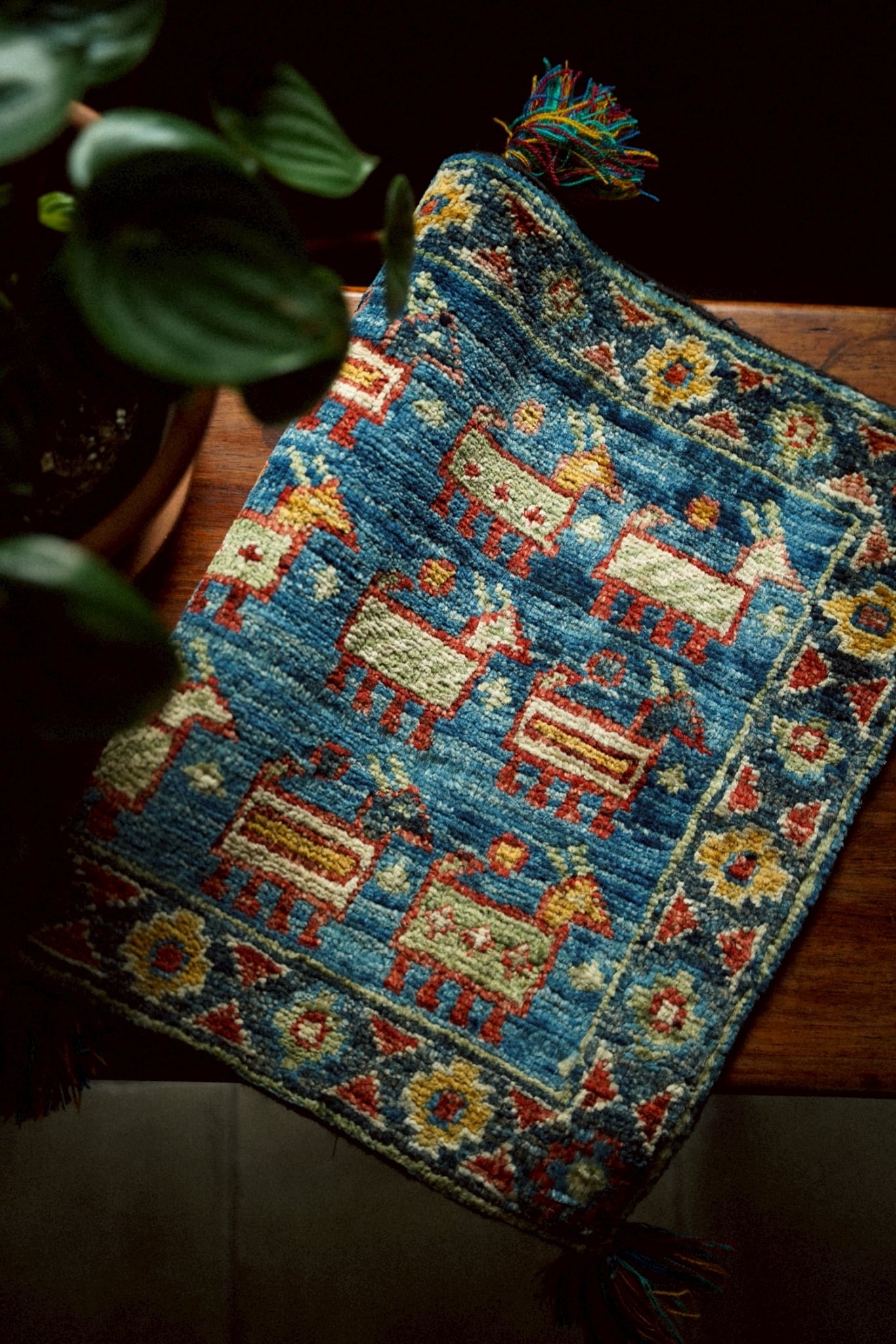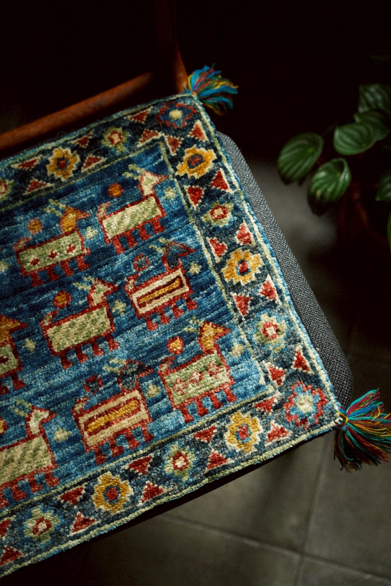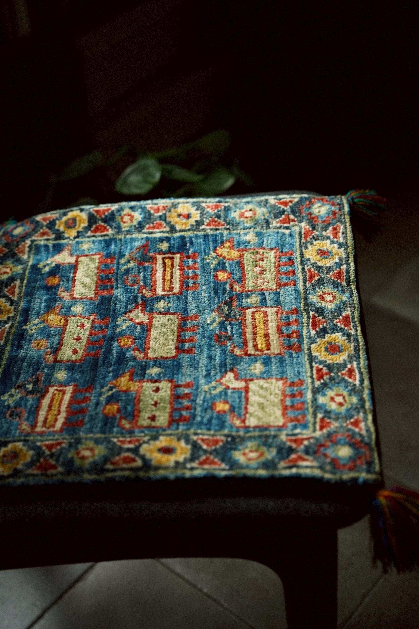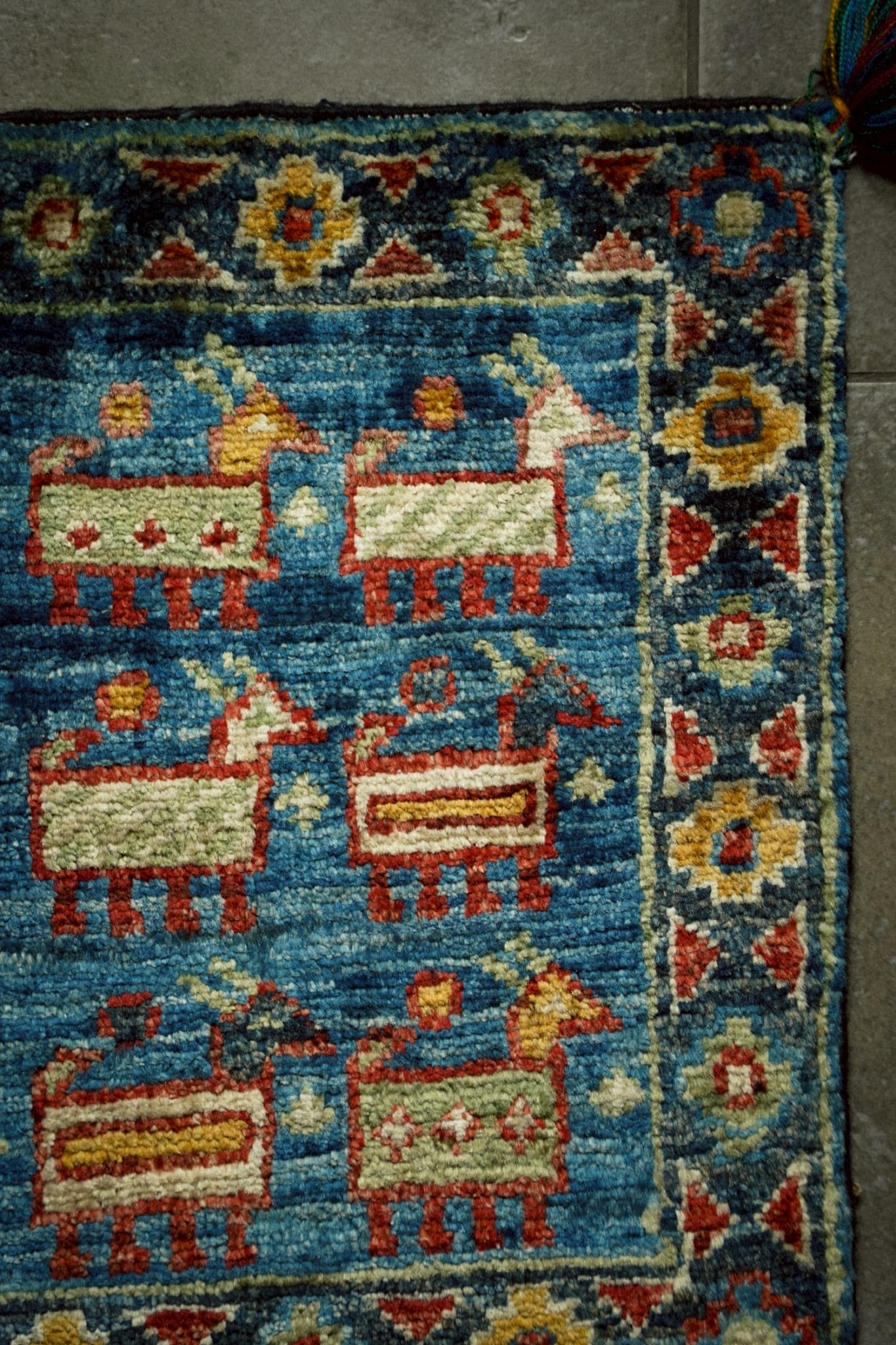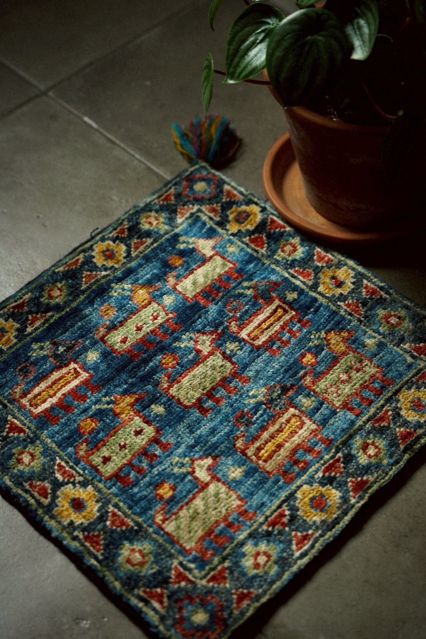 1960年代にバルーチ族によって織られた座布団サイズのミニラグ。