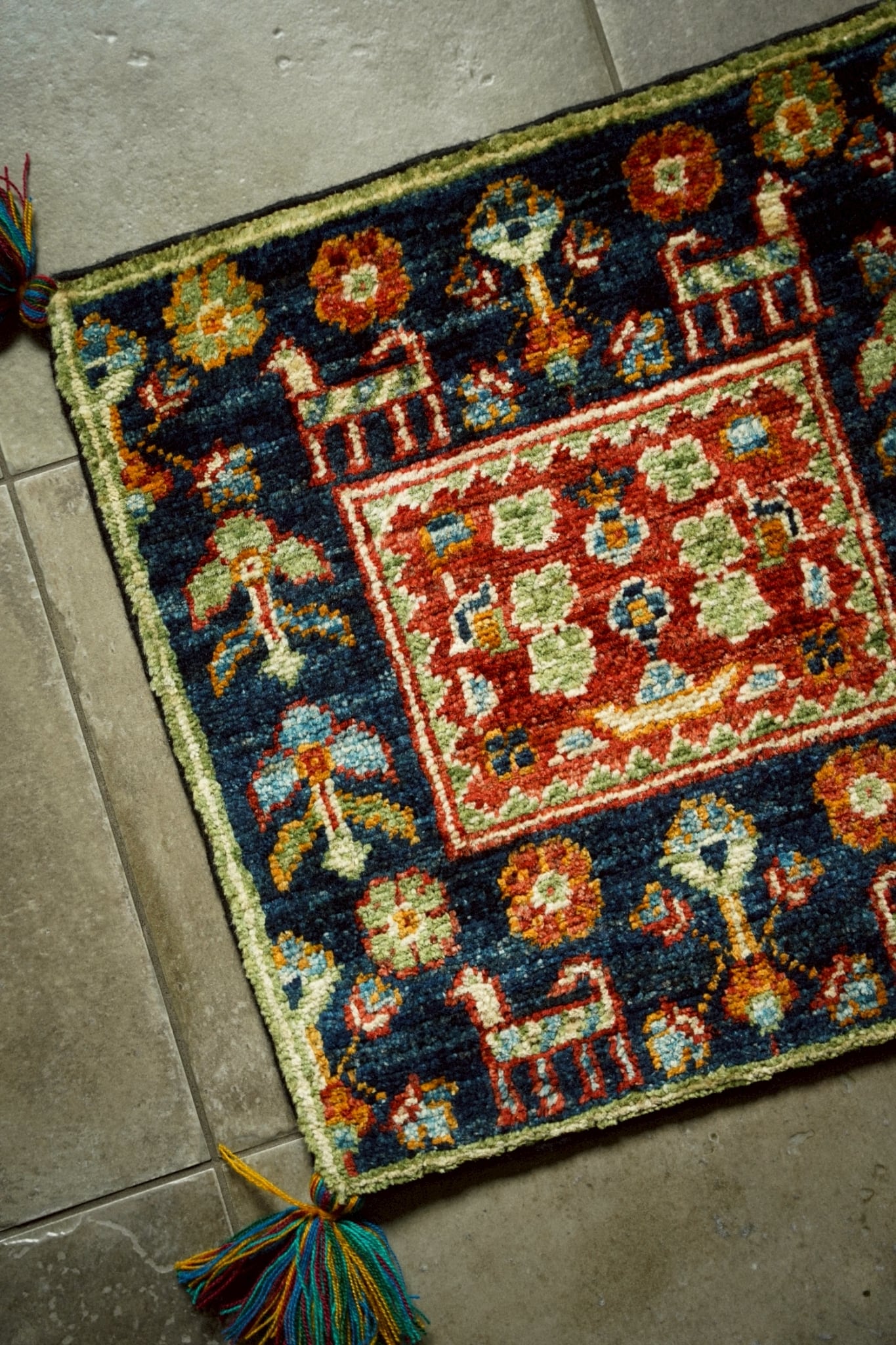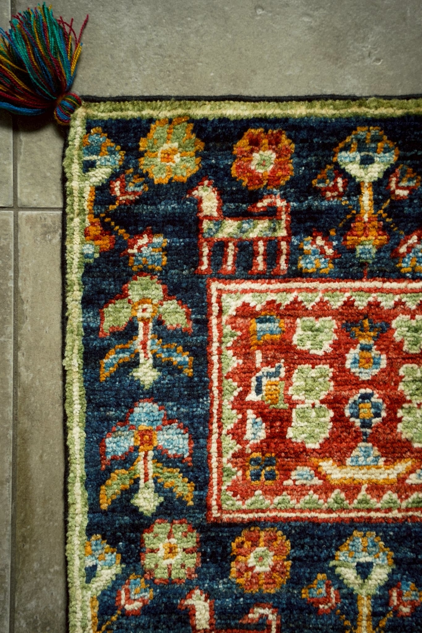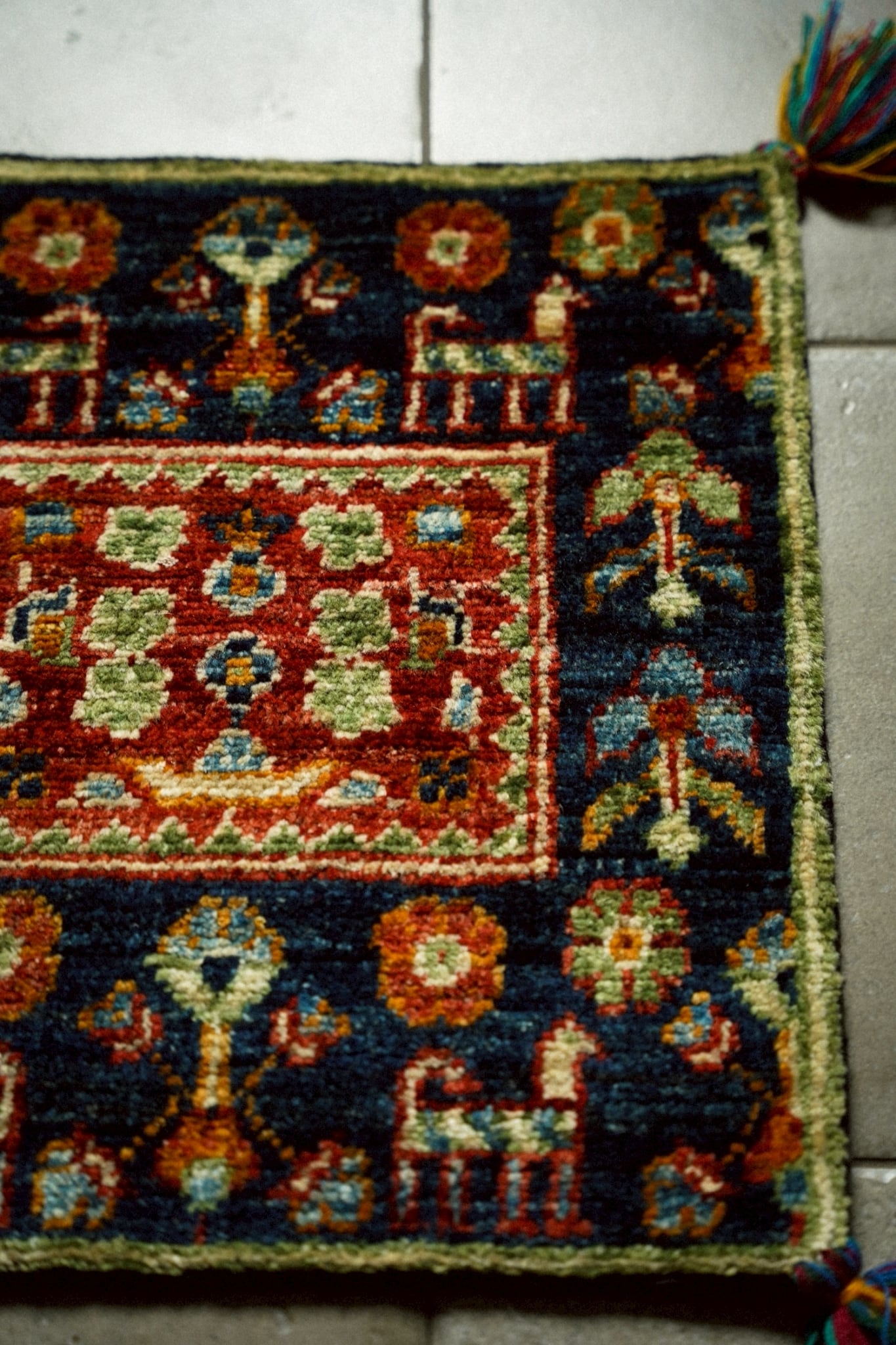 四隅のカラフルなタッセルも可愛らしいですね♪パイルは綺麗に残っておりグッドコンディション。