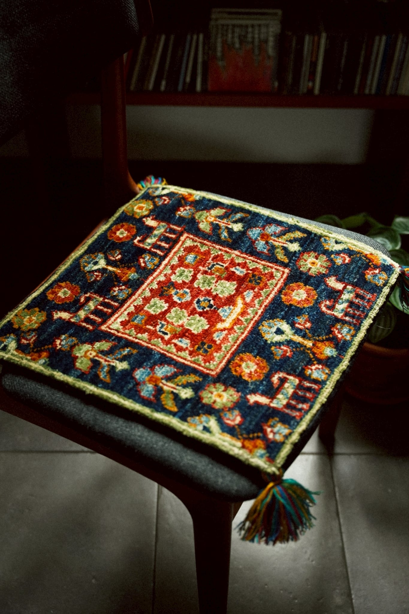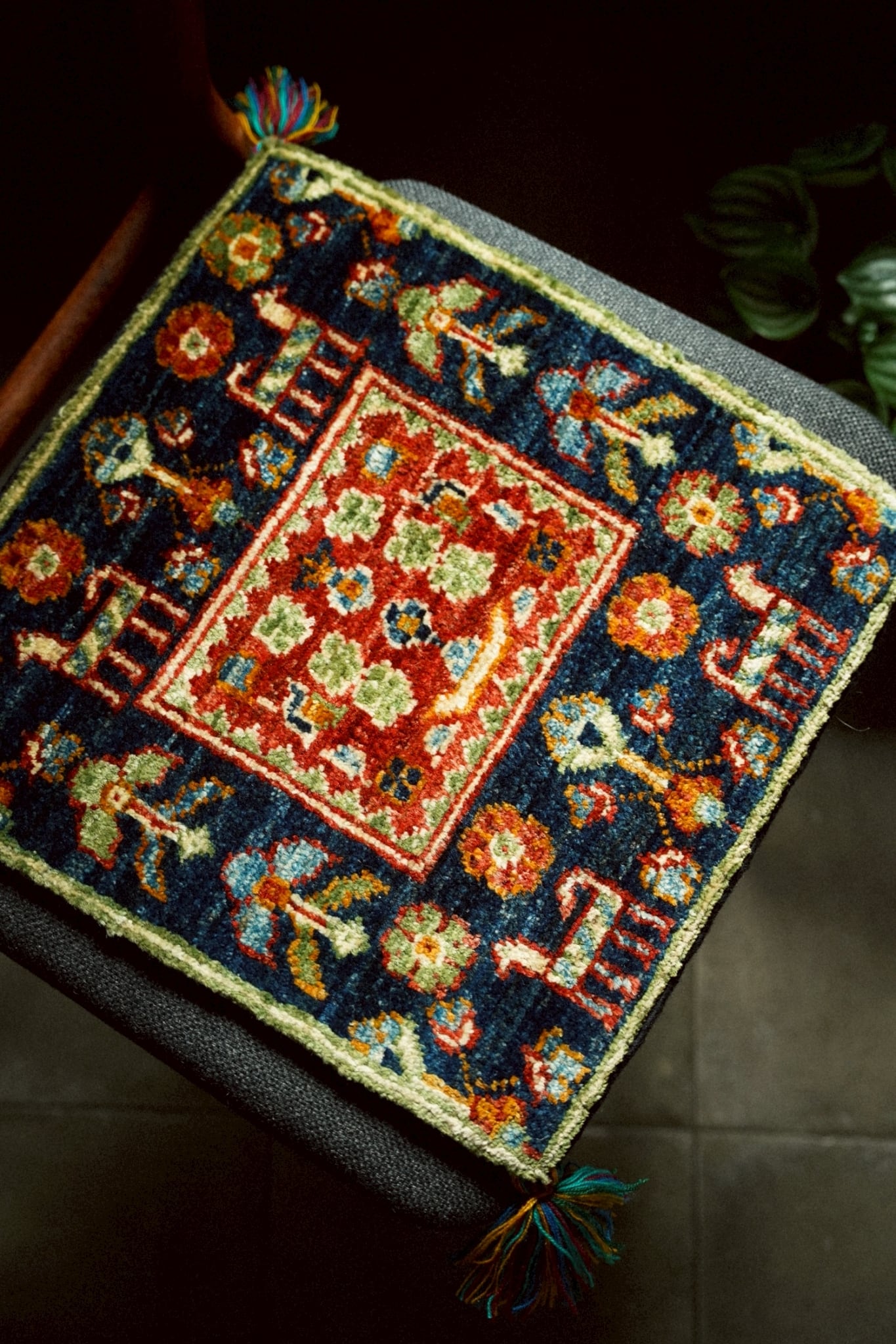1960年代にバルーチ族によって織られた座布団サイズのミニラグ。