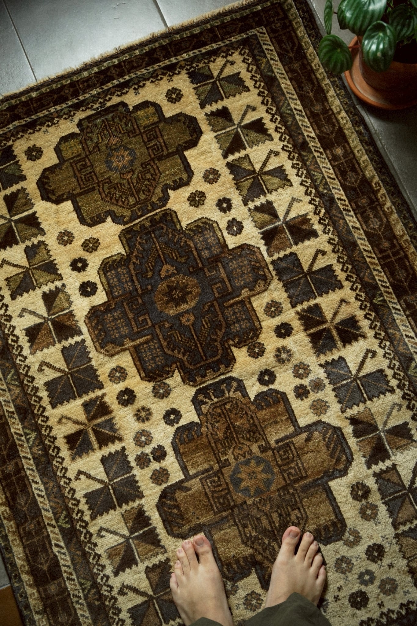経年30年程のアフガニスタン産のバルーチラグ。