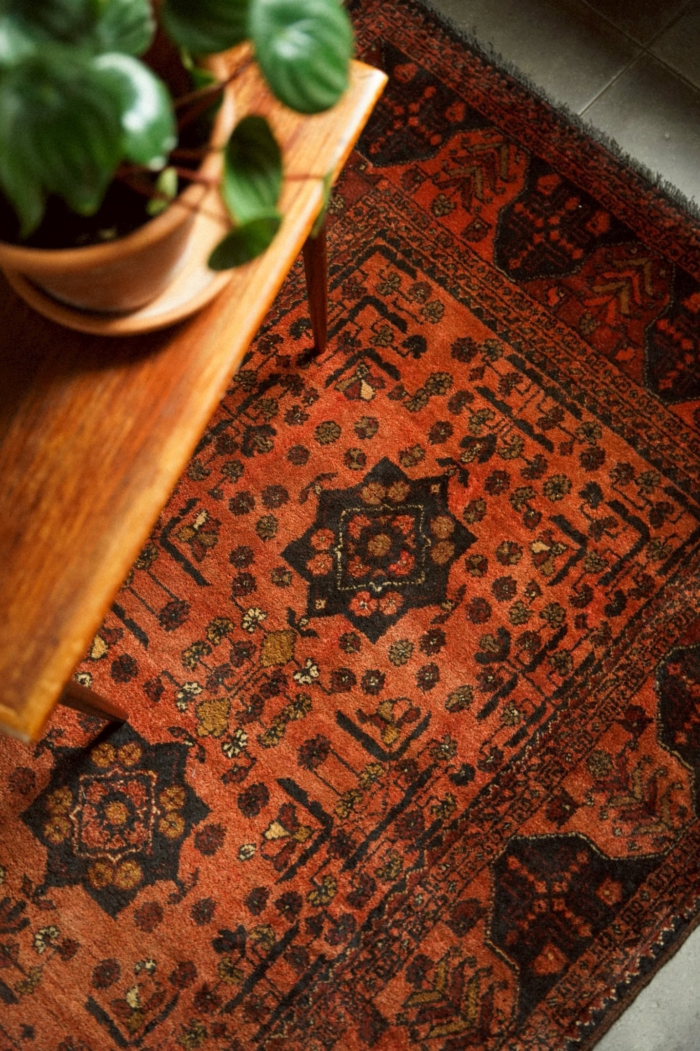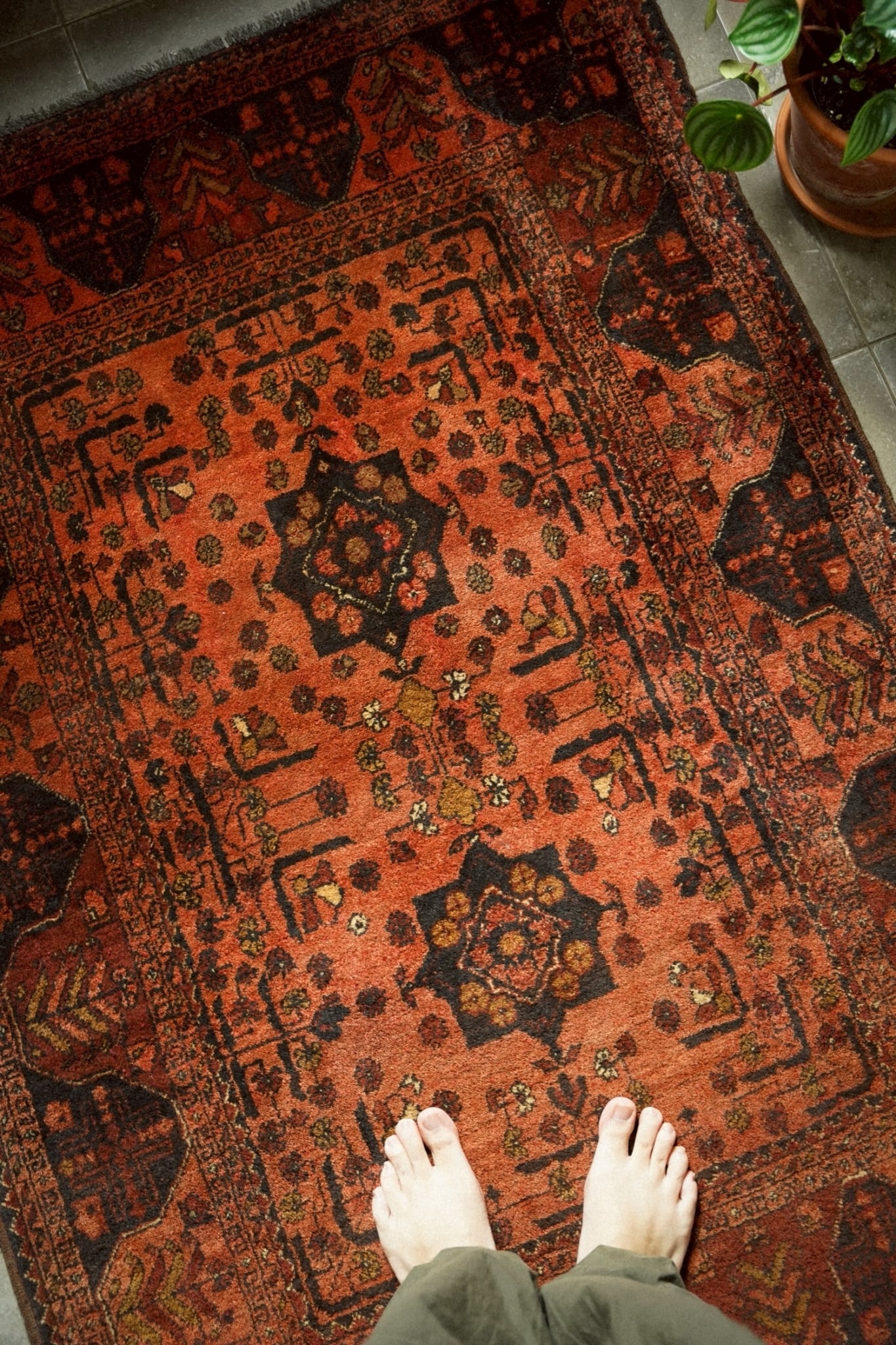 トルクメン族によって織られた「Khoja Roshnaye 」デザインのラグ。