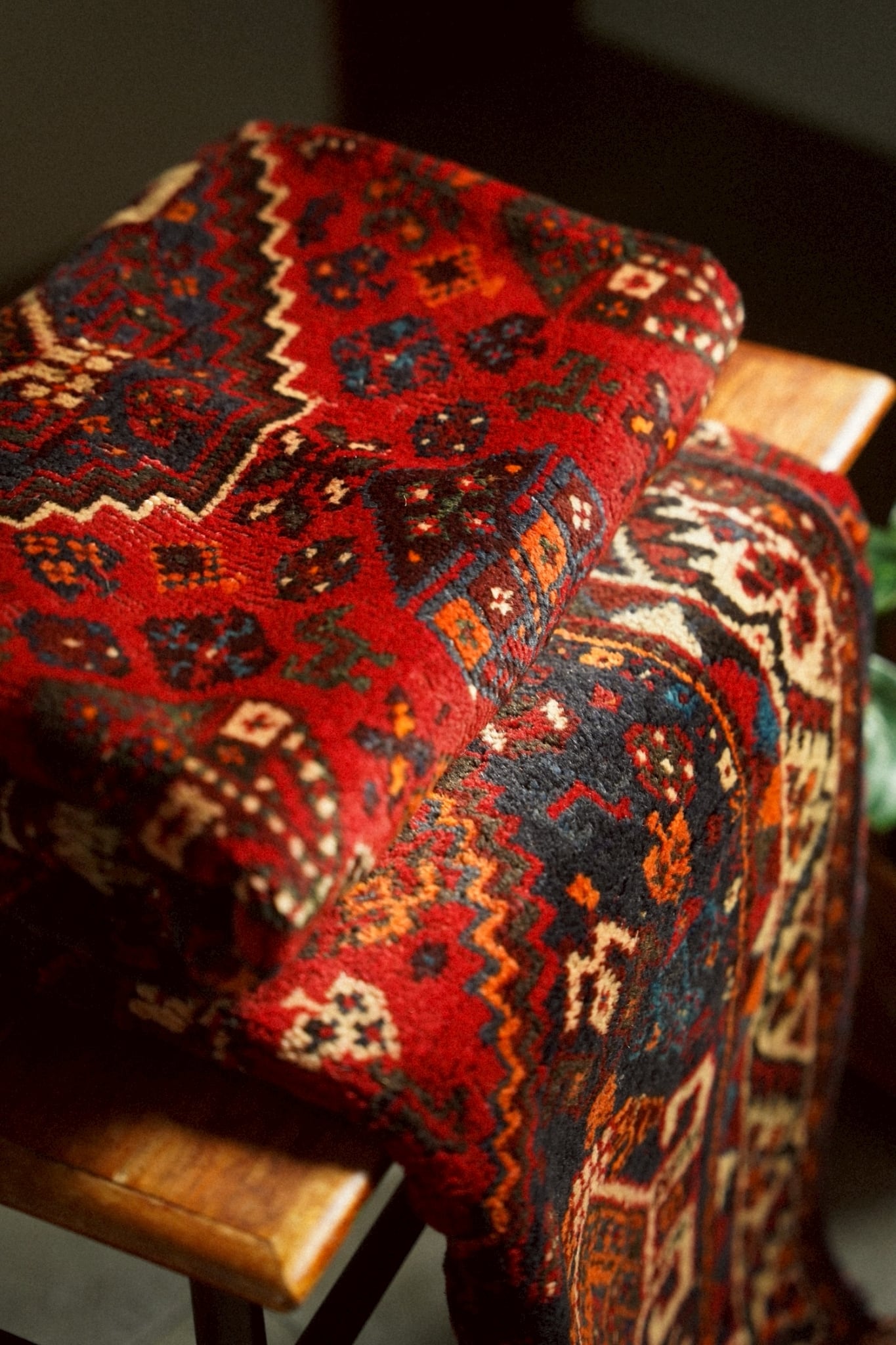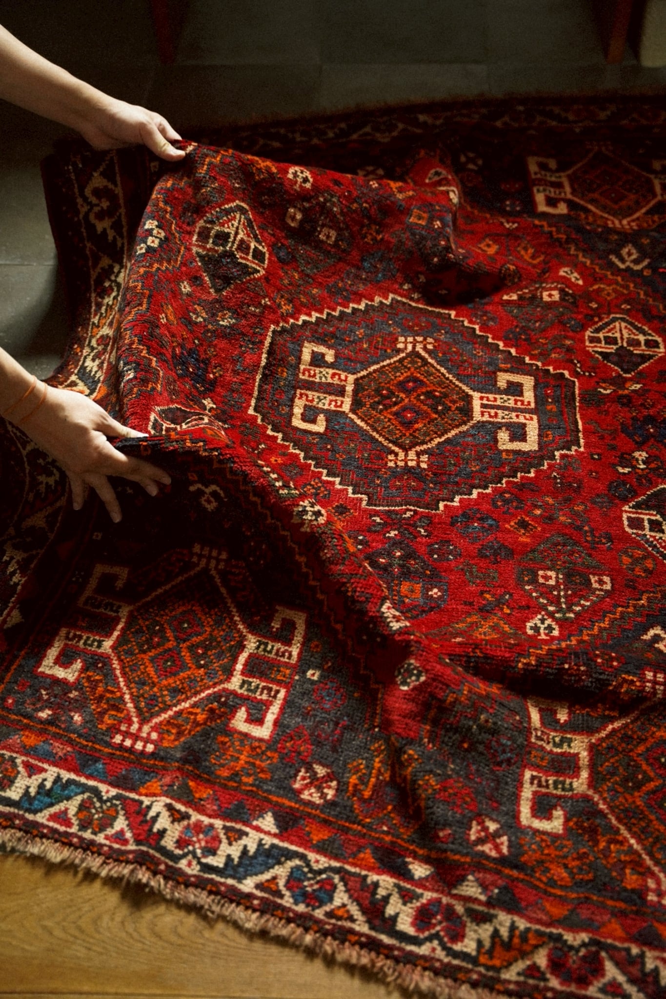 華やかな雰囲気になる赤系のカシュガイラグはお部屋の主役にもアクセントにもピッタリな一枚。