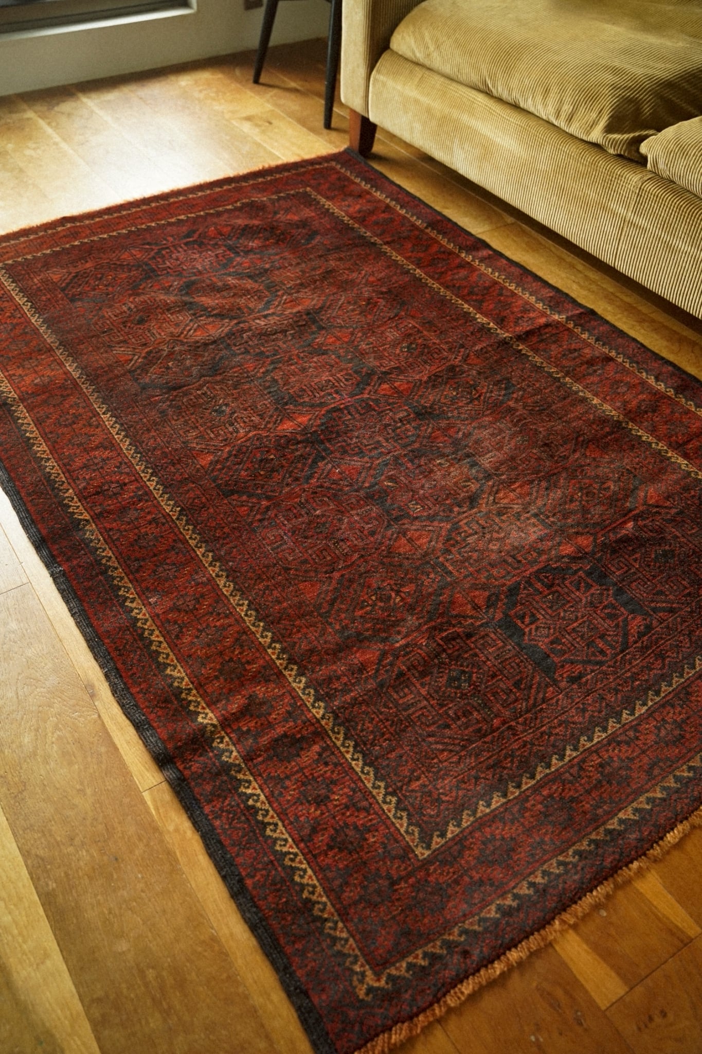 1980年代にバルーチ族によって織られたアフガニスタン産のYaqub Khani ラグ。