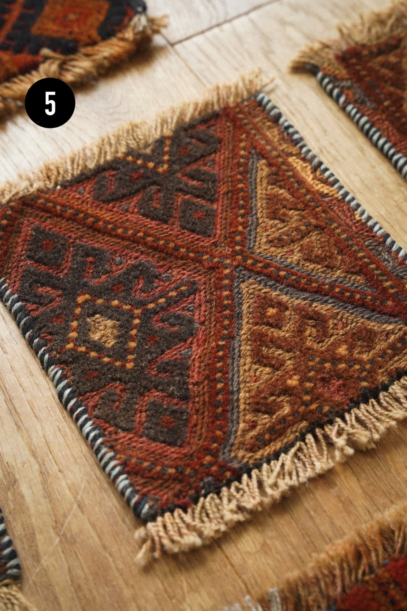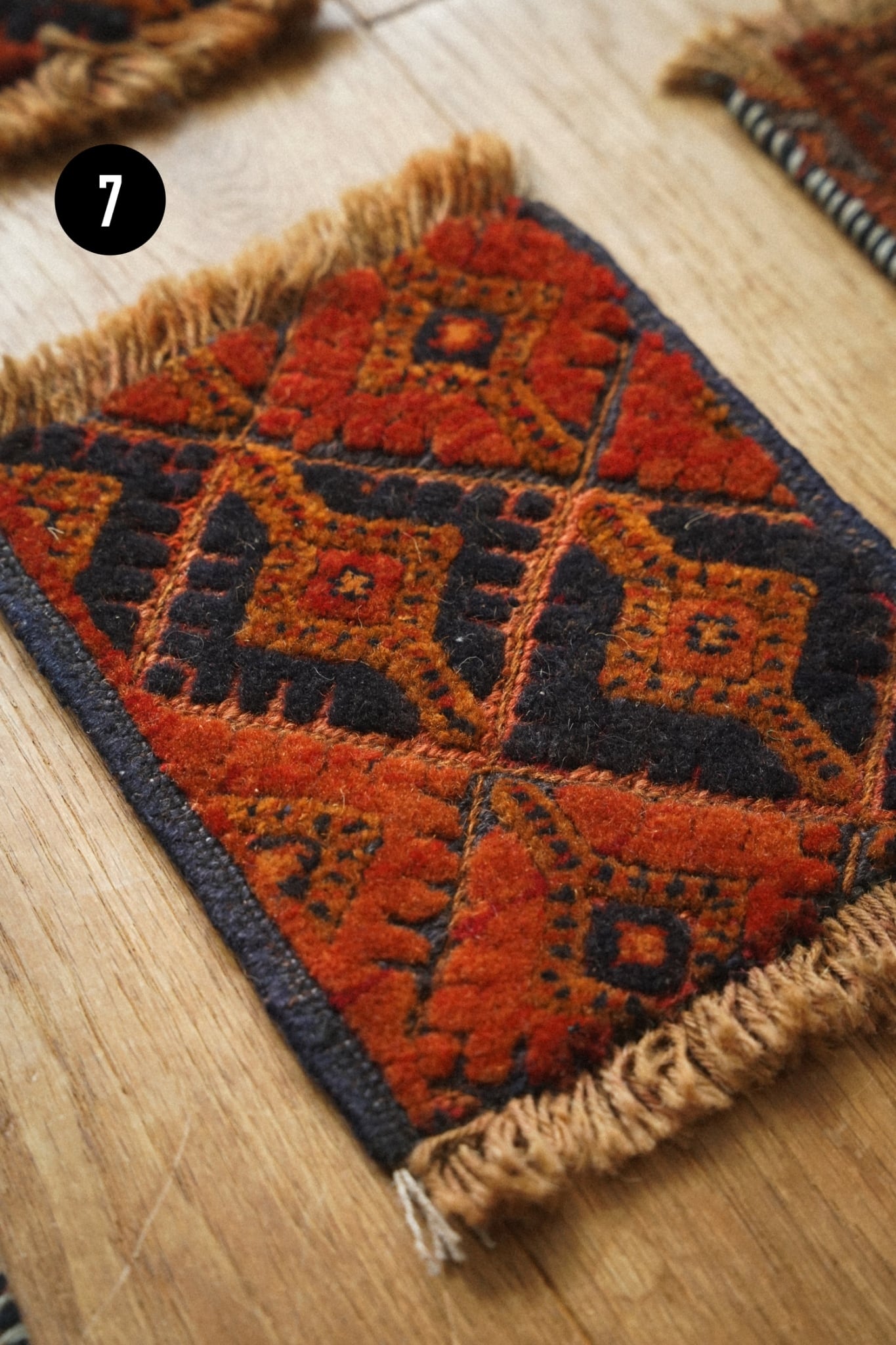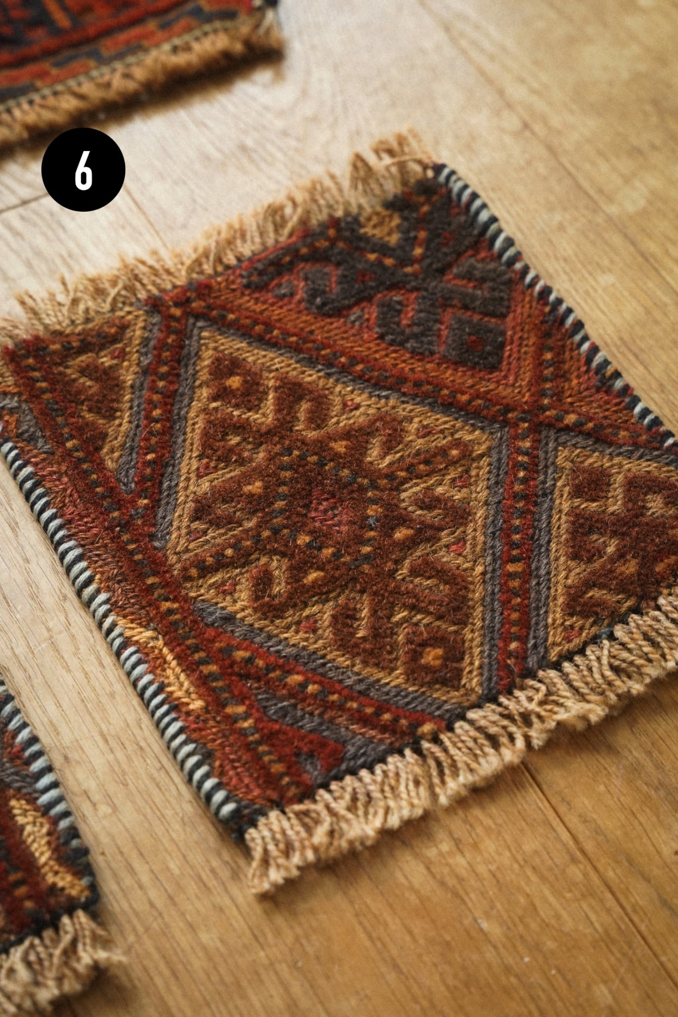 マシュワニラグを小さなコースターサイズに仕立てました。 小物を置いたり、植物の下に敷いたりと、色んな使い方を楽しめる一枚です。 玄関やサイドボードの上など、ちょっとしたスペースを彩るアクセントとしてもおすすめです。
