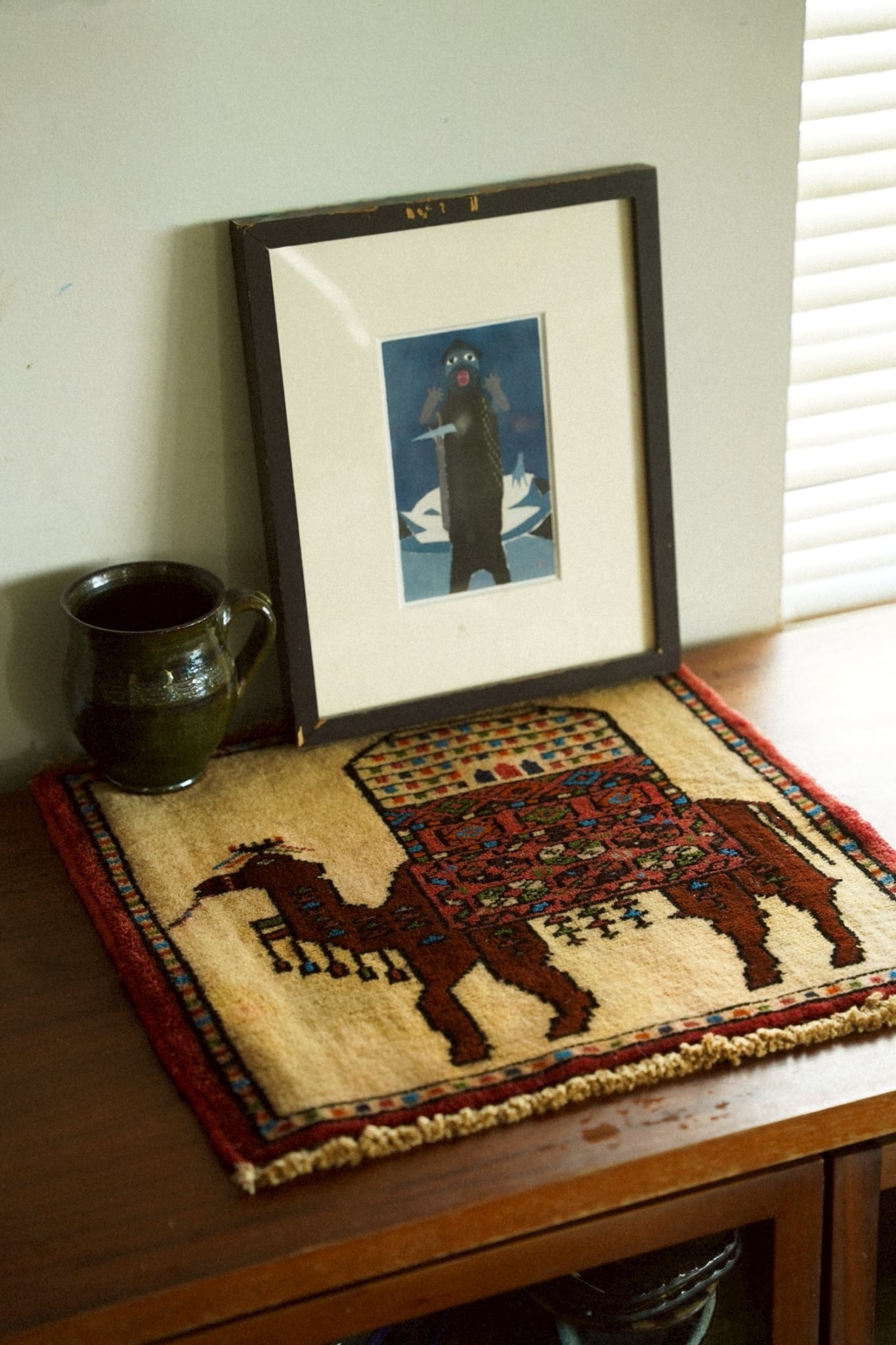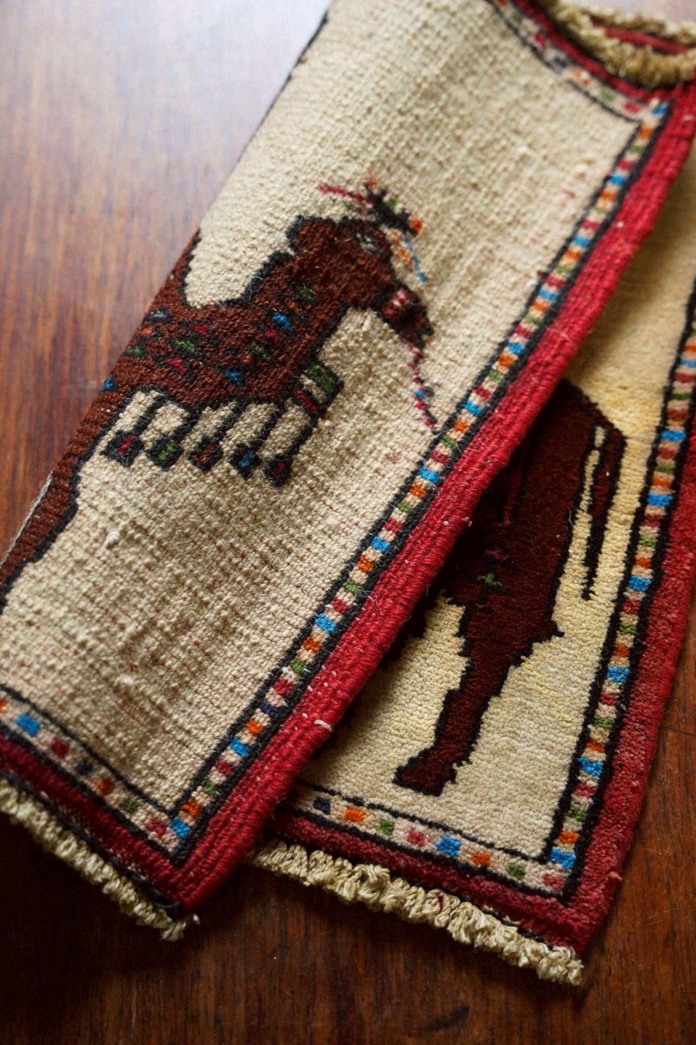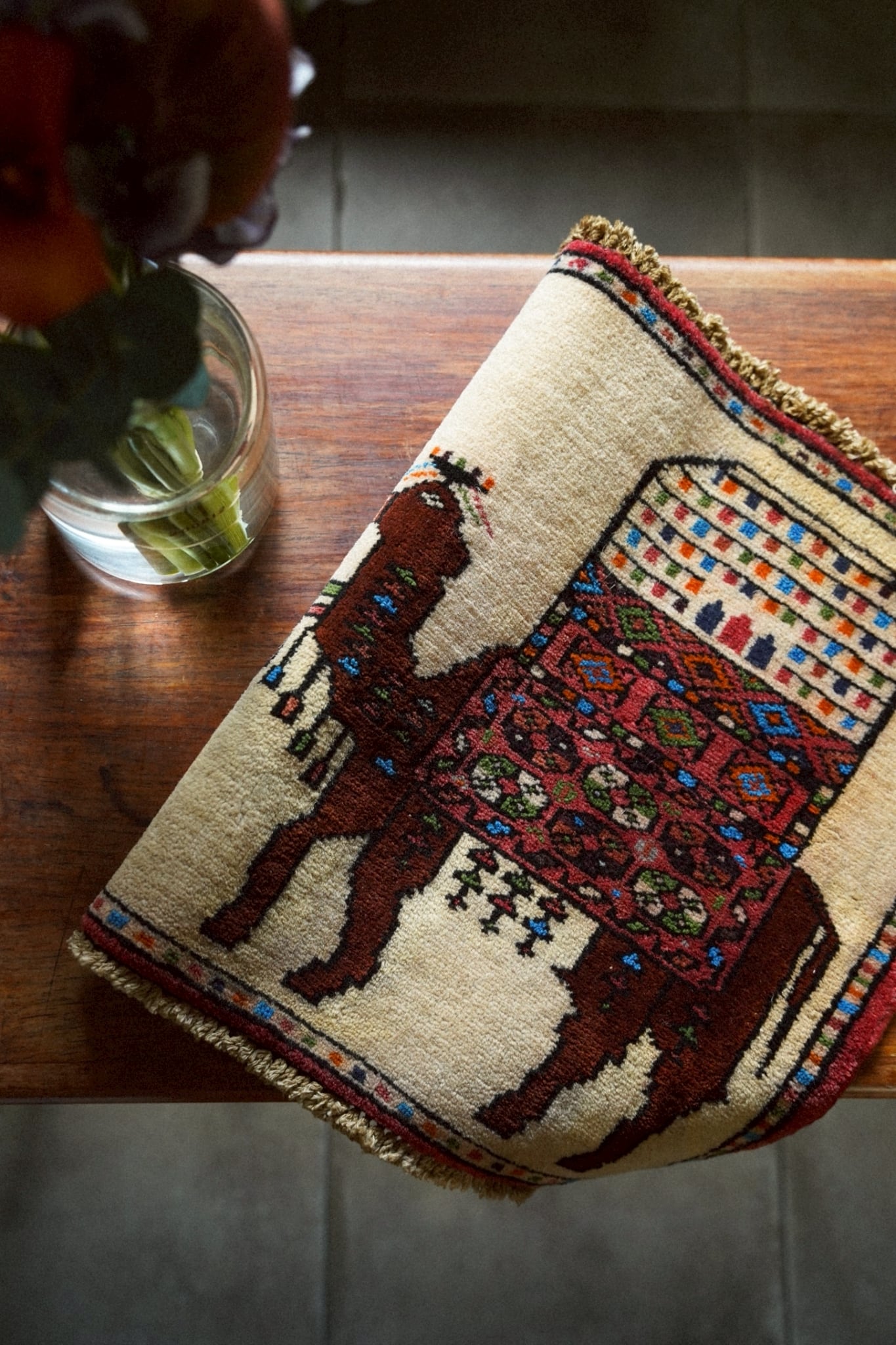砂漠を旅するキャラバンをモチーフにしたアフガニスタン産のラグ。