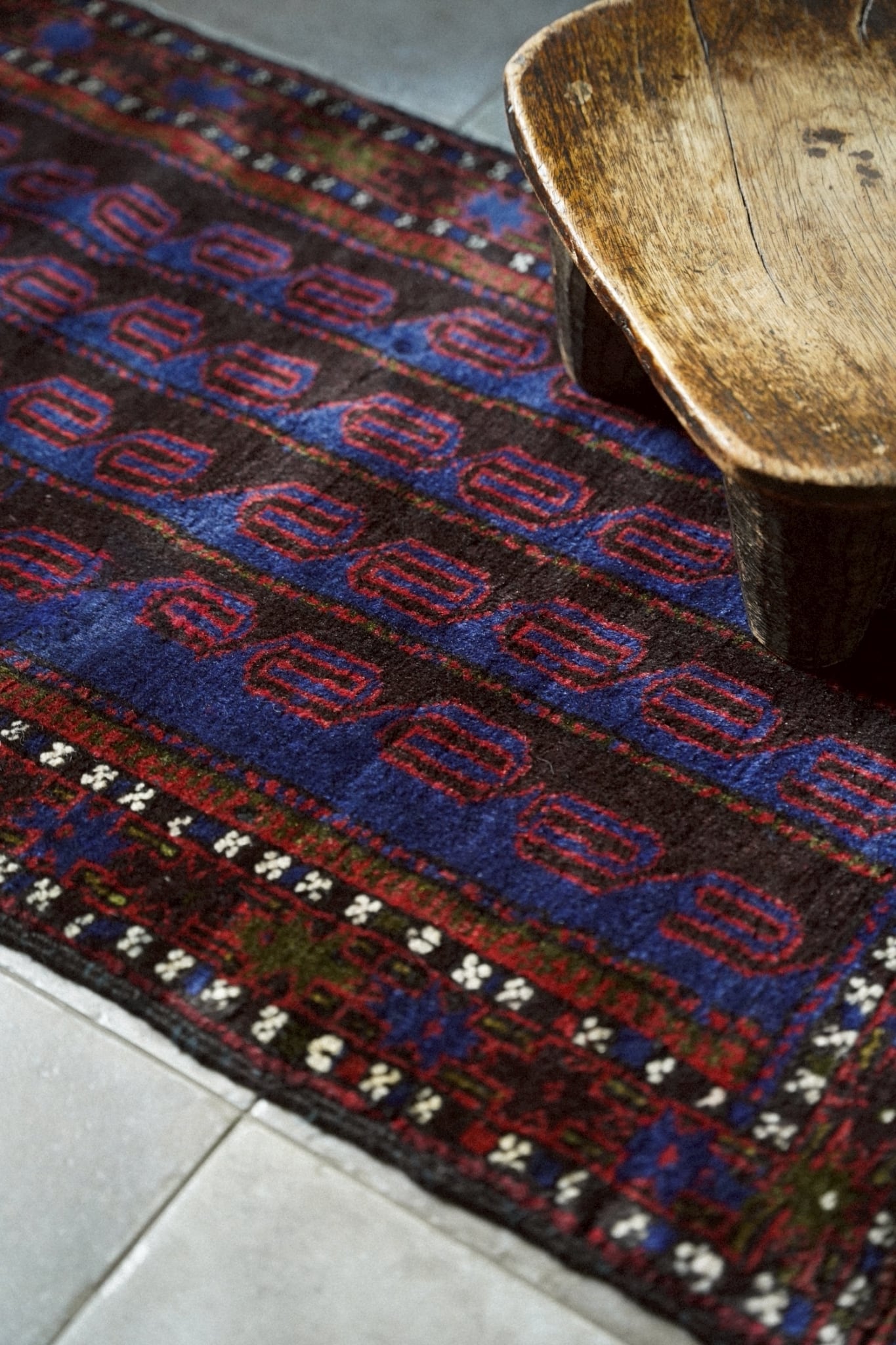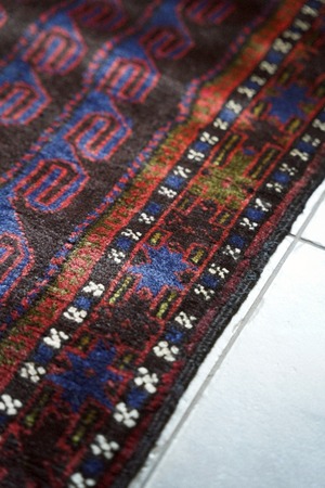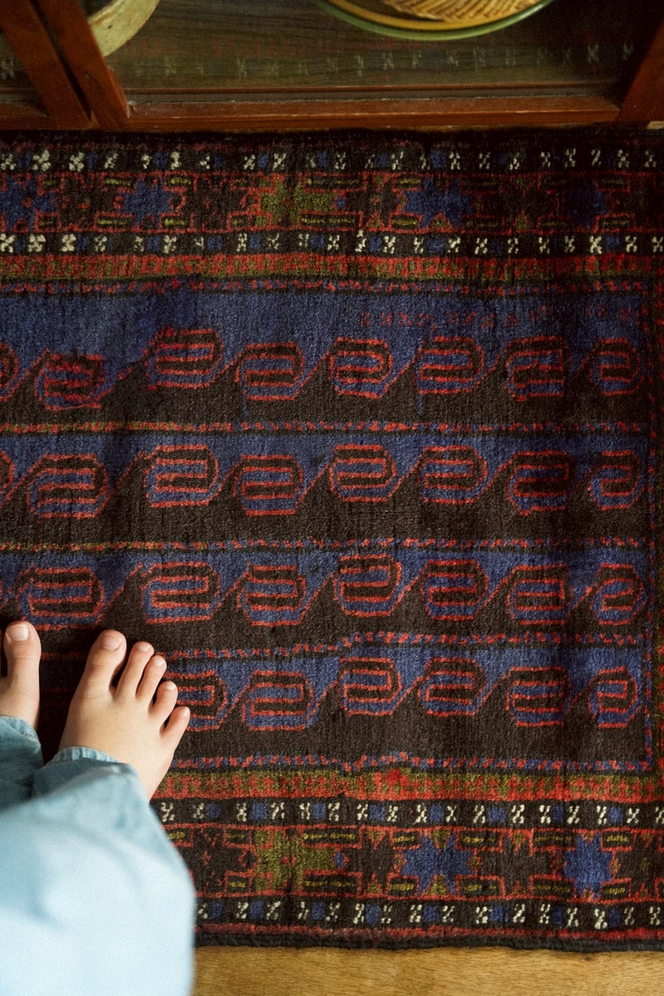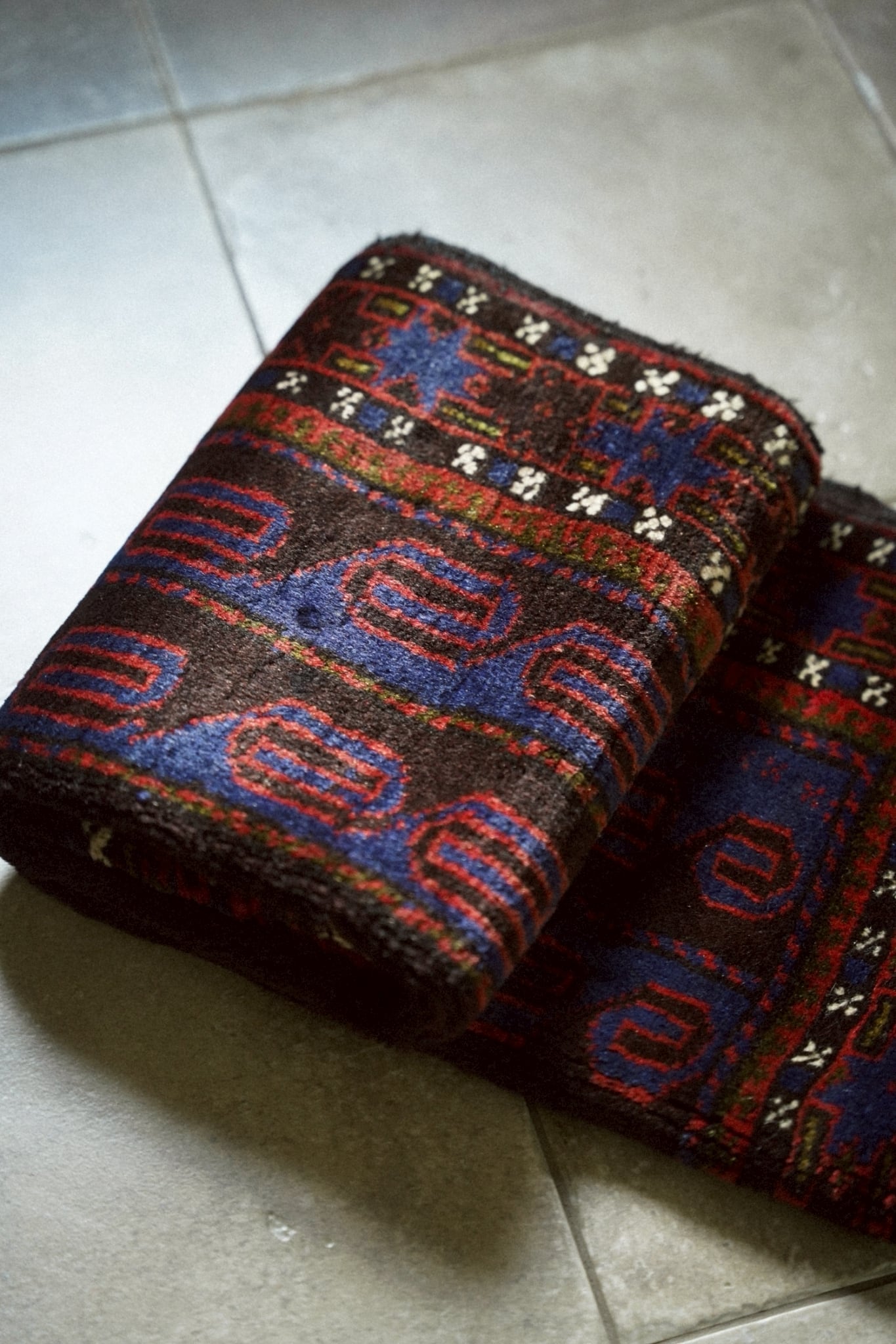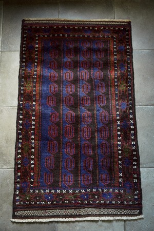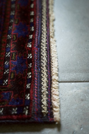 バルーチ族によって織られたバーリシトと呼ばれる家財や食材を入れたり、屋内ではクッションとして使用される袋状のものをラグに仕立ててもらいました。