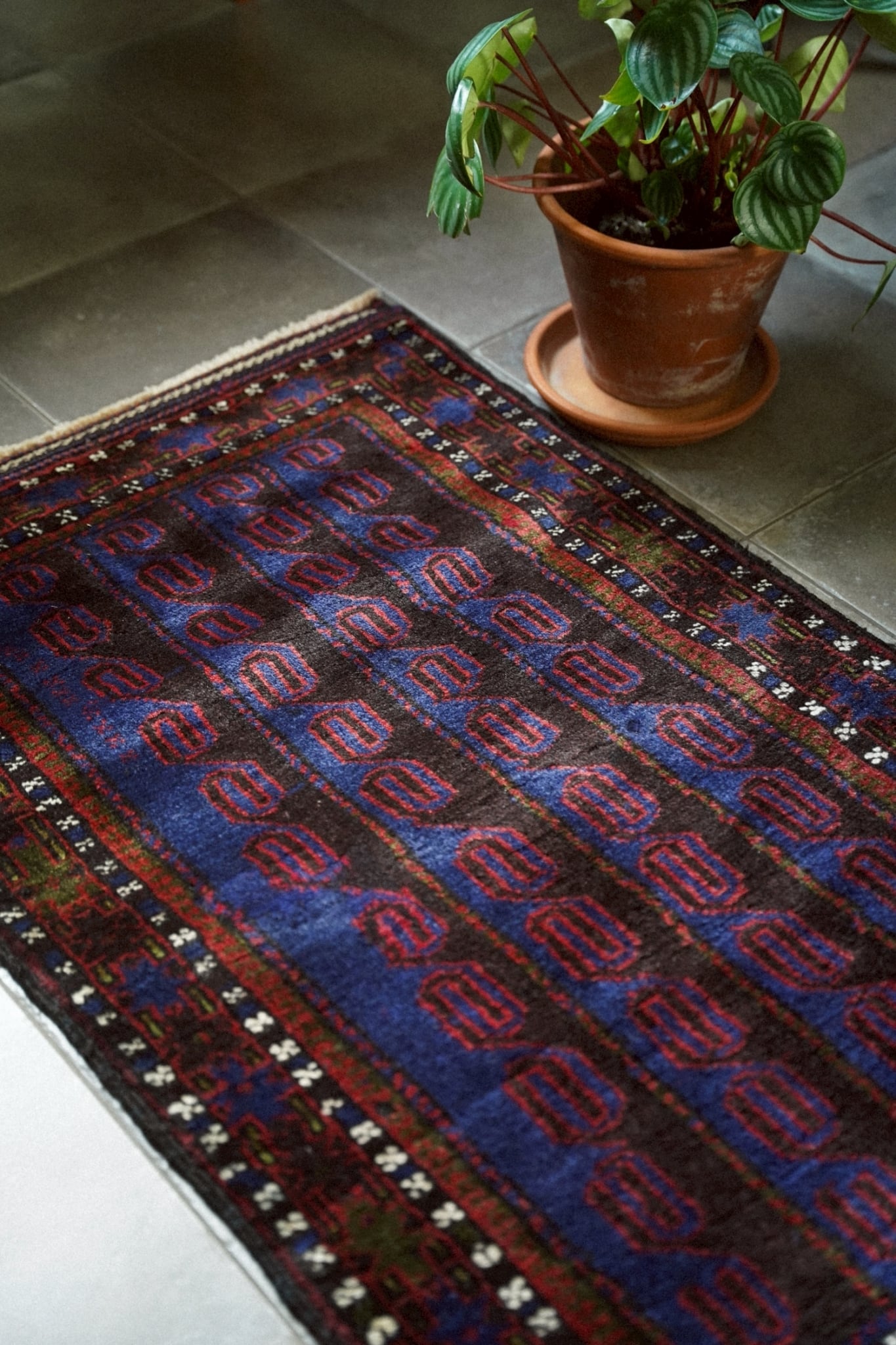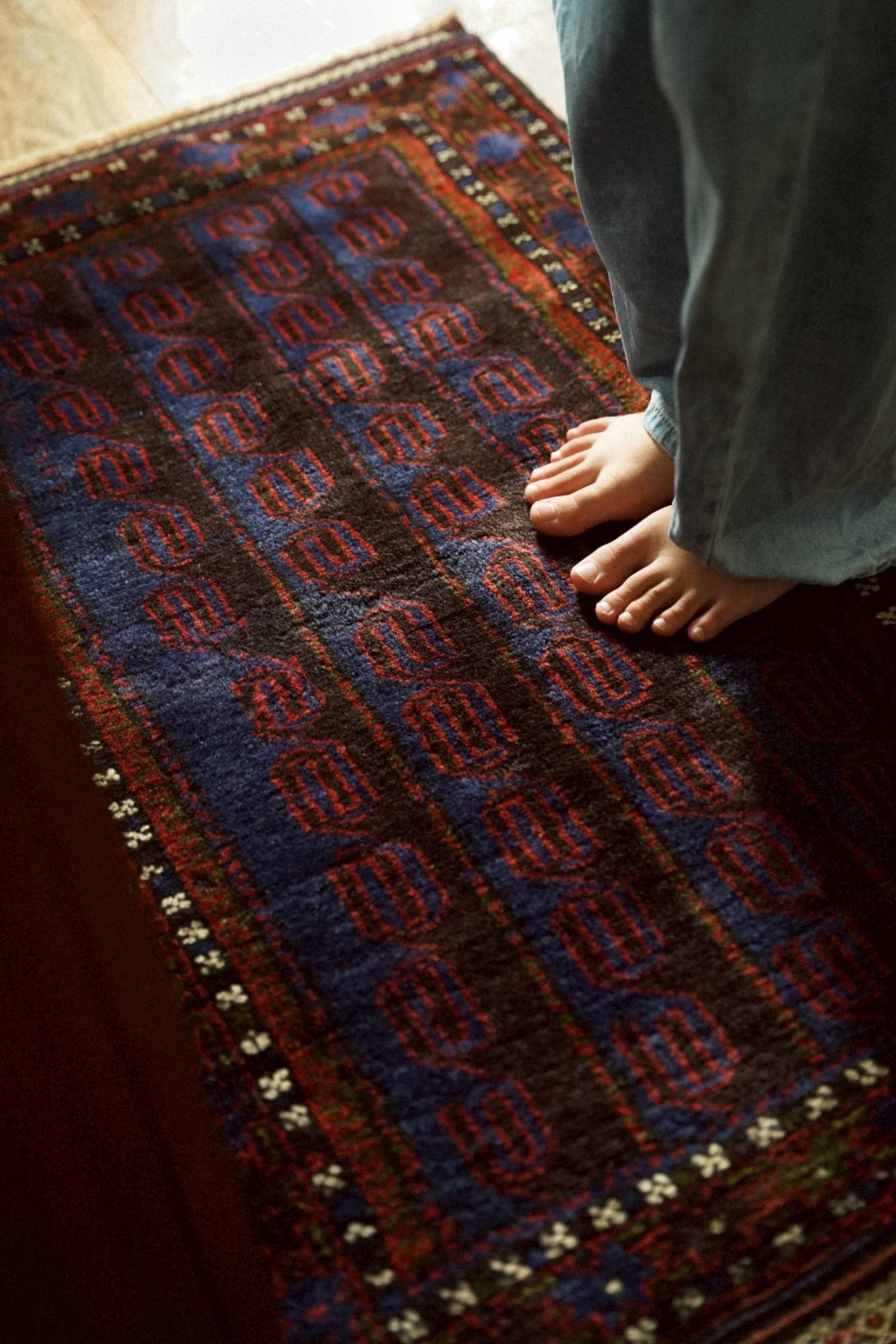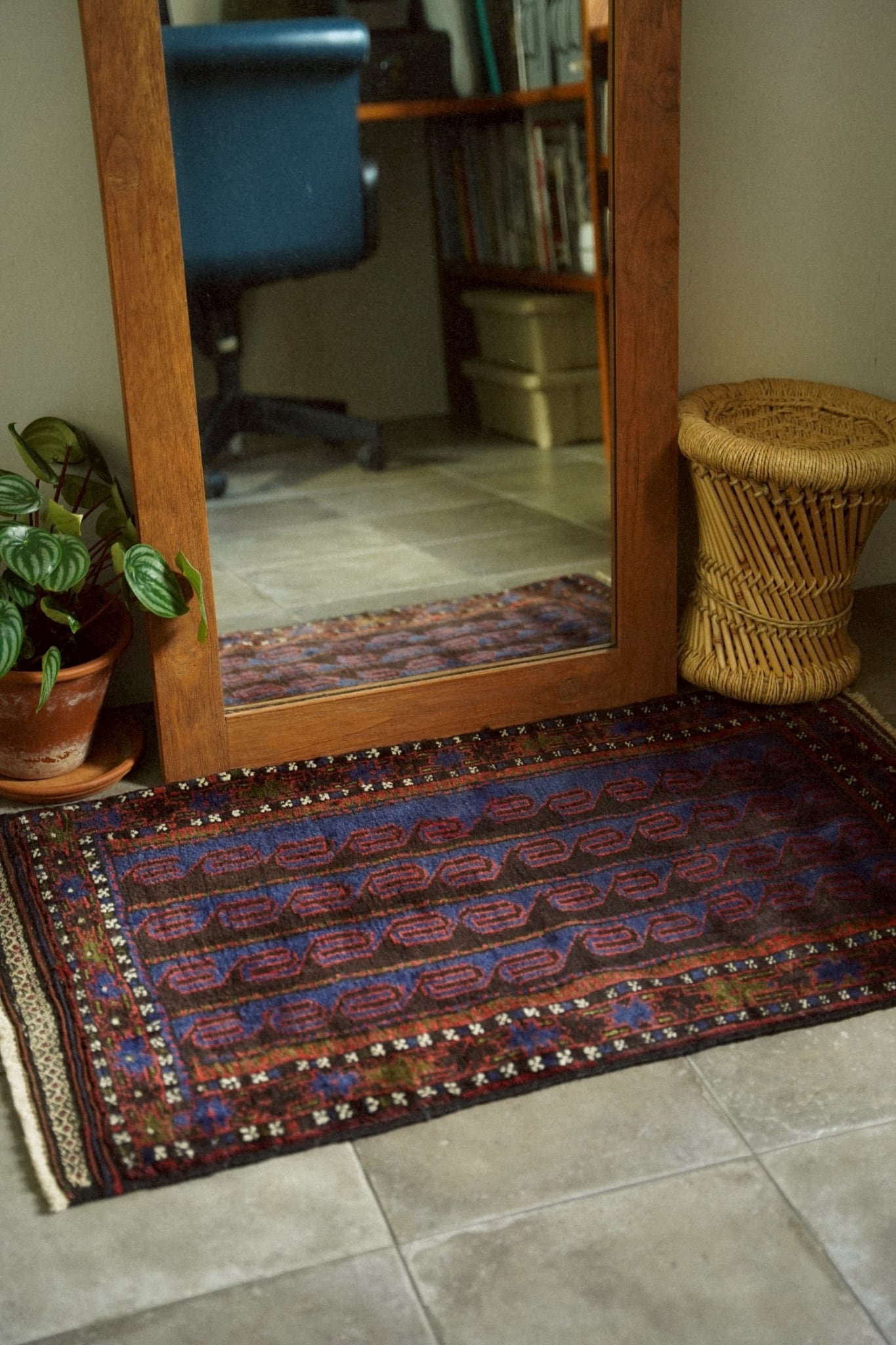 バルーチ族によって織られたバーリシトと呼ばれる家財や食材を入れたり、屋内ではクッションとして使用される袋状のものをラグに仕立ててもらいました。