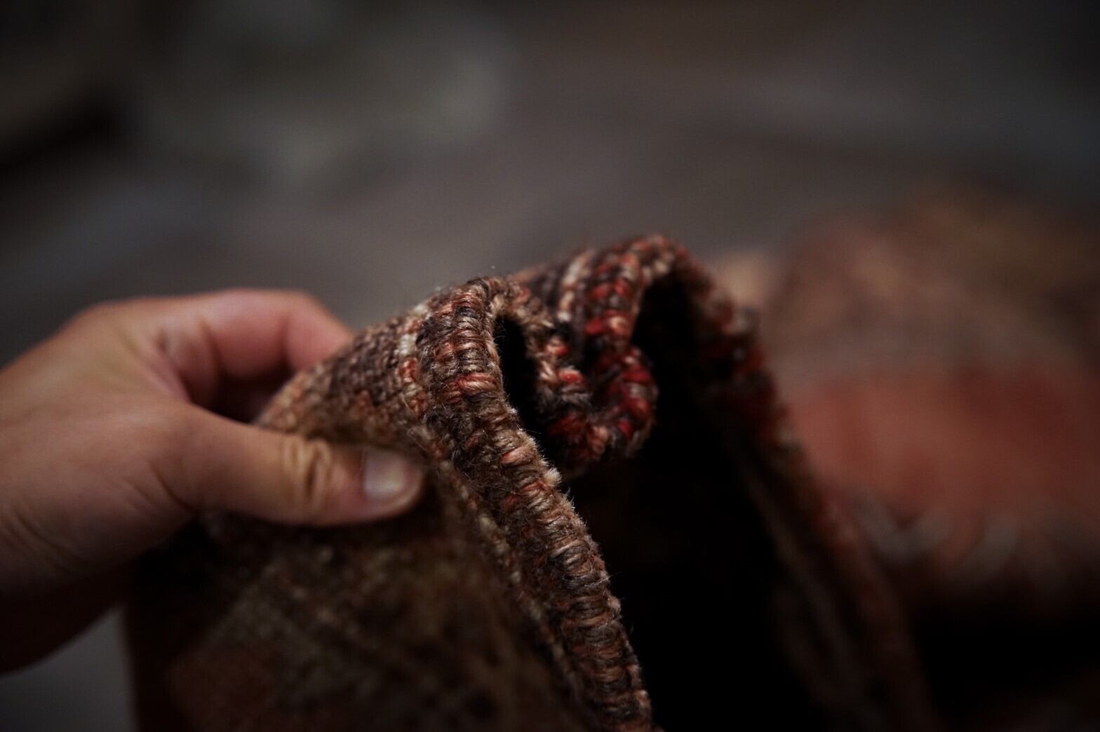 玄関やベッドサイド、キャンプ、キッチンラグにと使い勝手がいいサイズ感です。こちらは当店にてクリーニング済みです。(色落ちがほぼないでので自宅で洗うことが可能です。洗い方はお教えします。)
