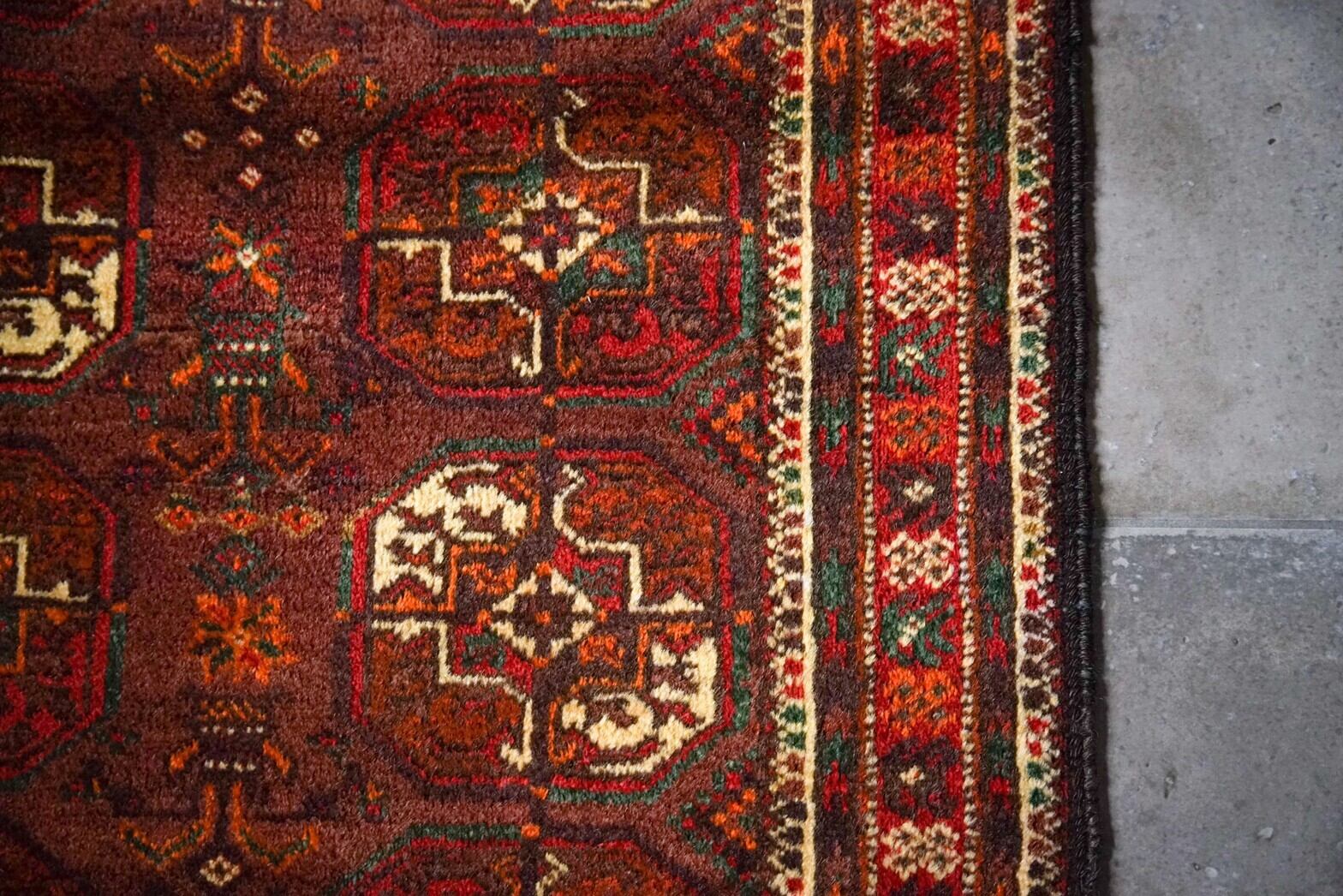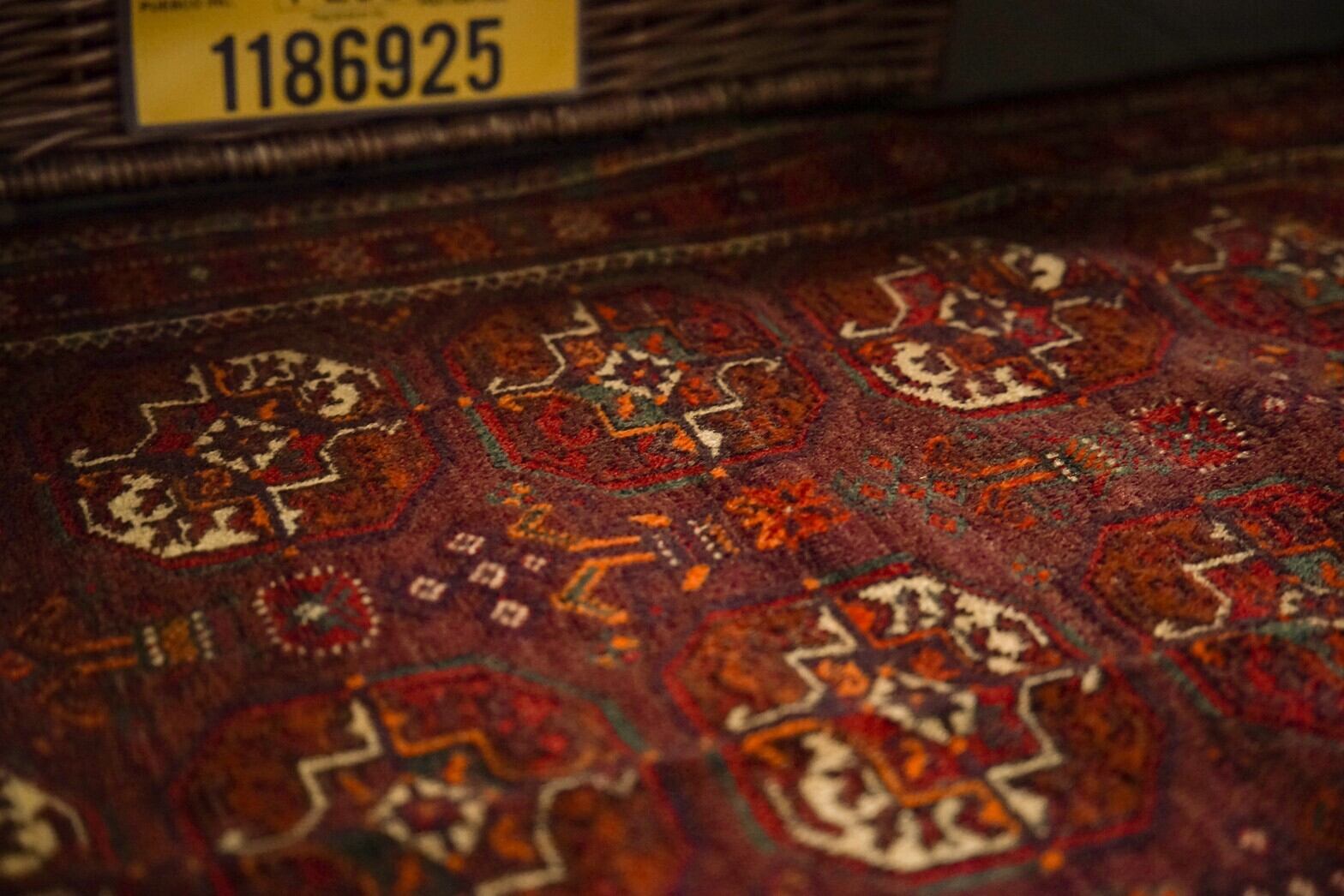 肌触りも色合いも柔らかいトルクメンラグ。ブラウン〜オレンジをベースにグリーンが効いているのがポイント。よくみて見ると、たくさんの色が使われていて、光に当たるとキラキラと輝いて見えます。手触りも柔らかくちょうど良い厚みでどんな場所に置いてもハマりそうですね♪ソファの前やリビング、書斎、ベッドサイドに置くのにちょうど良いサイズです。